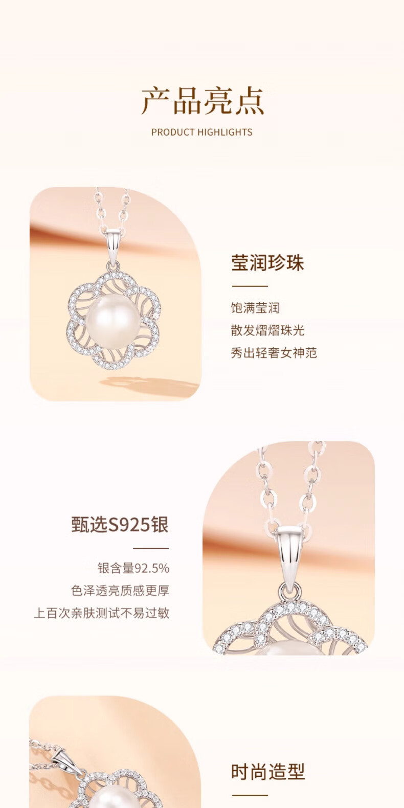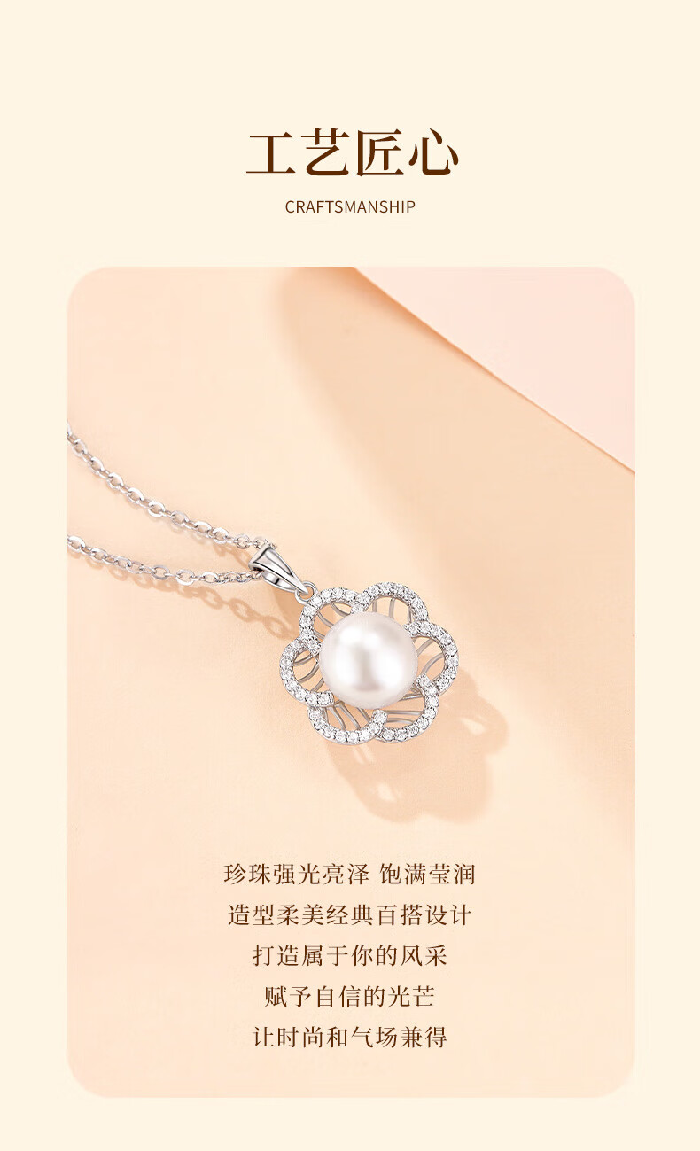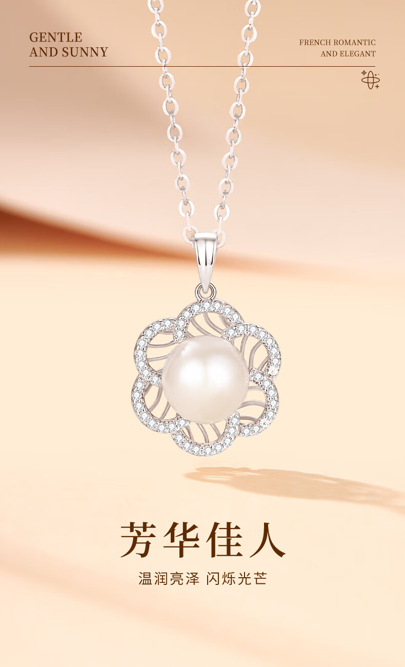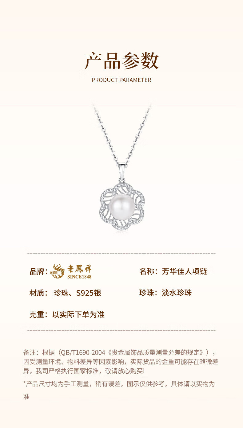 Lao Fengxiang 925 Silver Youth Beauty Pearl Necklace for Women 2025 New Style Pendant Temperament Birthday Gift for Wife 925 Silver - Youth Beauty Pearl Necklace Brand Gift Box