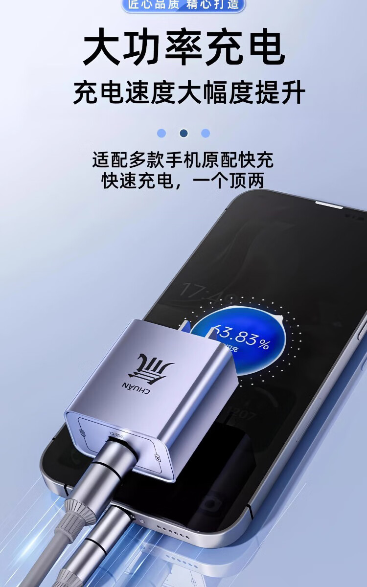 Lidun Tritium Flow Dual Port Charger Super Flash Charging Set Suitable for Huawei Apple Android Oppo Honor Vivo Mobile Phone Charging Head 120W Gallium Nitride Plug All-in-One Data Cable Set Tritium Flow Dual Port Flash Charging Head + Four-in-One Light Column Cable