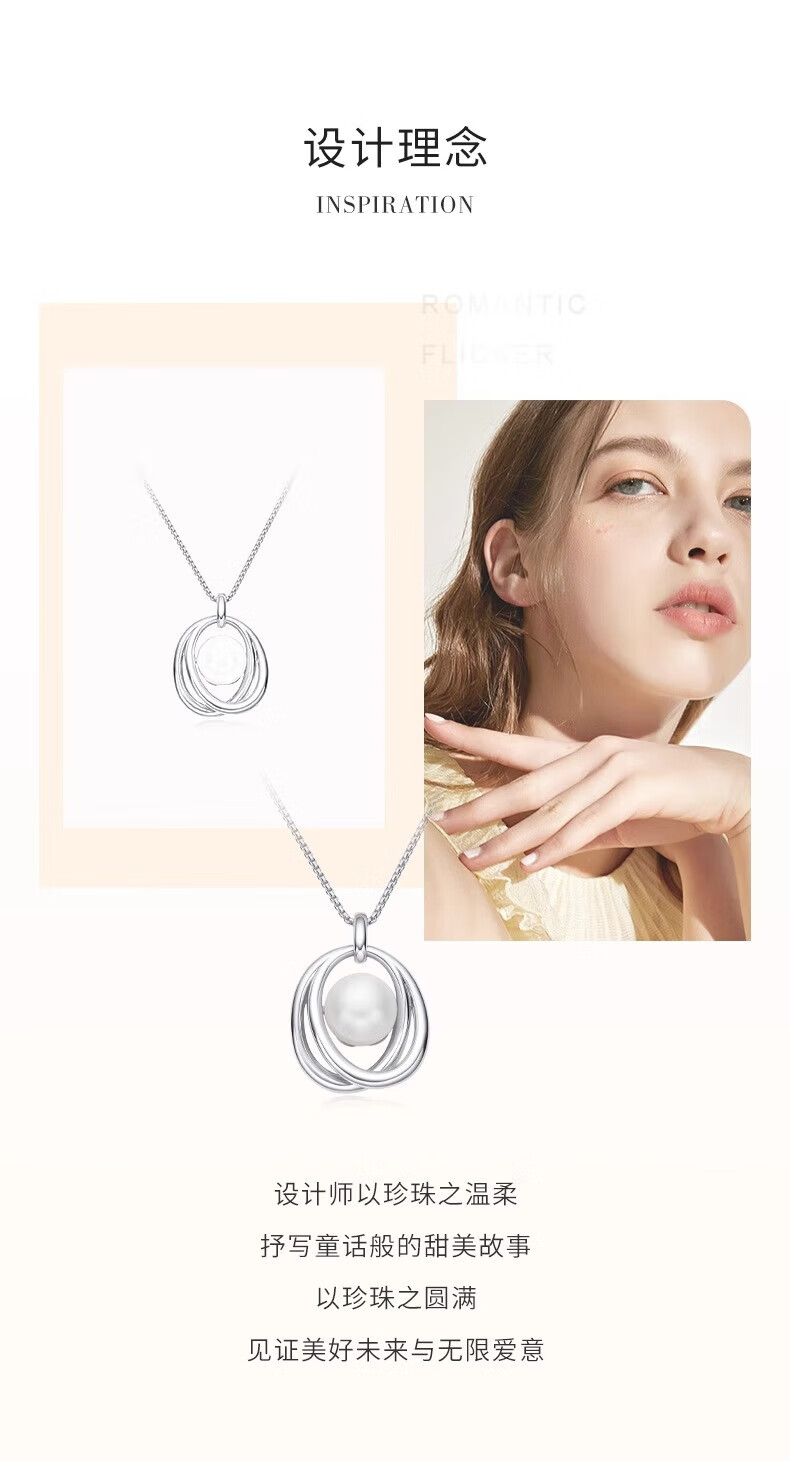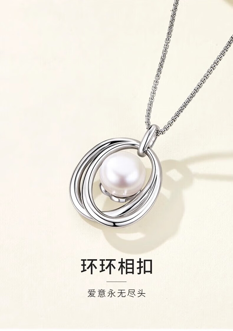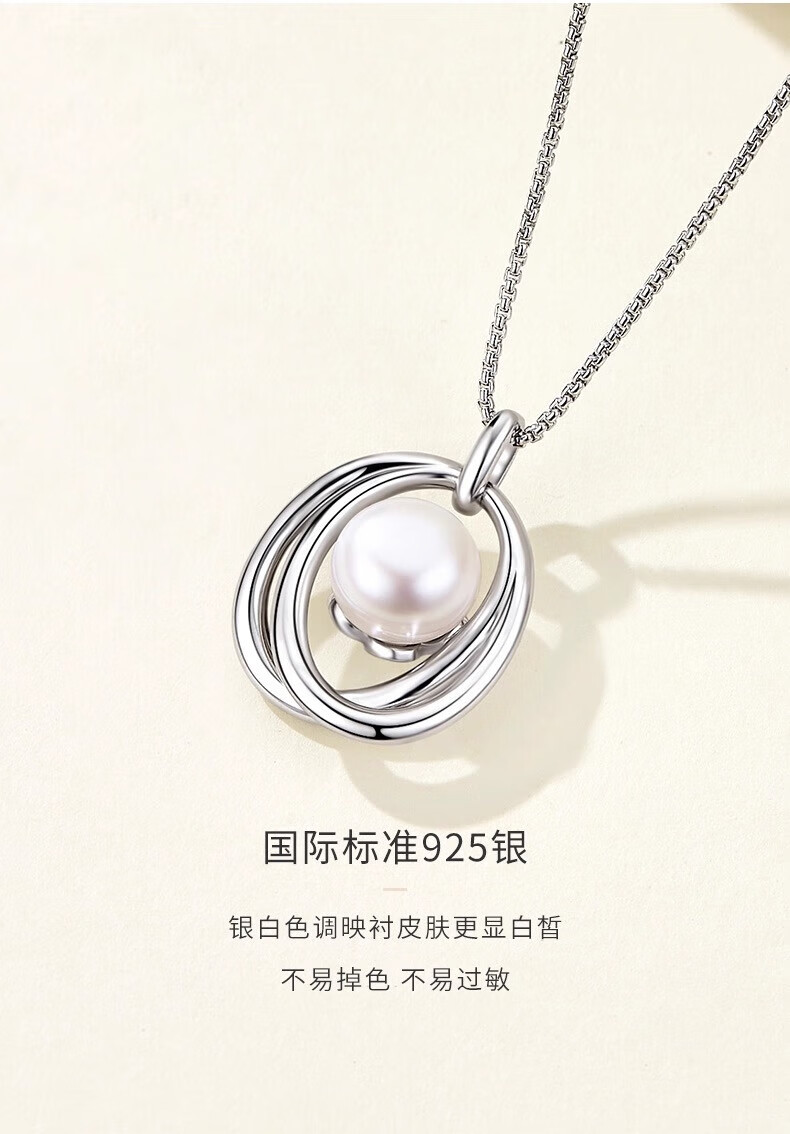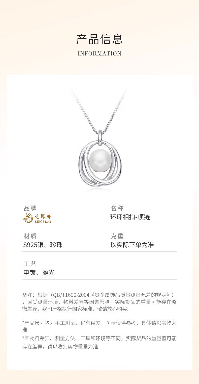 Lao Fengxiang Light Luxury S925 Sterling Silver Freshwater Pearl Necklace Women's 2025 New Birthday Gift for Girlfriend and Wife 925 Silver Interlocking Pearl Necklace Valentine's Day Gift Box