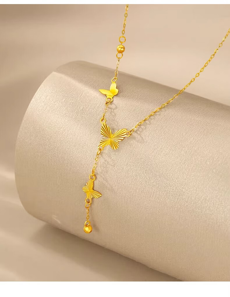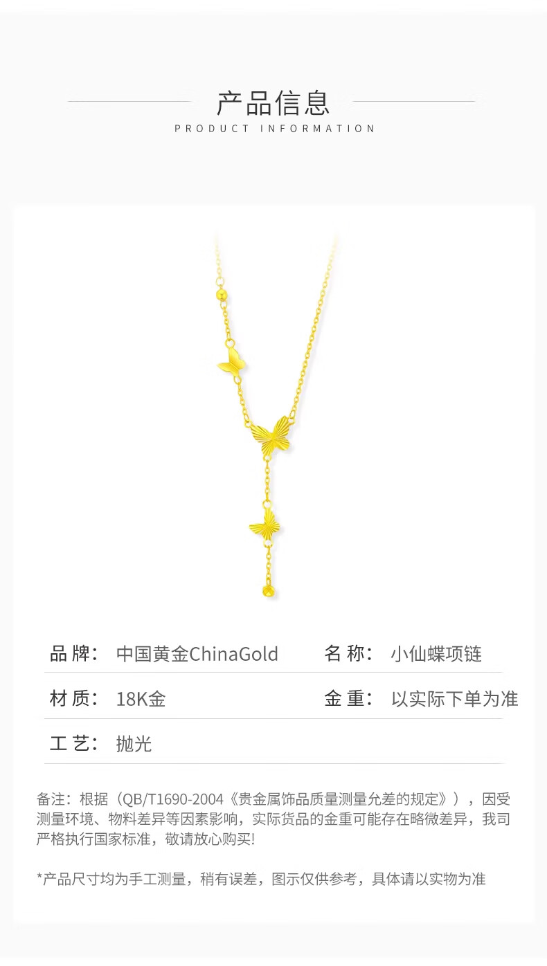 CHINA GOLD 18K gold necklace female fugitive princess butterfly tassel chain plain chain jewelry birthday gift for girlfriend and wife 18K gold fairy butterfly chain about 2g brand gift box