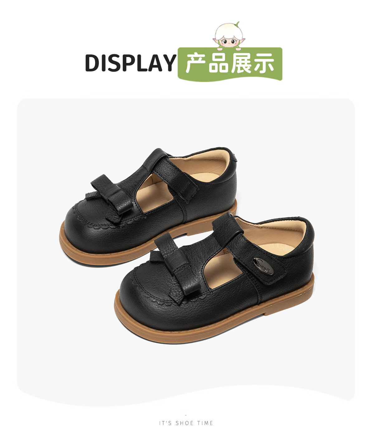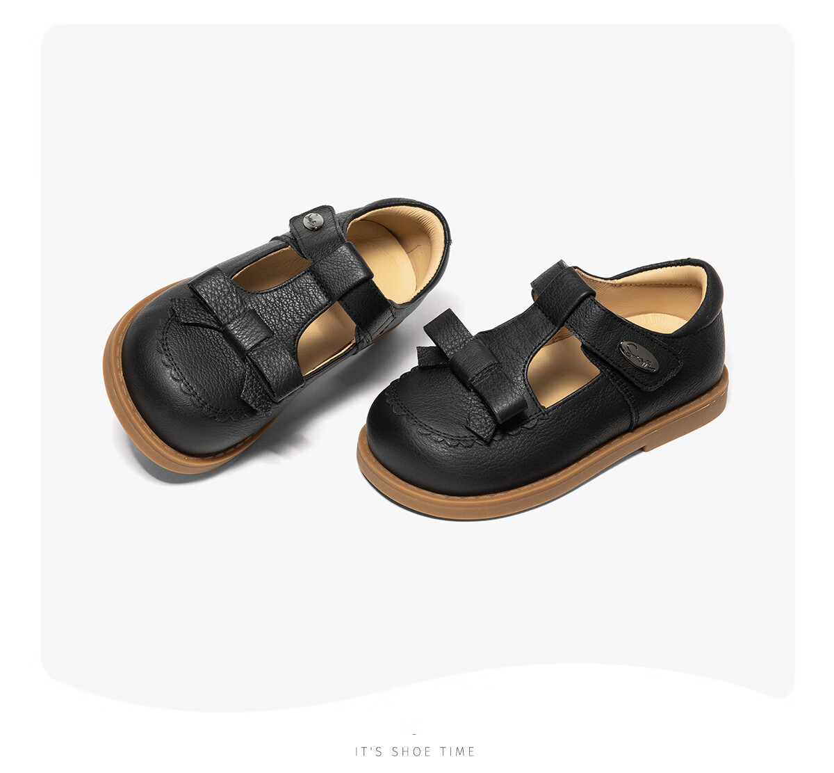 Snafy first-layer cowhide girls leather shoes genuine black spring and autumn campus children little girl baby shoes truffle black 25 inner length 16/suitable for feet 15.2cm long