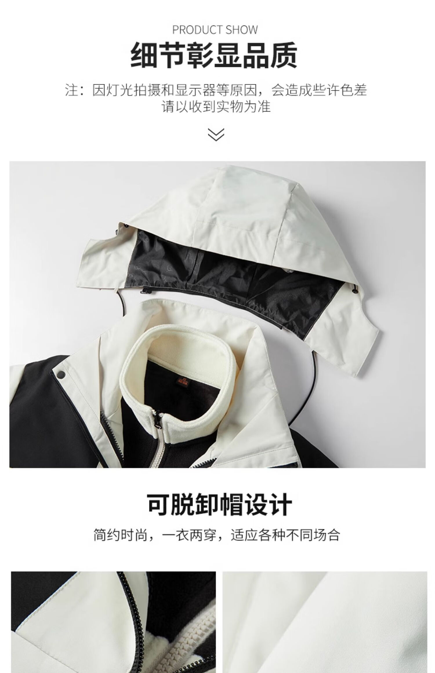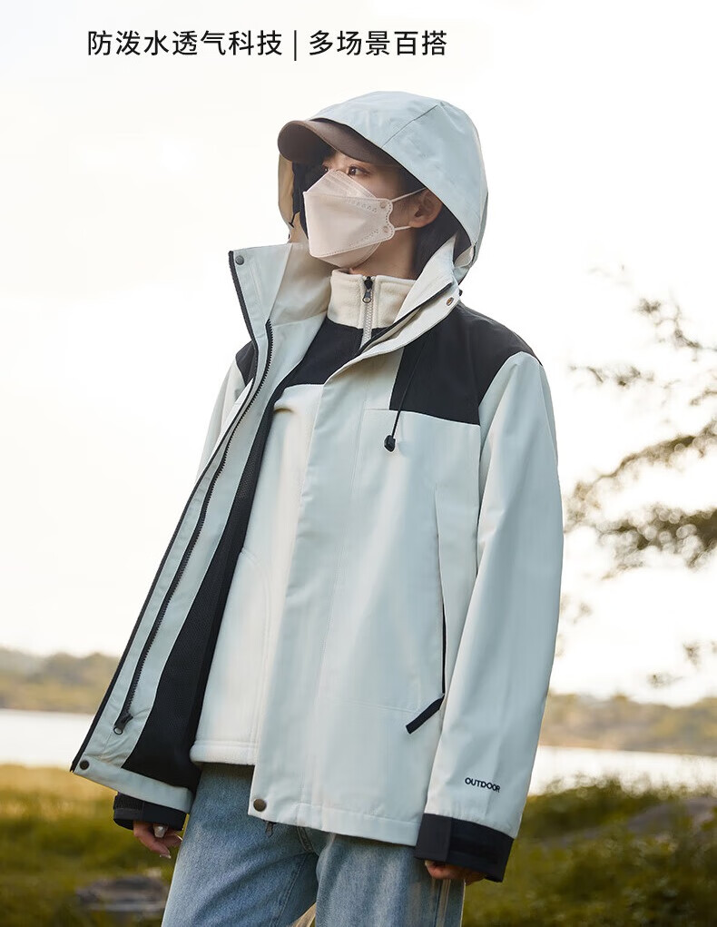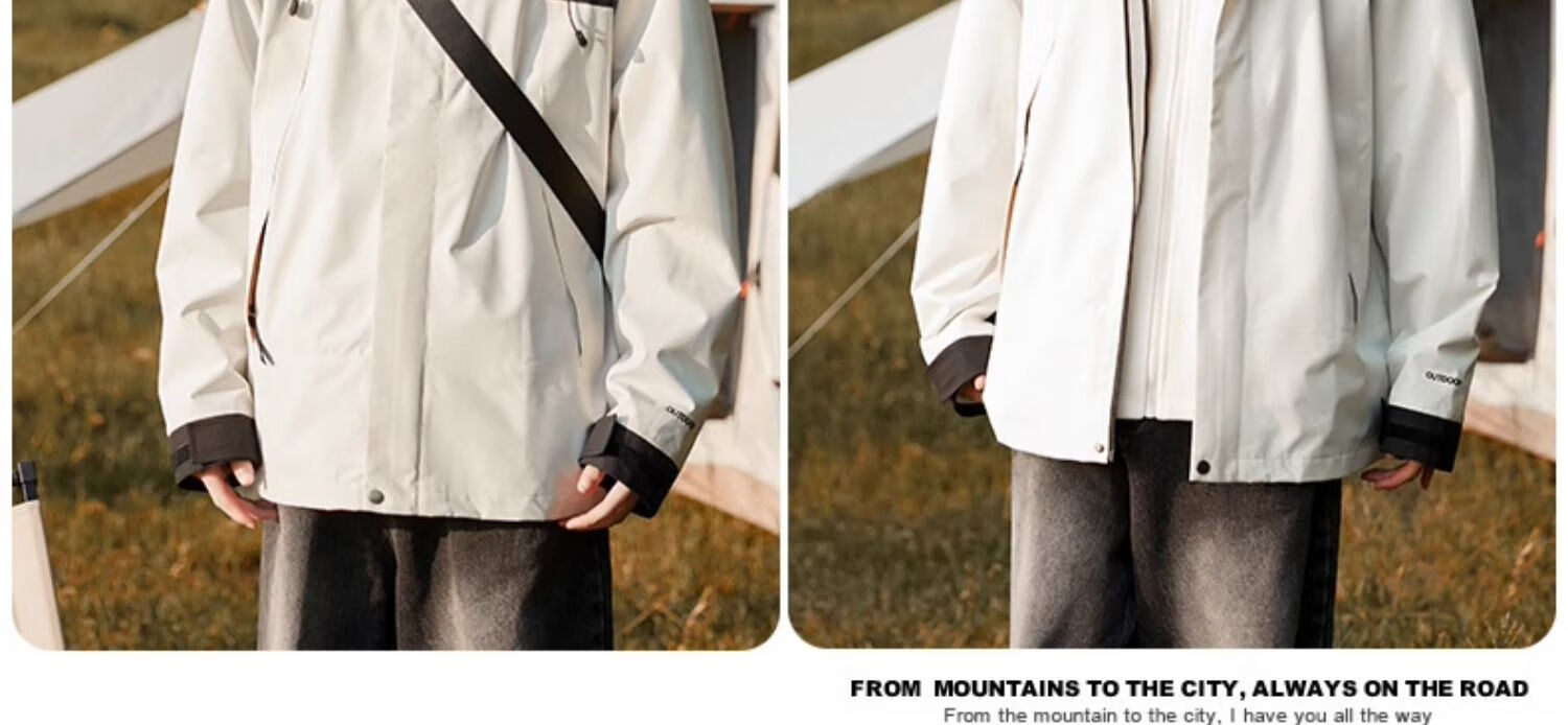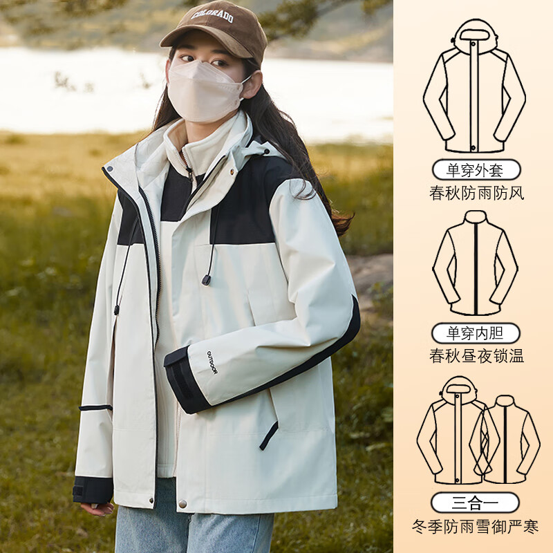 Cotton Snow Jacket Three-in-One Jacket with Removable Liner Windproof and Waterproof Men's and Women's Autumn and Winter Hiking and Mountaineering Clothing Outdoor Ivory White Same Style for Men and Women Waterproof Jacket + Heat Storage Liner L 172CM-178CM