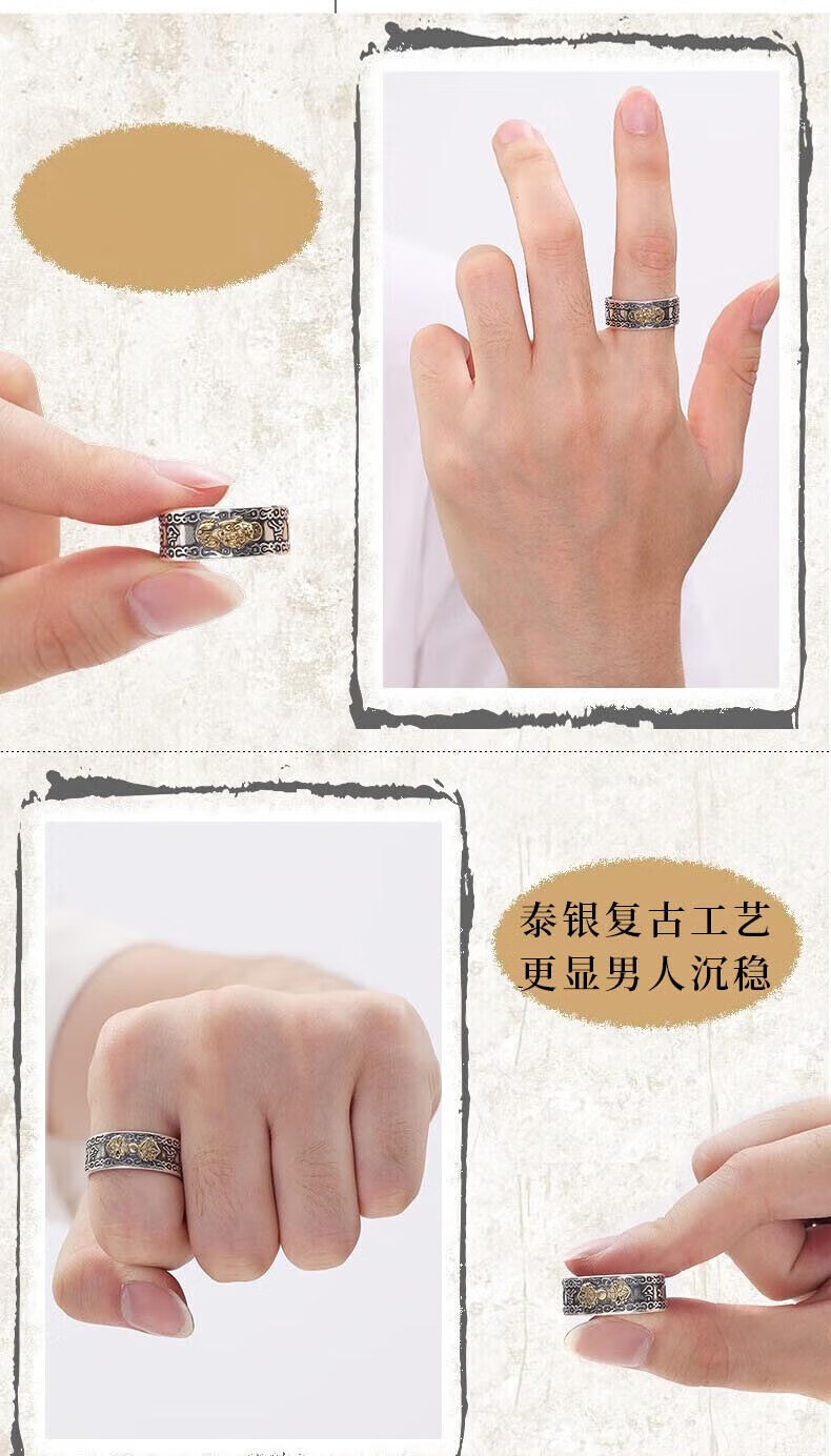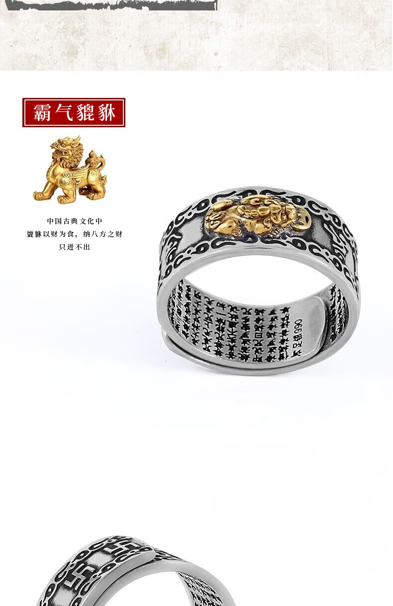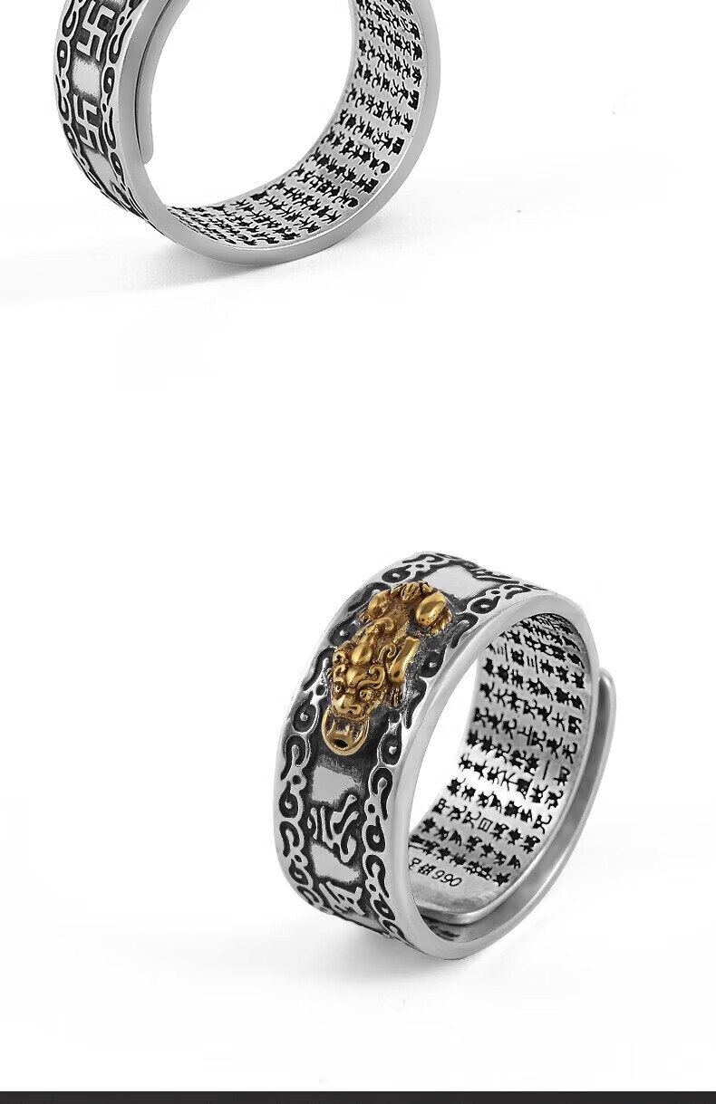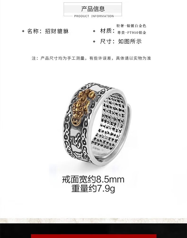 MZMZ platinum ring pt950 platinum single segment plain ring six-character mantra Valentine's Day birthday gift for boyfriend when/next day delivery-Light Luxury Lucky Pixiu Ring
