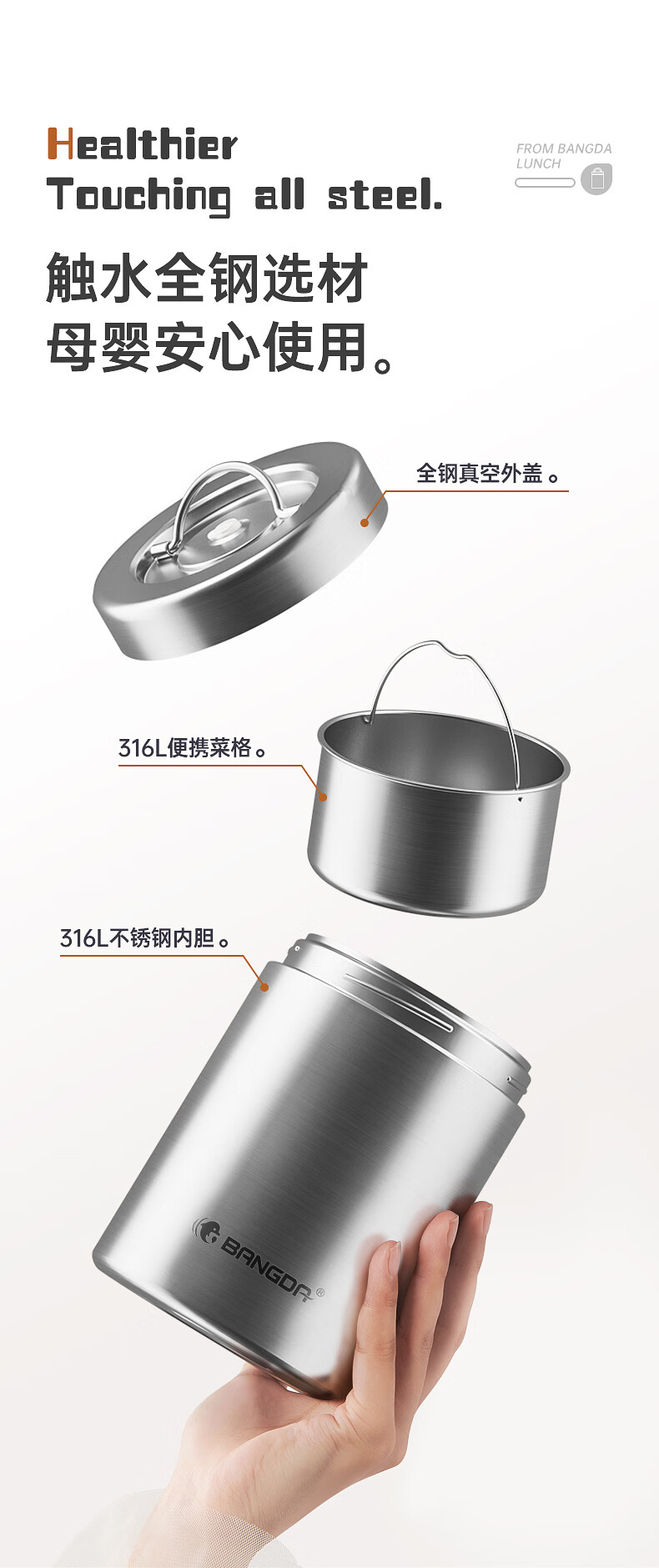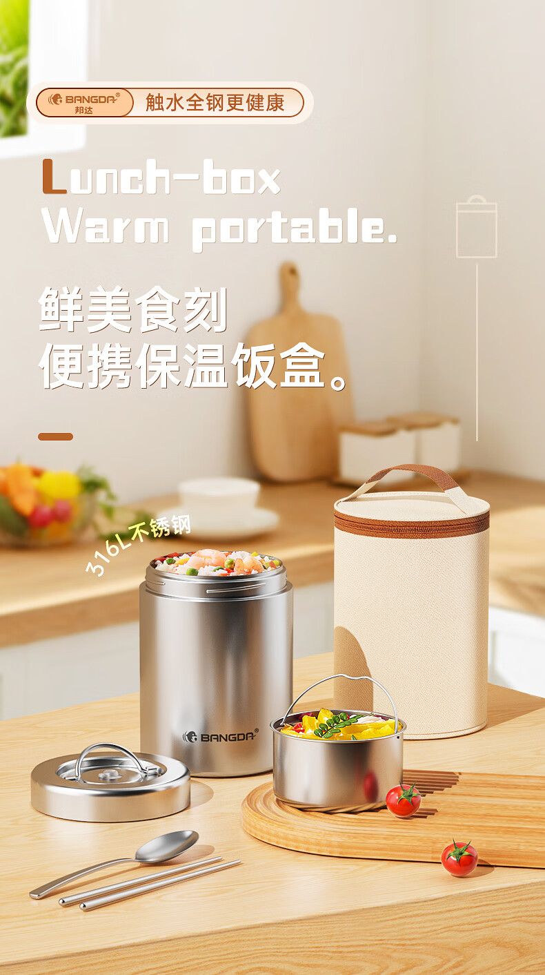 QCSK German insulated lunch box stew beaker 316L vacuum stainless steel stew pot smoldering pot portable rice student cooking porridge 2025 new (contact customer service for group purchase)