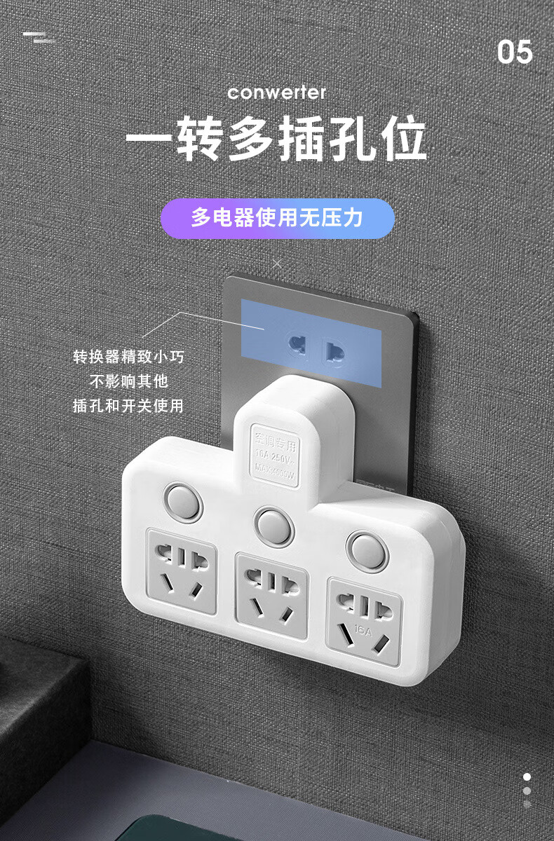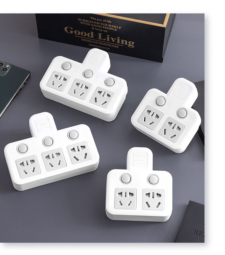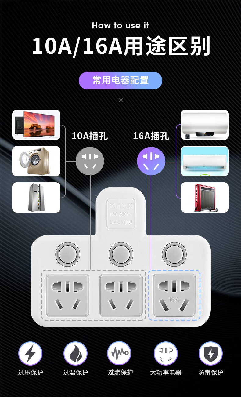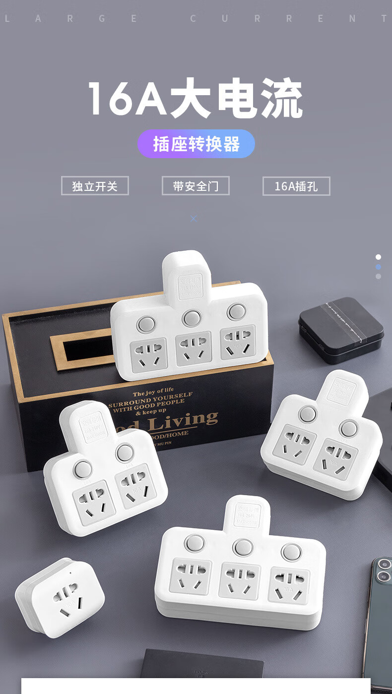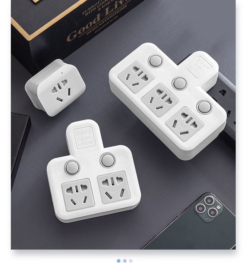 Bull (BULL) same style glyph plug one-turn multi-socket 16A air conditioning expander plug strip 10A to 16A conversion plug 16A plug three switches for home use