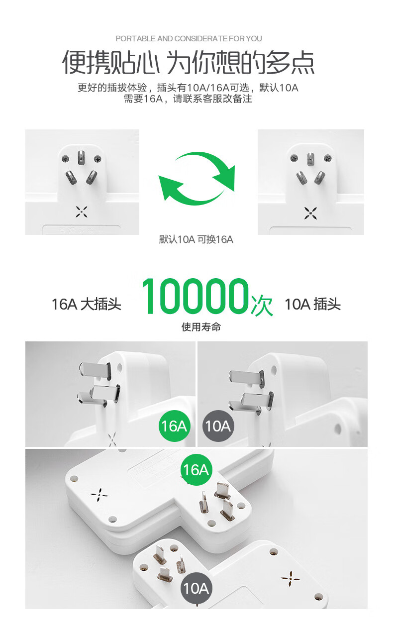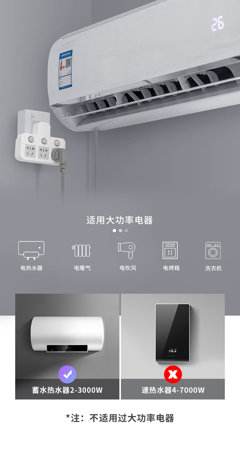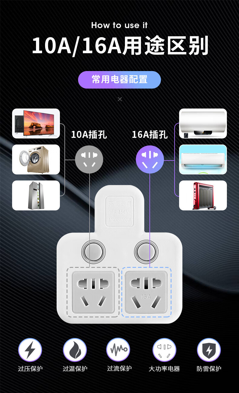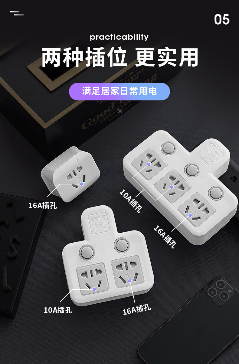 Bull (BULL) same style glyph plug one-turn multi-socket 16A air conditioning expander plug strip 10A to 16A conversion plug 16A plug three switches for home use