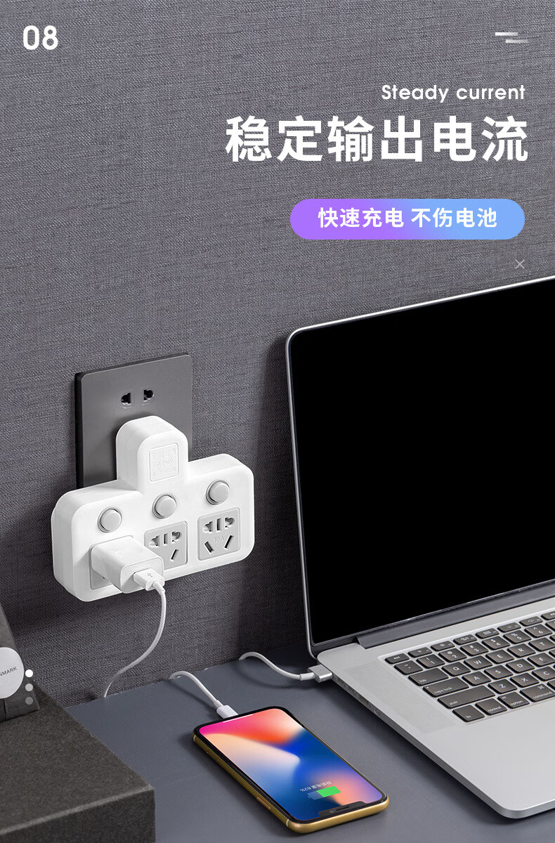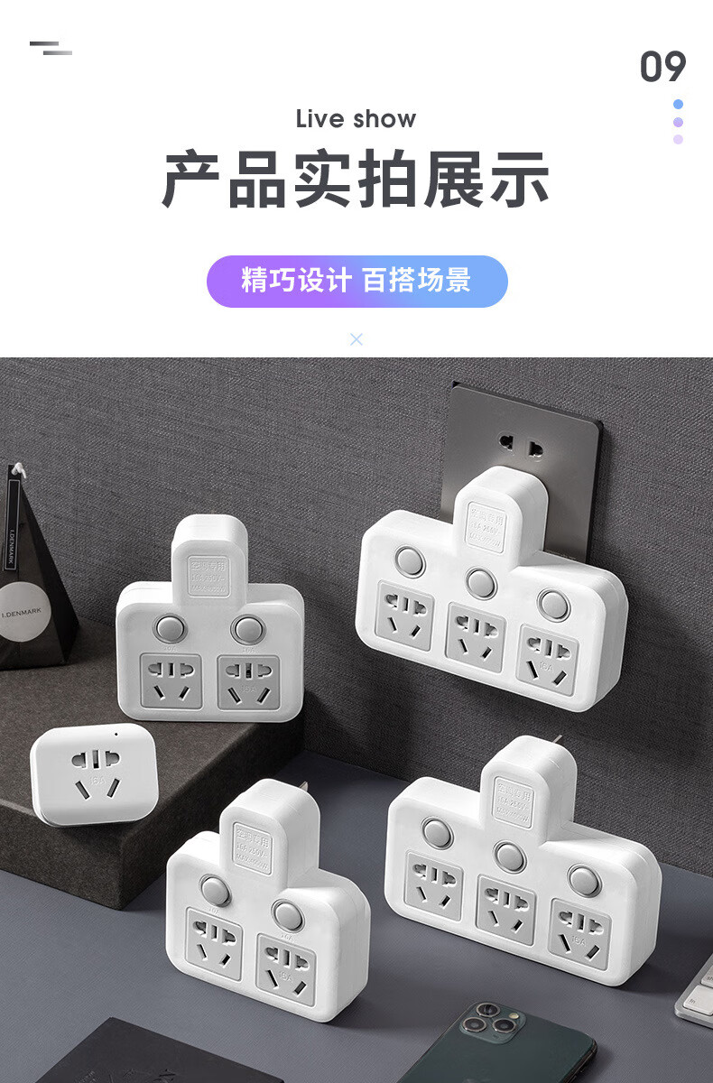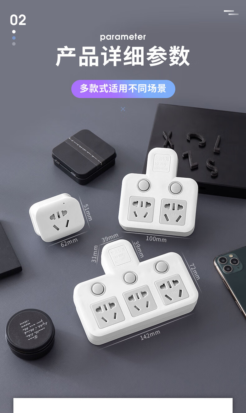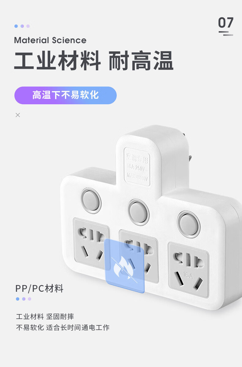 Bull (BULL) same style glyph plug one-turn multi-socket 16A air conditioning expander plug strip 10A to 16A conversion plug 16A plug three switches for home use