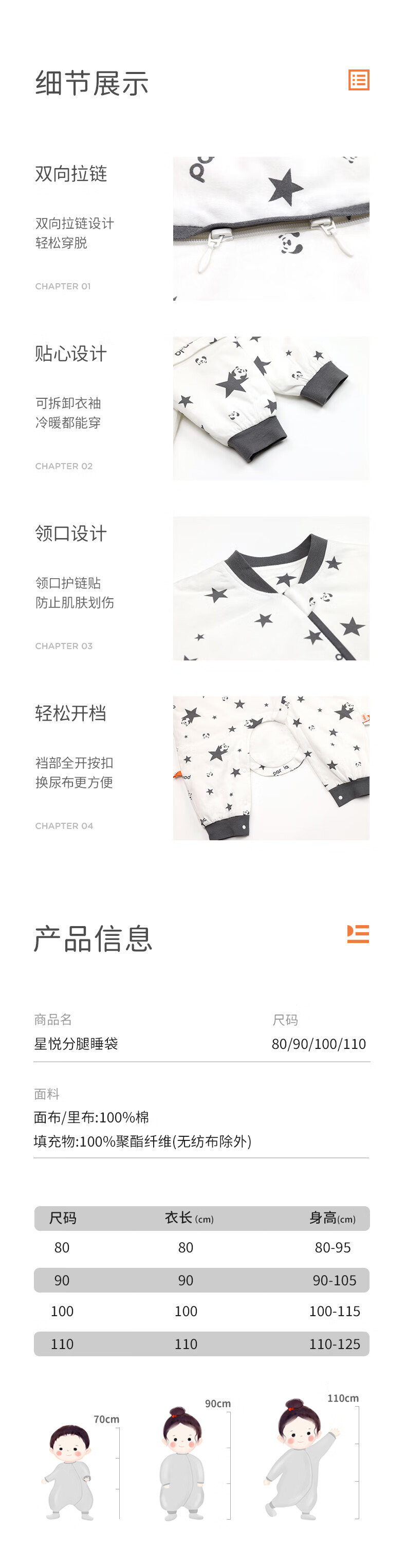 Liangliang Fans Exclusive Autumn and Winter Infant and Toddler Split Leg Sleeping Bag Thick Cotton Outerwear Same Style for Men and Women Smiling Bear Powder-200G-80 Size Recommended Height 80-90CM