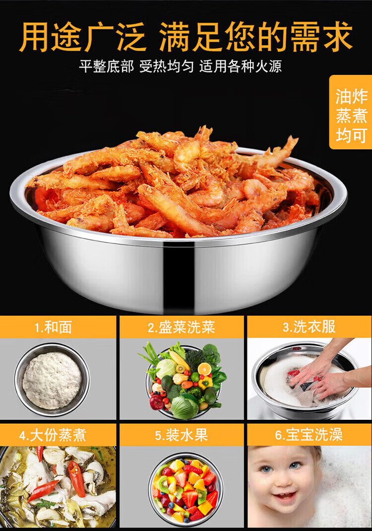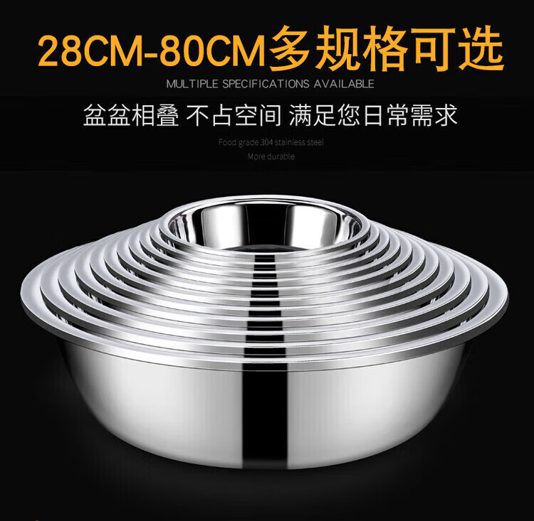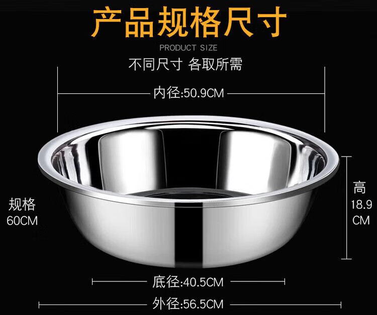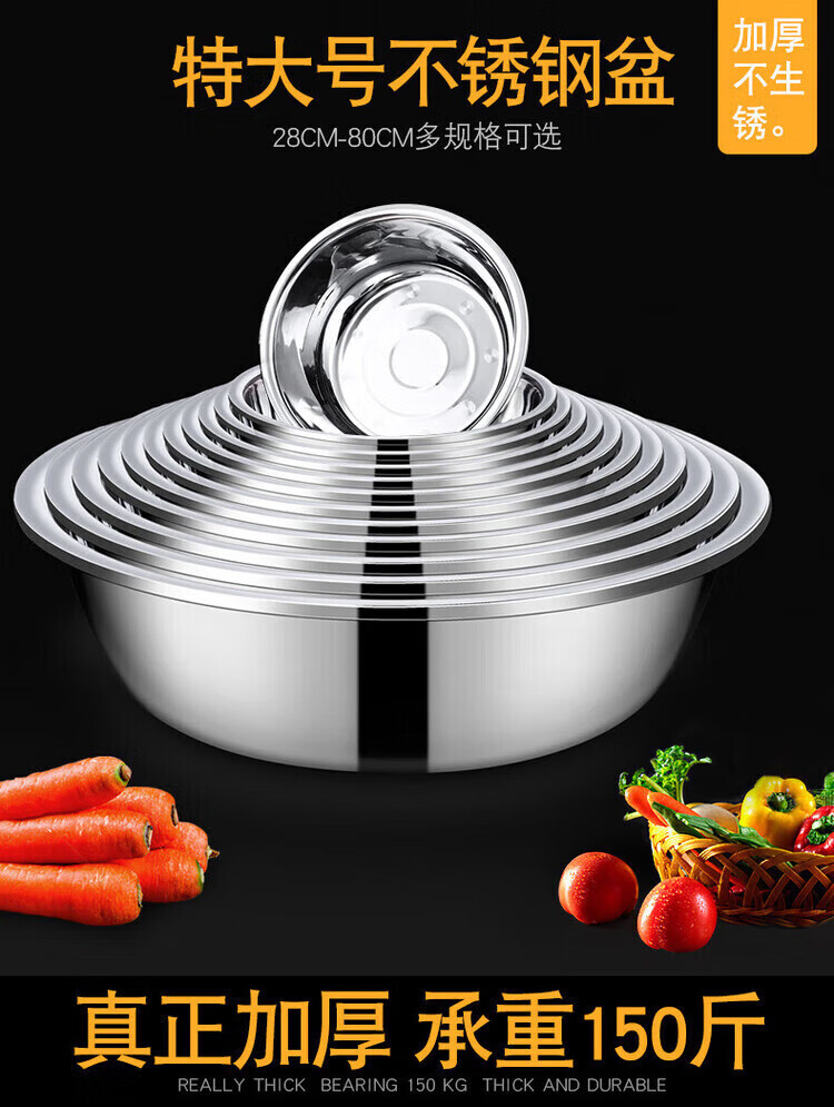 Grain harvesting stainless steel basin large extra large basin kitchen large basin household wash basin commercial iron basin stainless steel basin thickened 40cm stainless steel basin