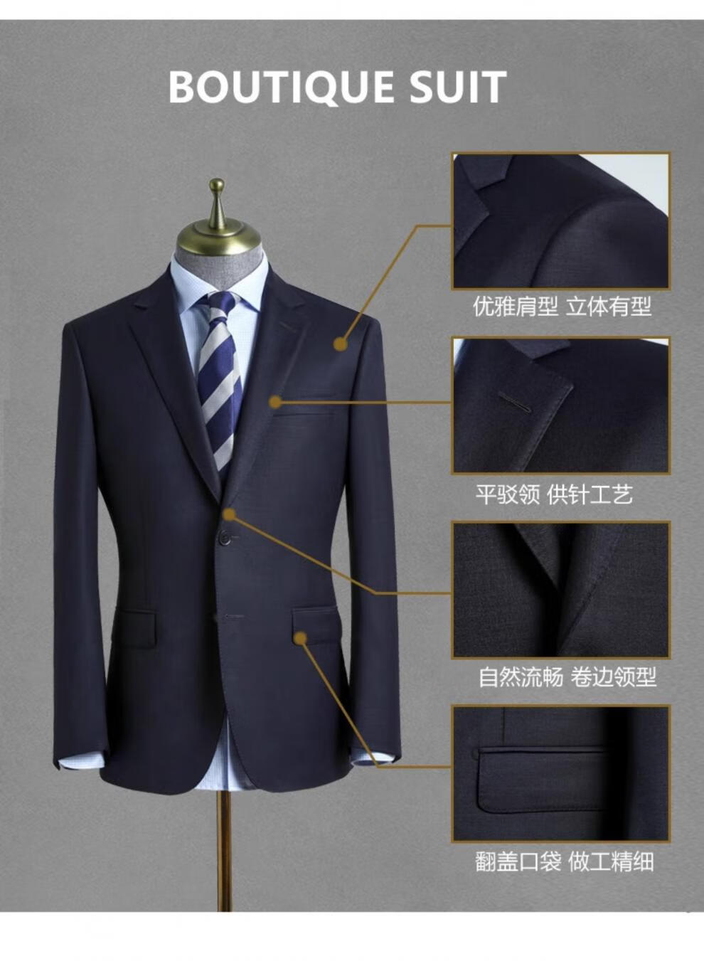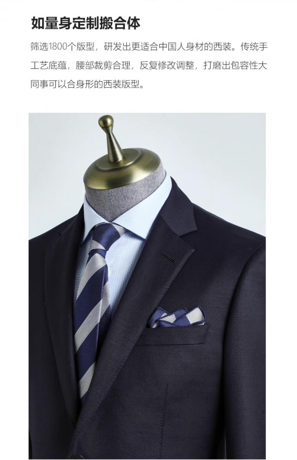 ROMON Haute Couture Half Linen Lined Wool Suit Suit Men's Navy Blue Business Casual Suit Double Slit Formal Navy/Half Linen Lining/Top+Trousers 44 Please note the size of the top/trousers