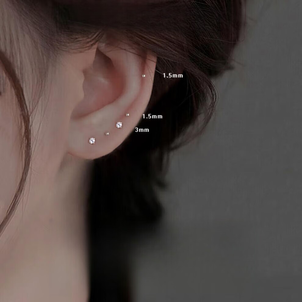 YKINCASL Old Phoenix 9999 sterling silver earrings for women, small round beads for pierced ears, earrings that do not need to be removed when sleeping, full body 999 pure silver earrings, Lao Fengxiang's same style, a pair of 1.5mm round bead earrings