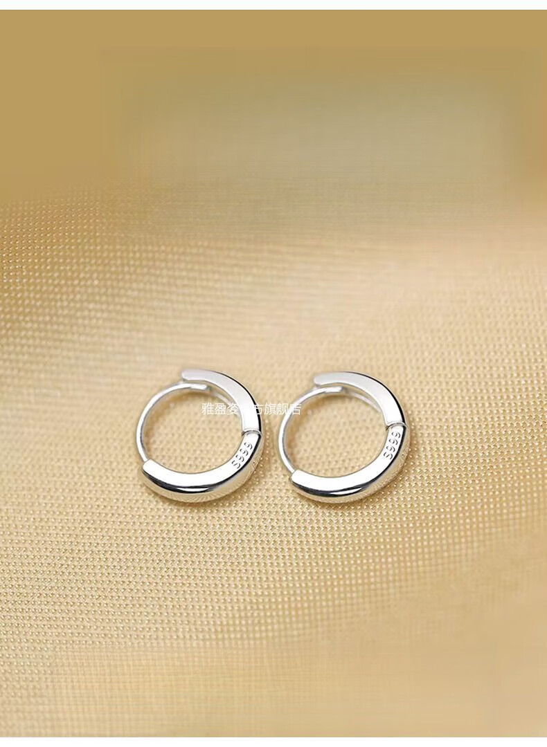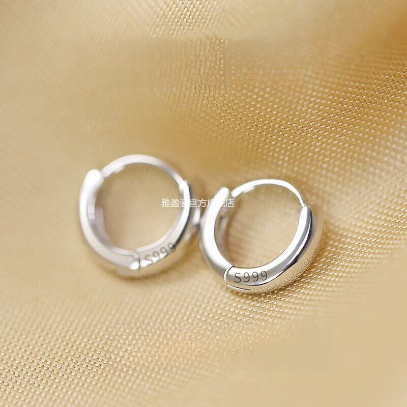 YKINCASL Old Phoenix 9999 sterling silver earrings for women, plain hoops, ear buckles, ear piercings, earrings for sleeping, no need to remove earrings, gift box, Lao Fengxiang same style, 999 sterling silver inner diameter 9mm earrings