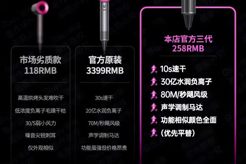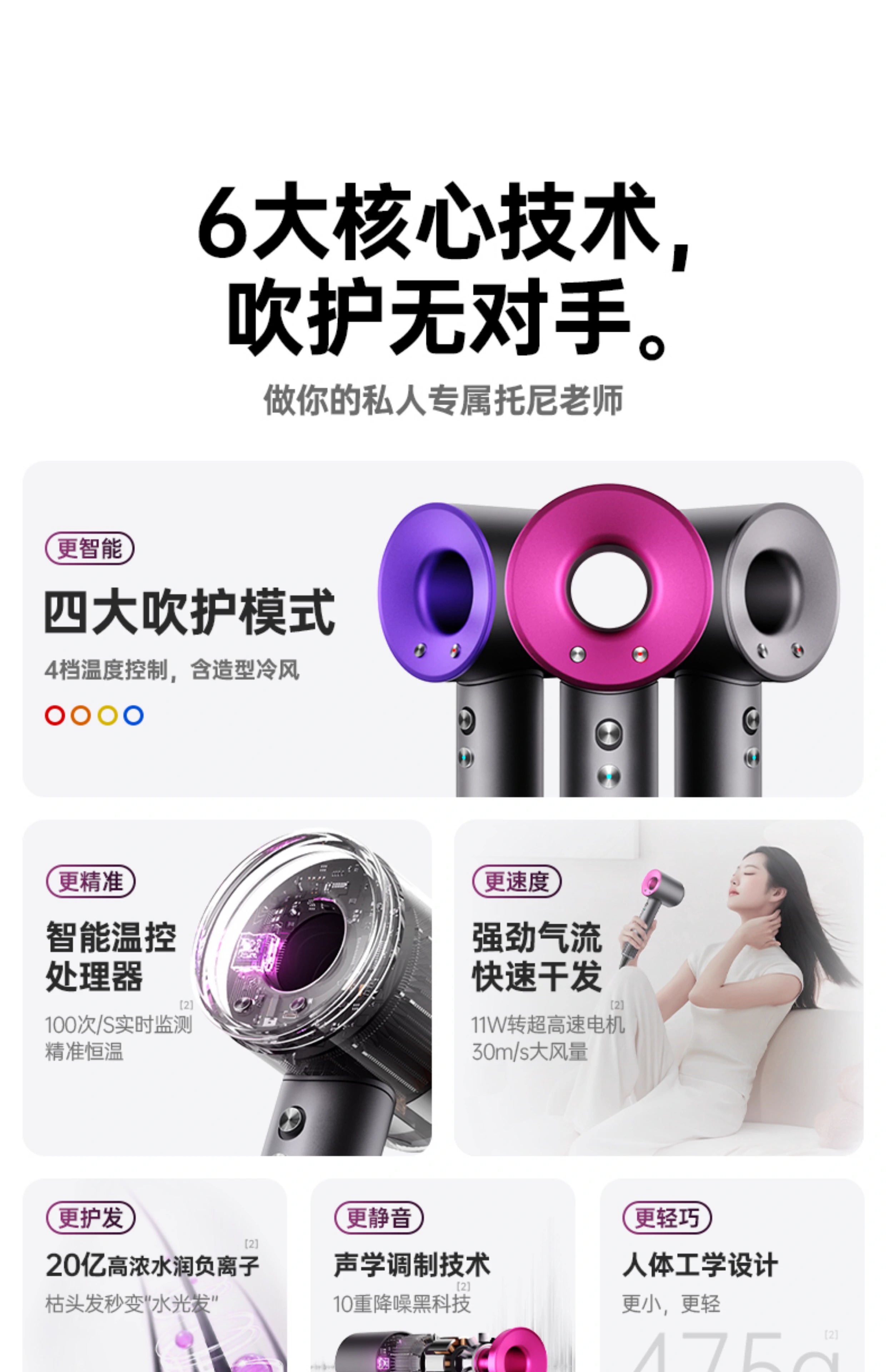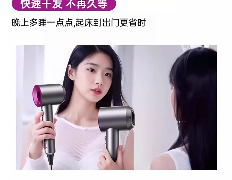 Dr. Lightspeed National 3C Certification丨High-speed bladeless high wind hair dryer home silent negative ion high power does not damage hair Huaqiangbei Hair Dryer for student dormitories Rose Red-Single Nozzle 4.5 billion moisturizing negative ions丨10 seconds quick drying 2025 upgrade丨Huaqiangbei official top configuration 1 1 1.8 meter cord length