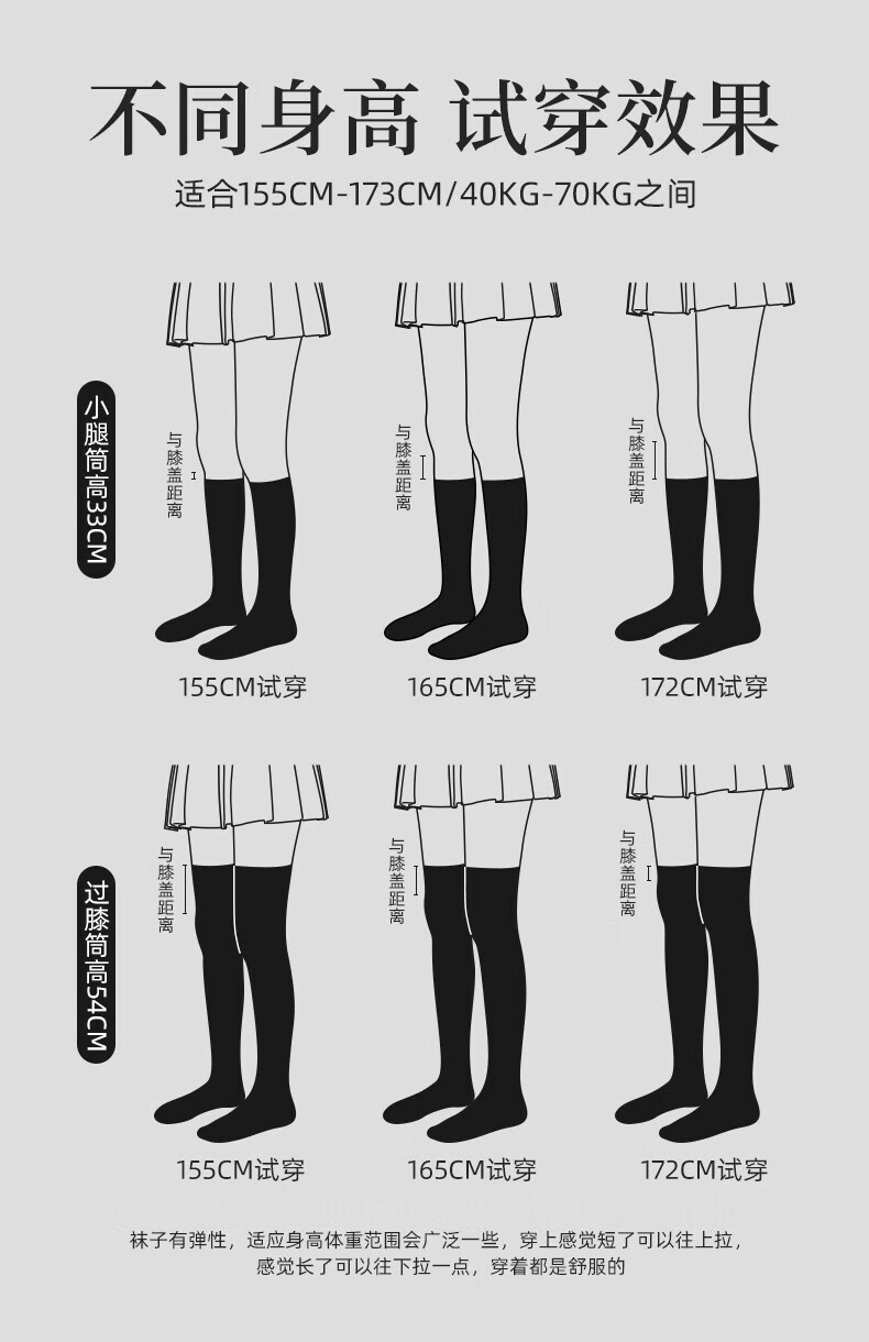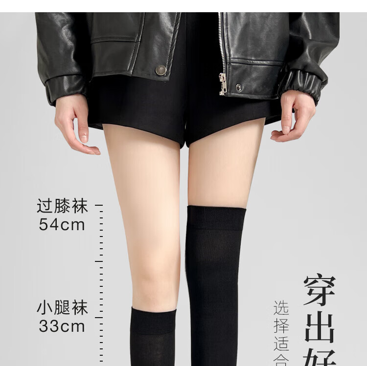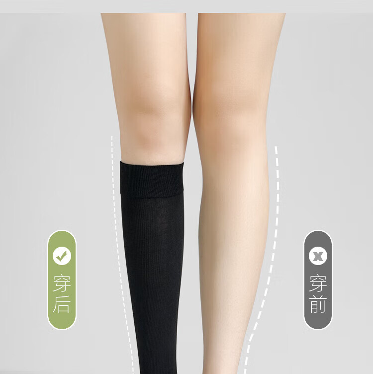 He Jiagong pressure socks slimming women's summer calf socks over the knee socks jk stockings black with small leather shoes mid-calf stockings black over the knee 54cm + black calf 33cm one size fits all Xinjiang cotton model modified leg shape/segmented pressure