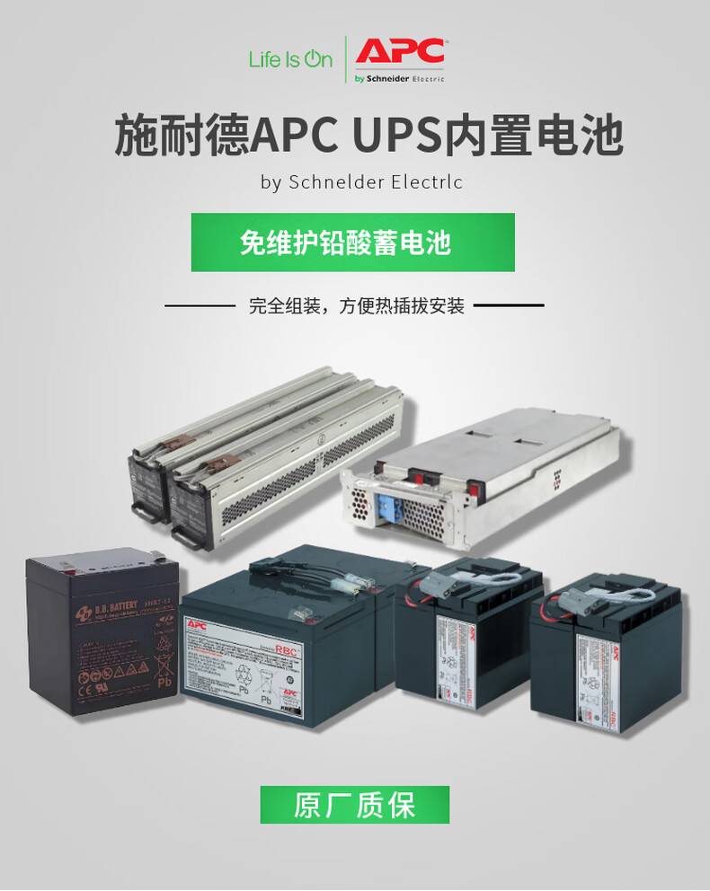 APC施耐德 UPS不间断电源配套 SUA/SMT原装内置电池 SURT免维护铅酸蓄电池 12V 专用电池方便组装安装 RBC43(SUA2200/3000R2ICH)