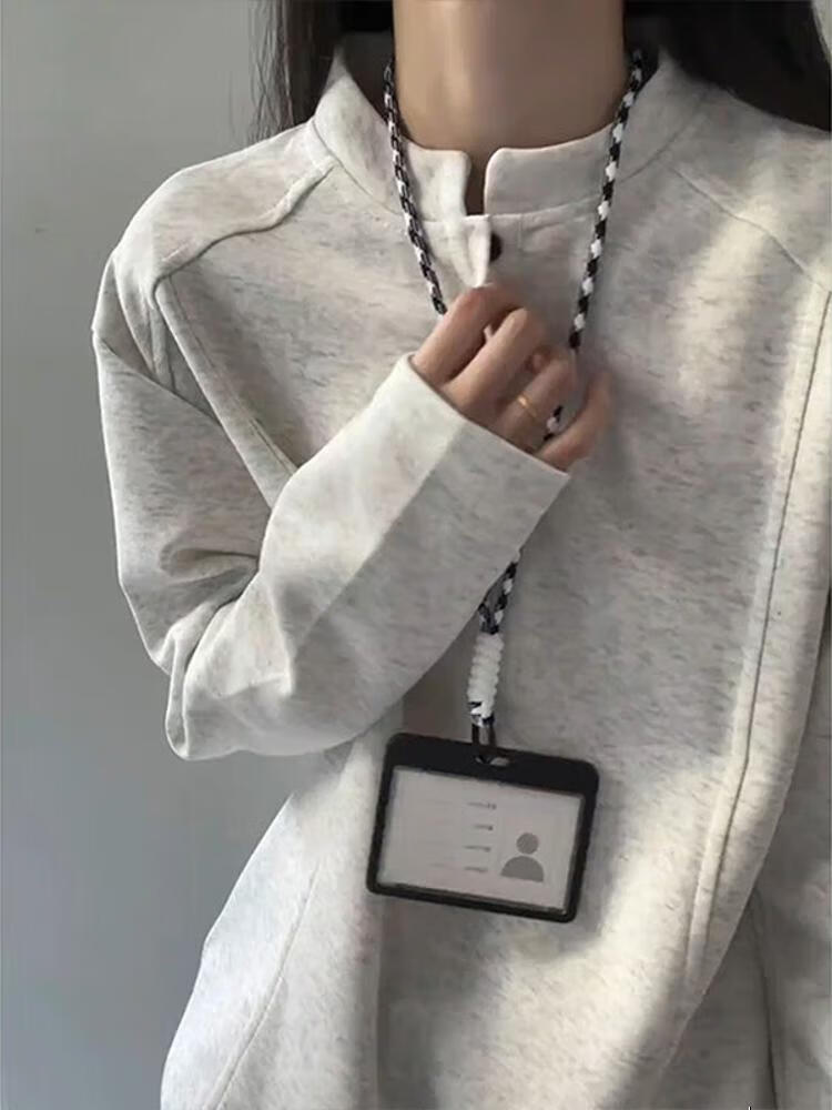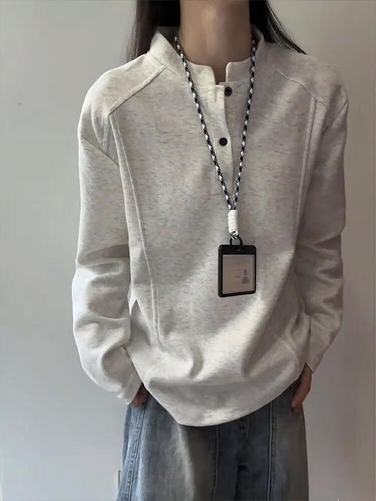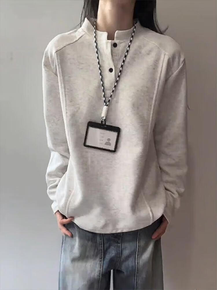 Cantu Henry Collar POLO Shirt Men's Spring and Autumn Deconstructed Splicing Design Right Shoulder Bottoming Shirt Long Sleeve T-Shirt Jacket White Gray XL