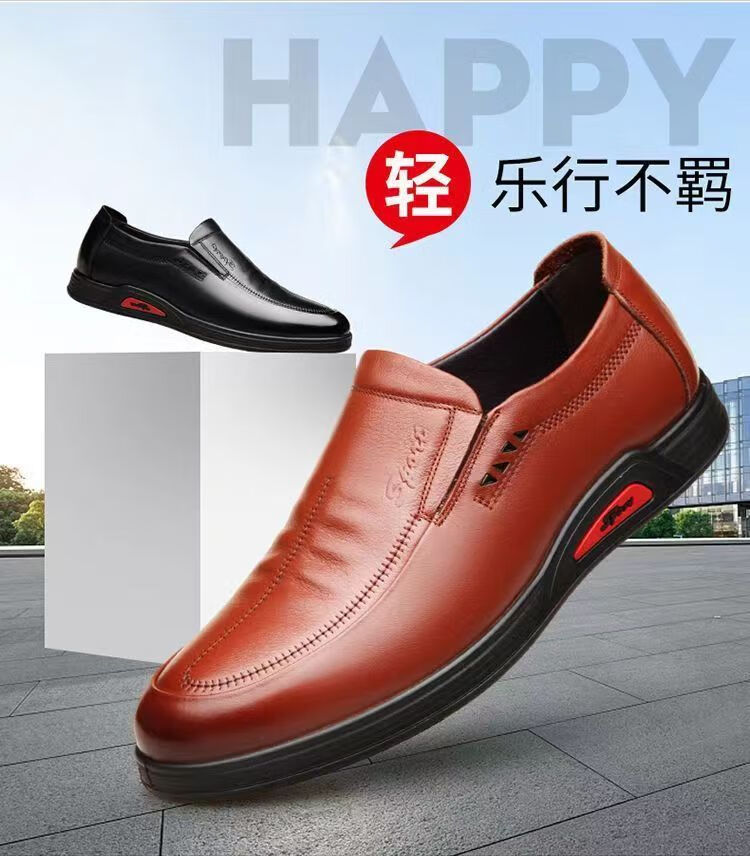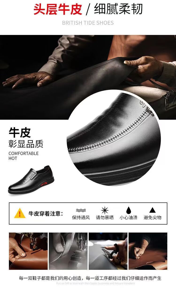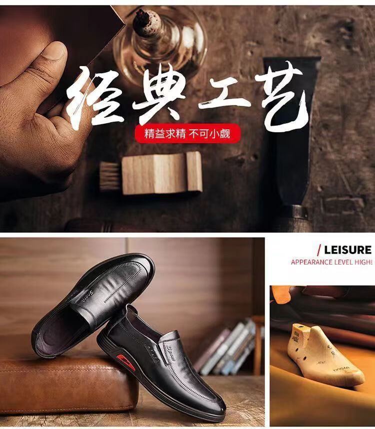 Star-headed Woodpecker Men's Shoes 2025 Autumn New Business Genuine Leather Casual Shoes Men's Soft Leather Soft Sole Middle-aged Dad Shoes SN-9083 Black 40