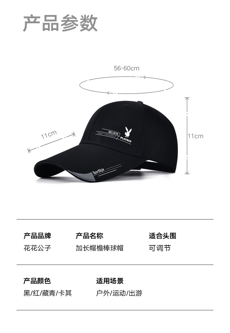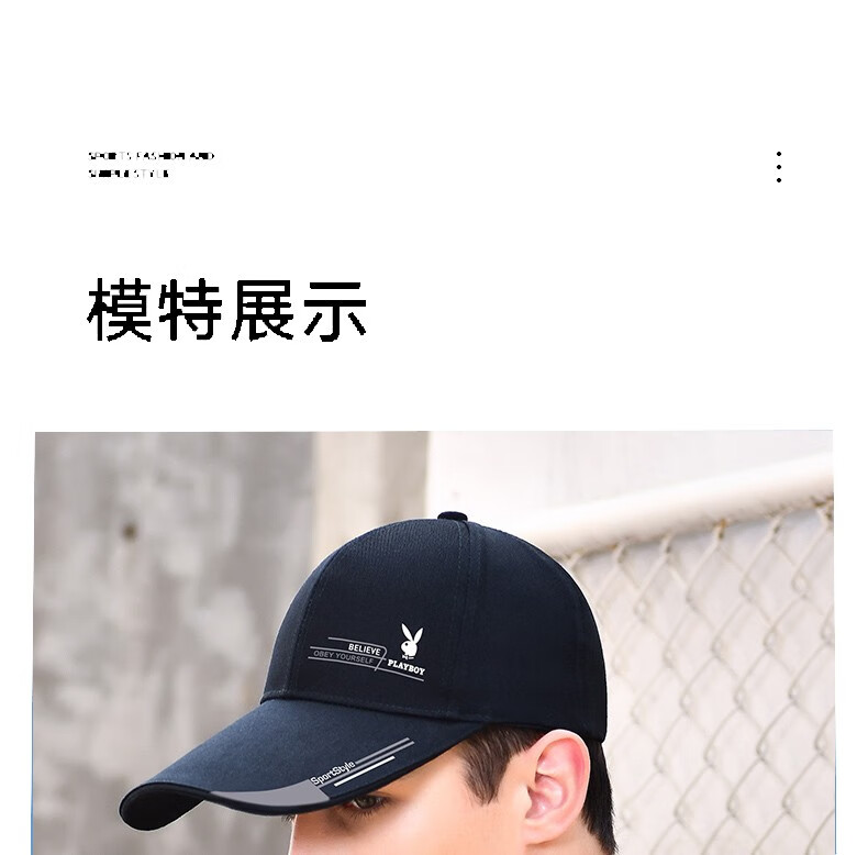 Playboy Hats Men's and Women's Baseball Caps Korean Style Trendy Peaked Caps Outdoor Leisure Sports Fishing Hats Sun Hats Playboy Baseball Caps Black