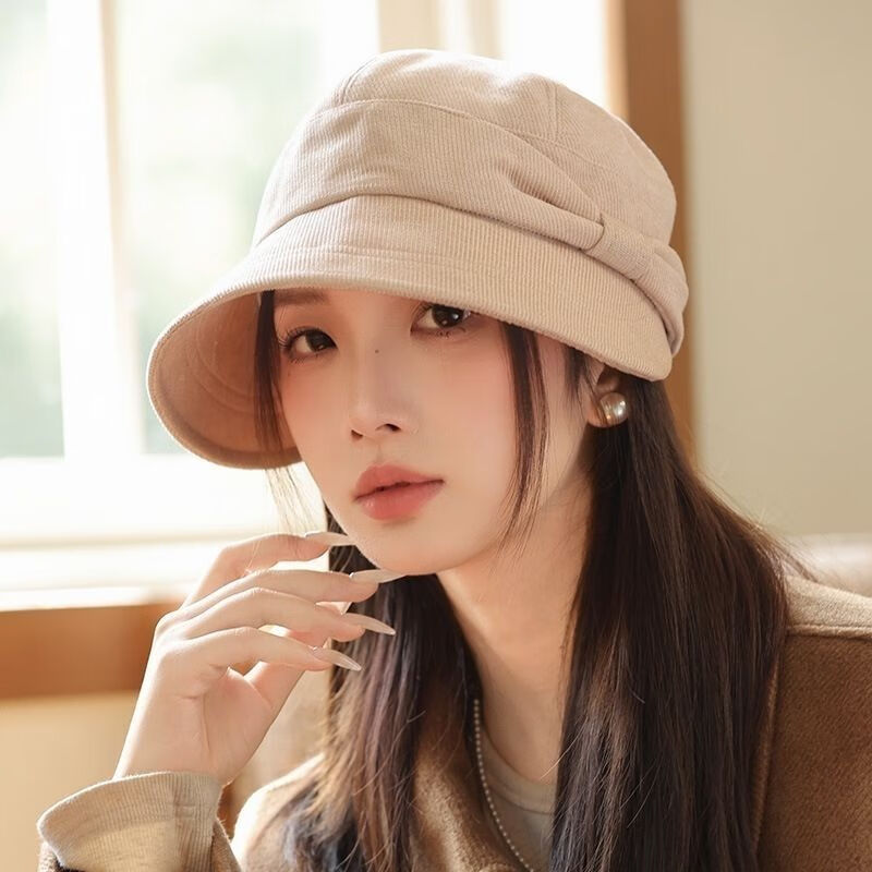 Japanese autumn and winter hats for women, fashionable and versatile basin hats, Korean style warm peaked caps, large brim, face-showing small equestrian hats XYH-3 beige bow equestrian hat