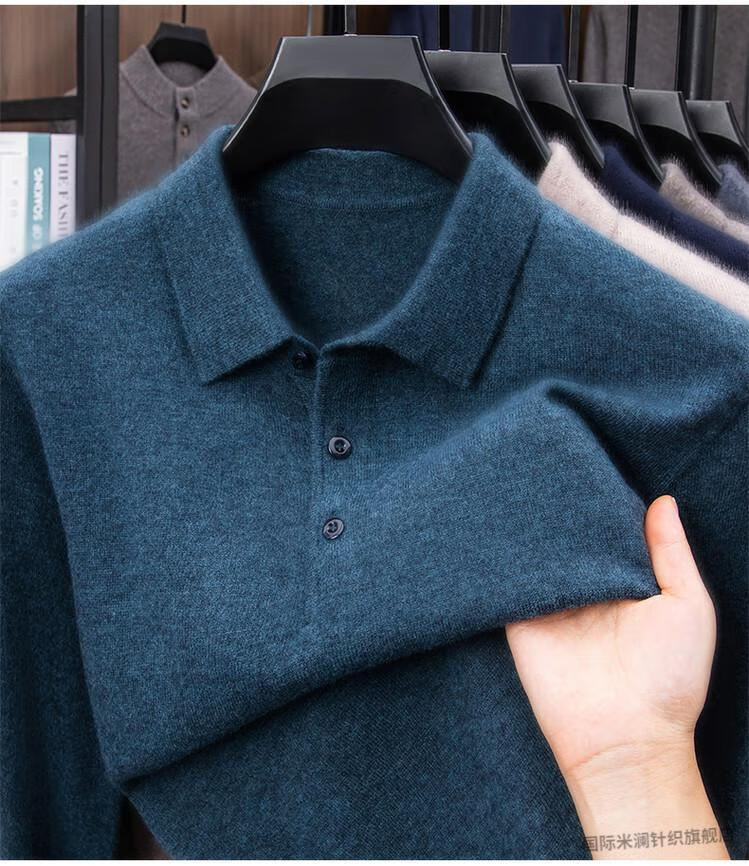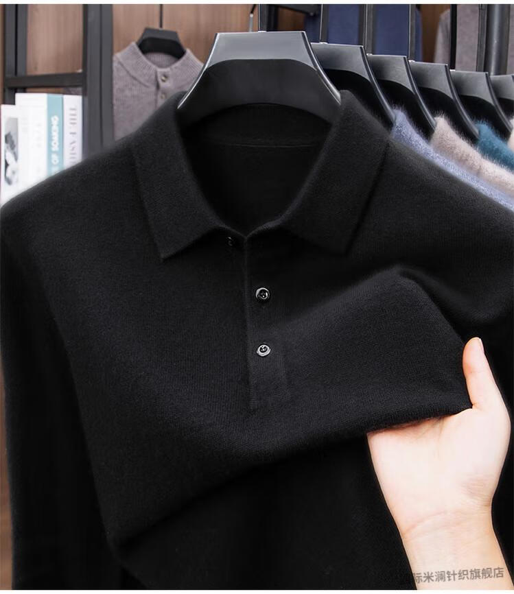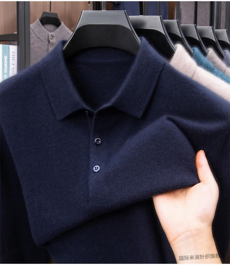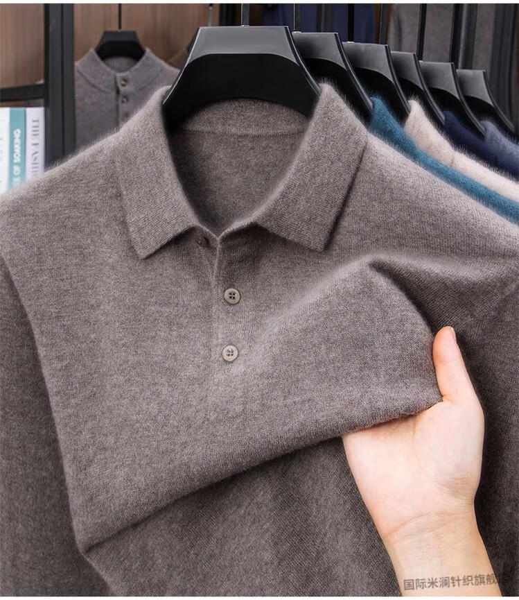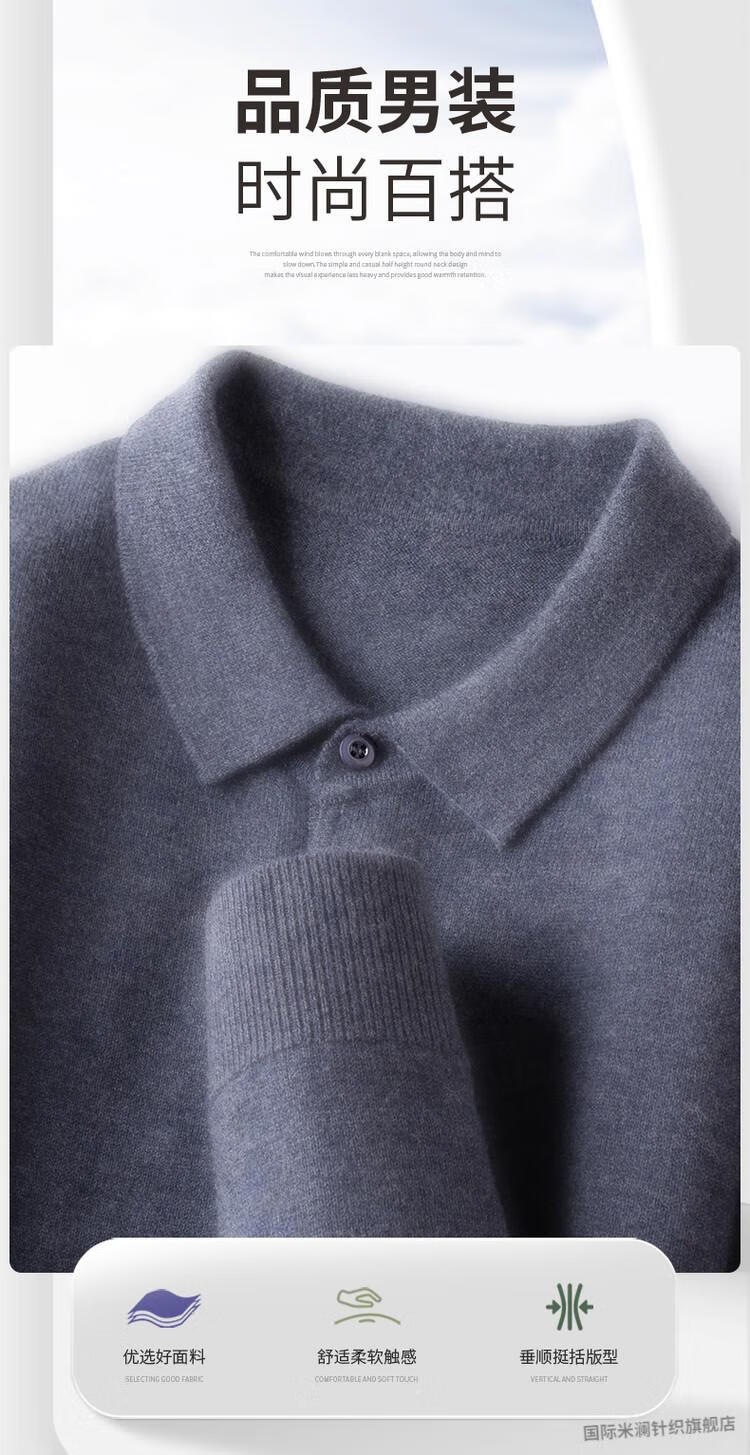 International Milan 100% pure woolen sweater for men in autumn and winter new thickened warm sweater lapel dad wear middle-aged knitted bottoming shirt Huamituo XL (175) Recommendation 130-155Jin Jin is equal to 0.5 kg