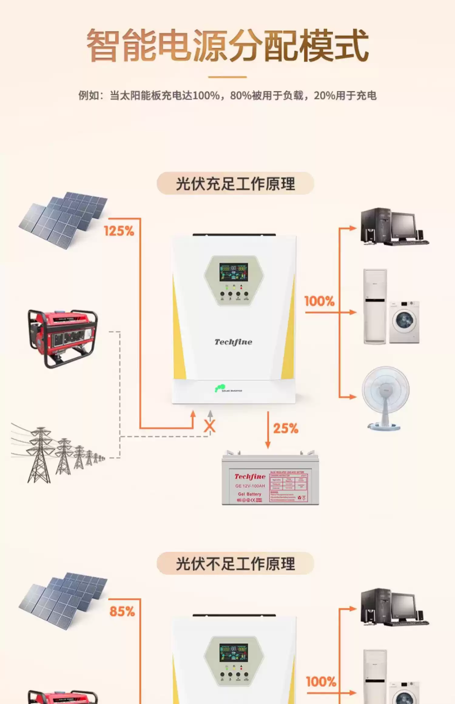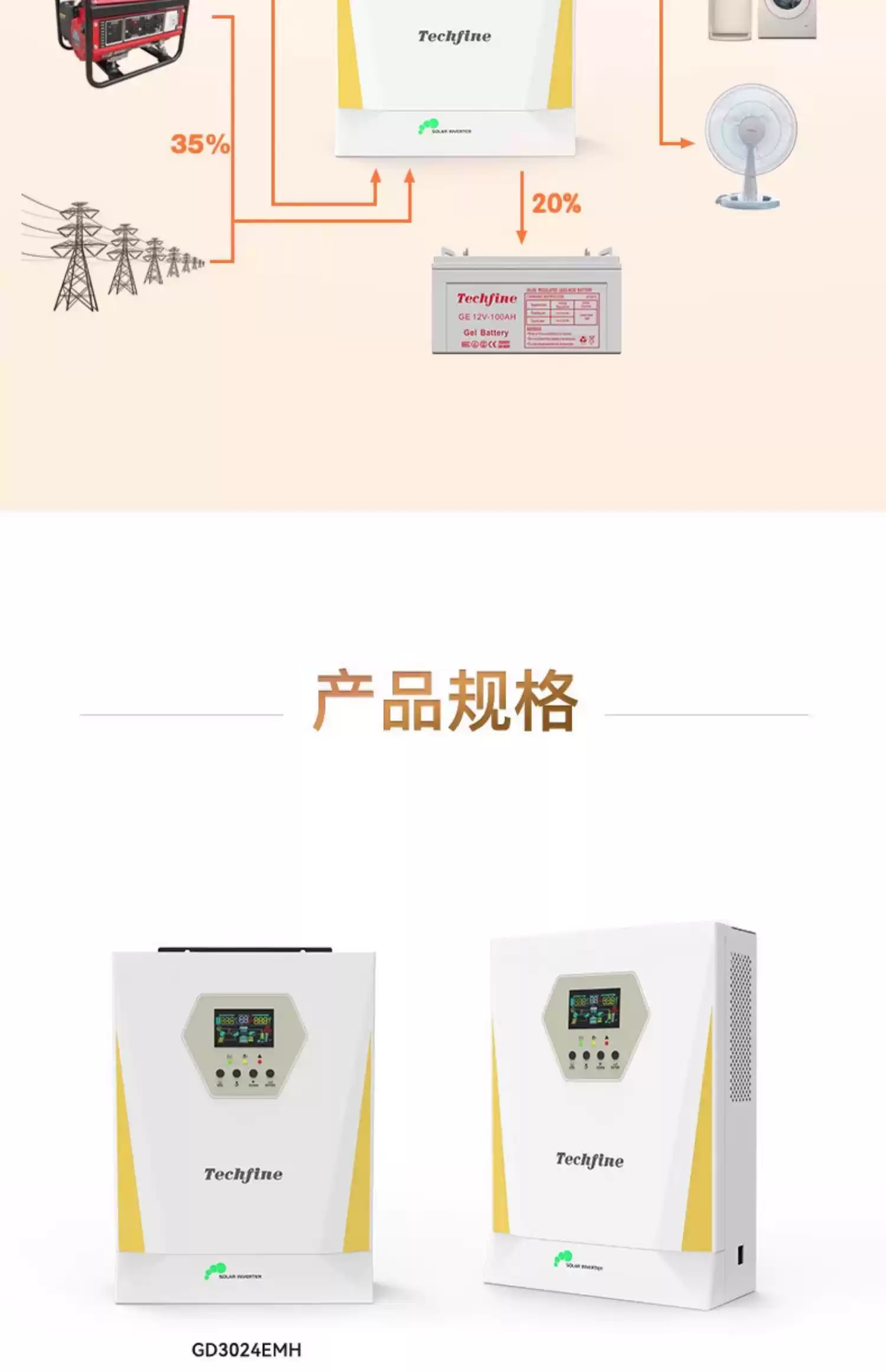 Taiqifeng photovoltaic inverter energy storage 3KW11KW solar sine wave inverter household inverter control all-in-one machine GD3024EMH3000W24V/must be connected to the battery