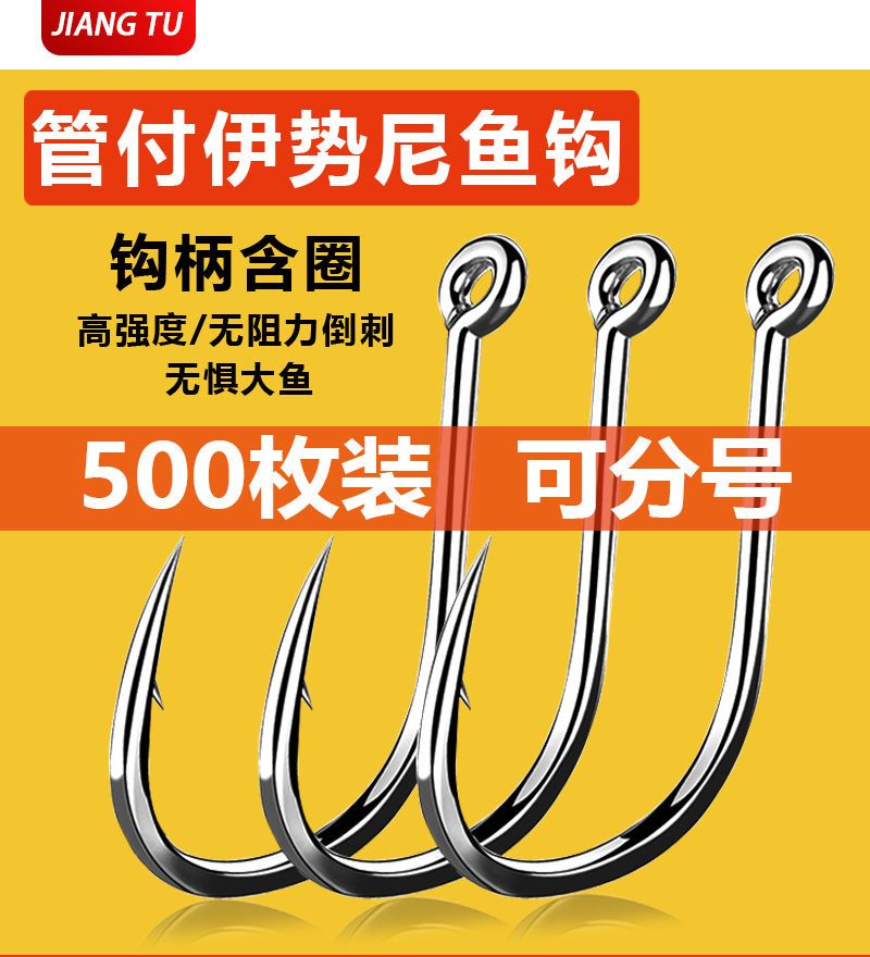 Kaooseen (Kaooseen) 500-piece Iseni fish hooks in bulk with barbs, loops, holes, and loop fishing hooks, 50-piece Iseni tubes with loops, No. 3