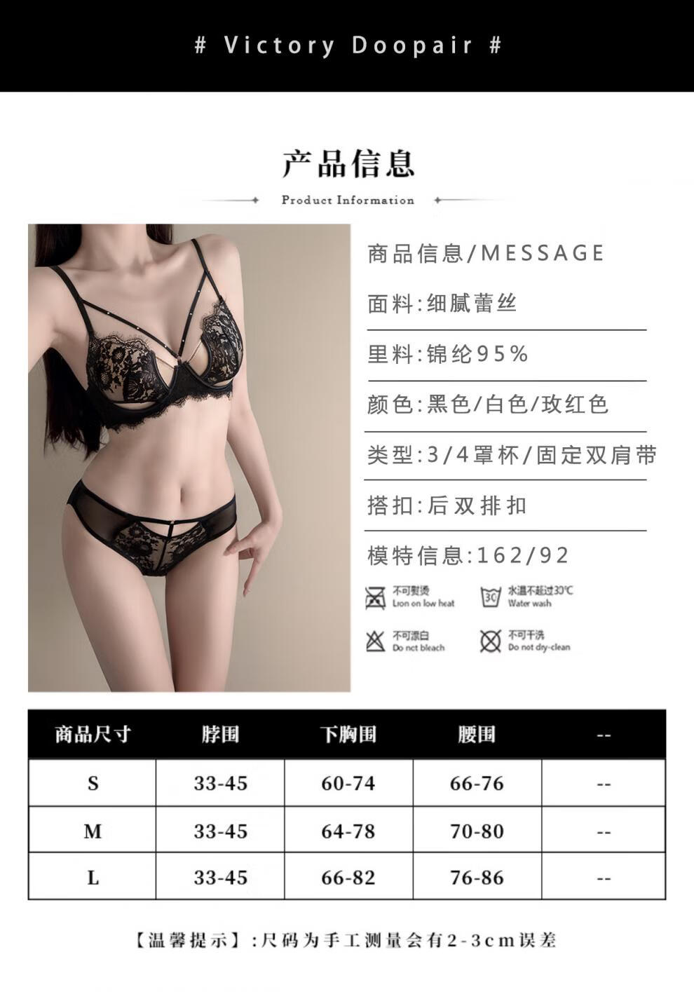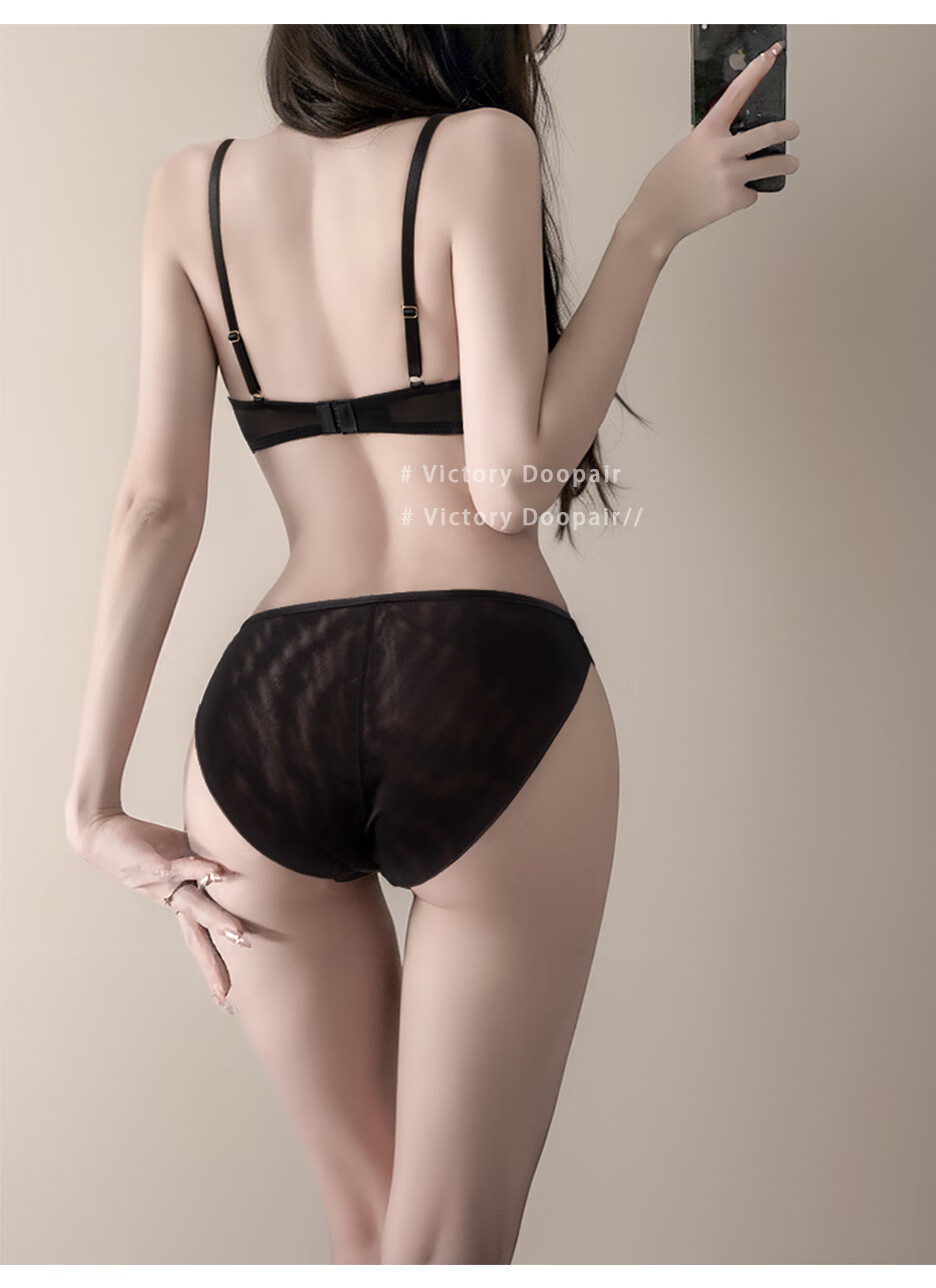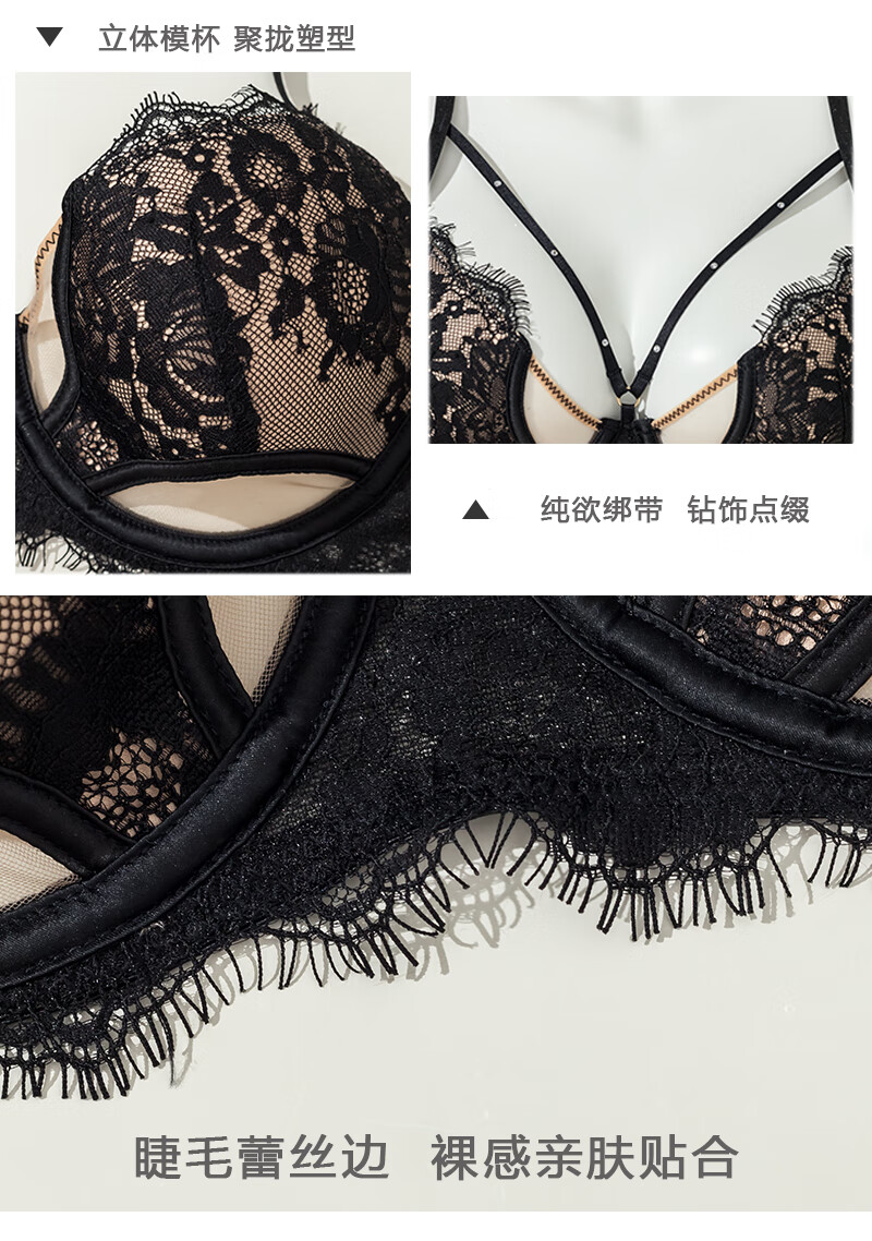 Victoria's style sexy secret lace cross breast bra for women push up big breasts to show small anti-sagging pure lust bra set black suit 75D 34