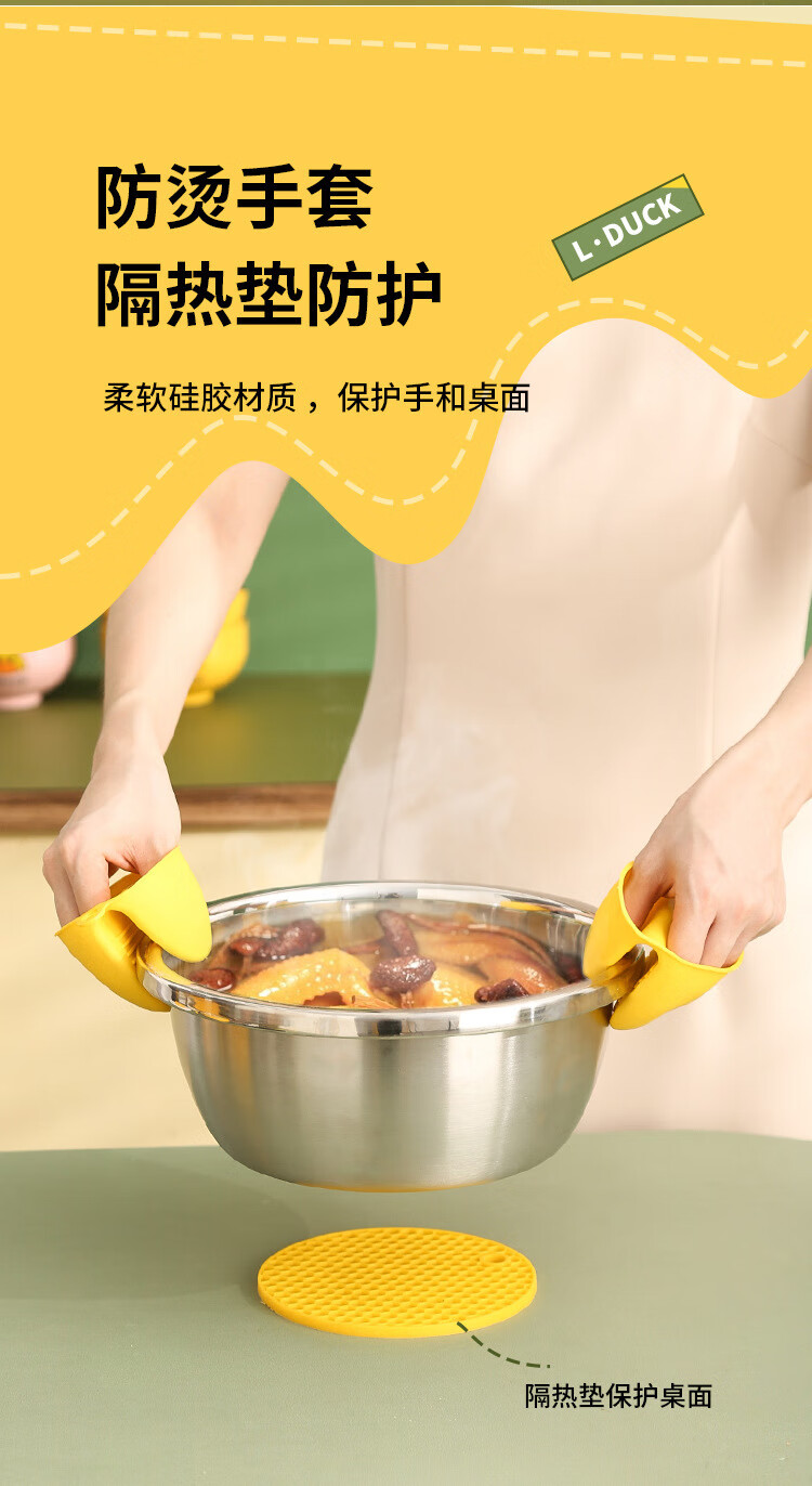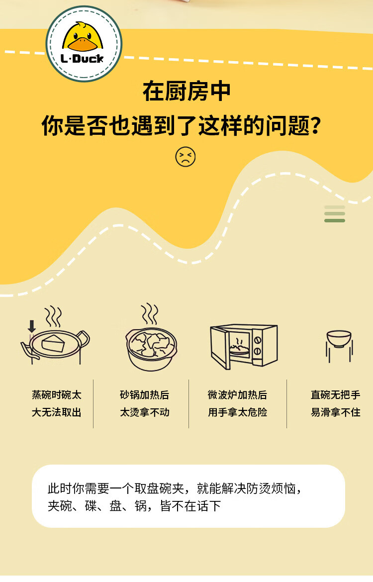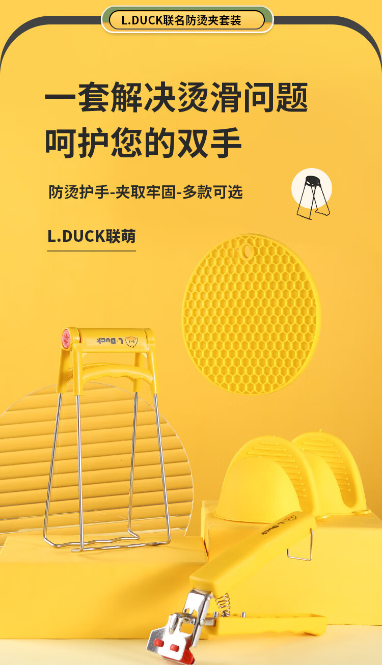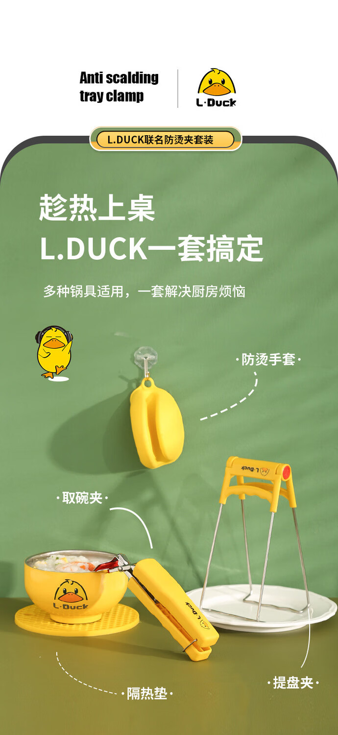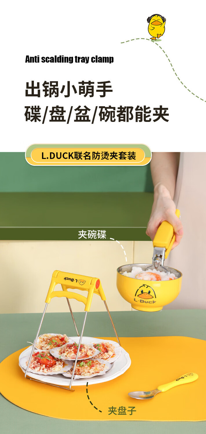 MZXM Japan imported high quality little yellow duck anti-scalding set home kitchen insulated vegetable tray anti-scalding hand artifact tray lifter yellow duck anti-scalding tray clip