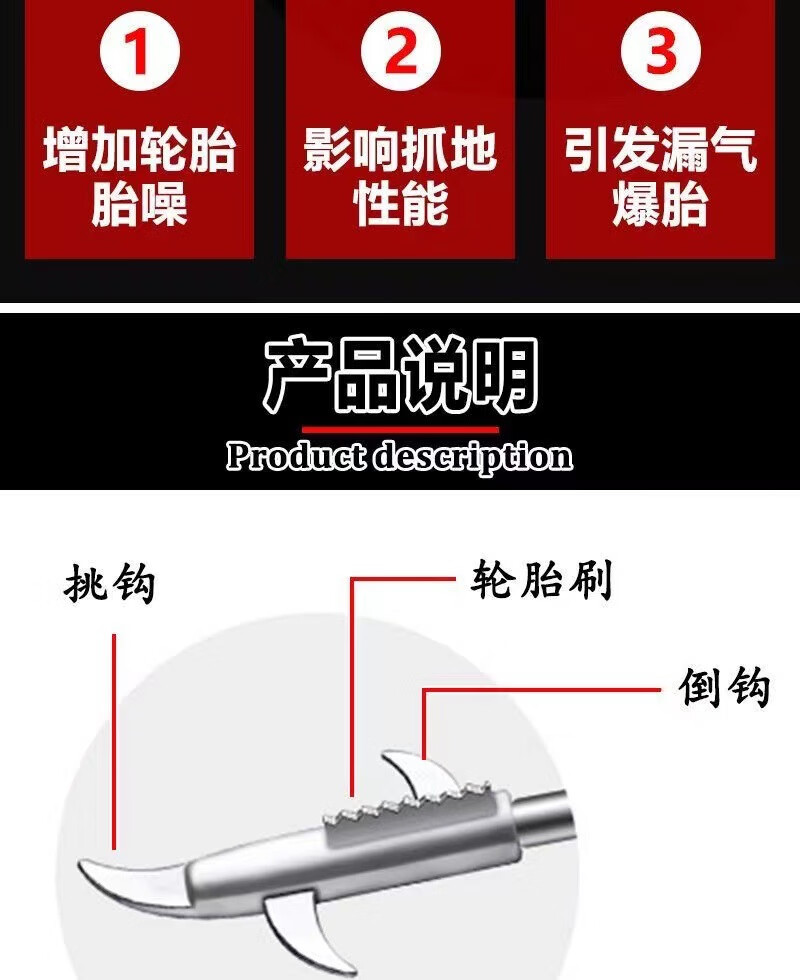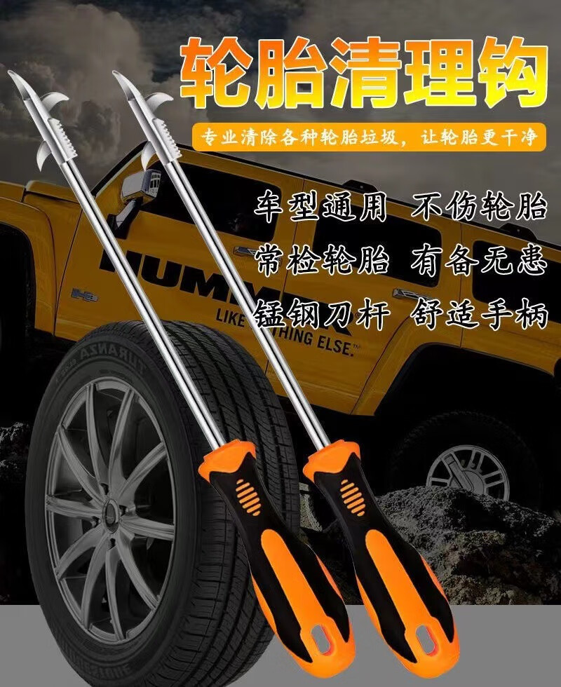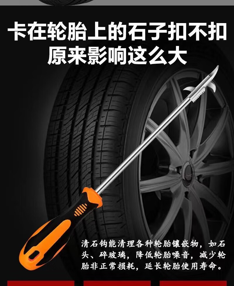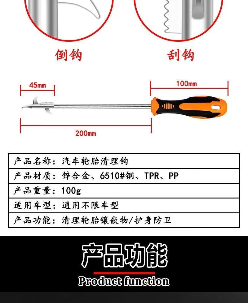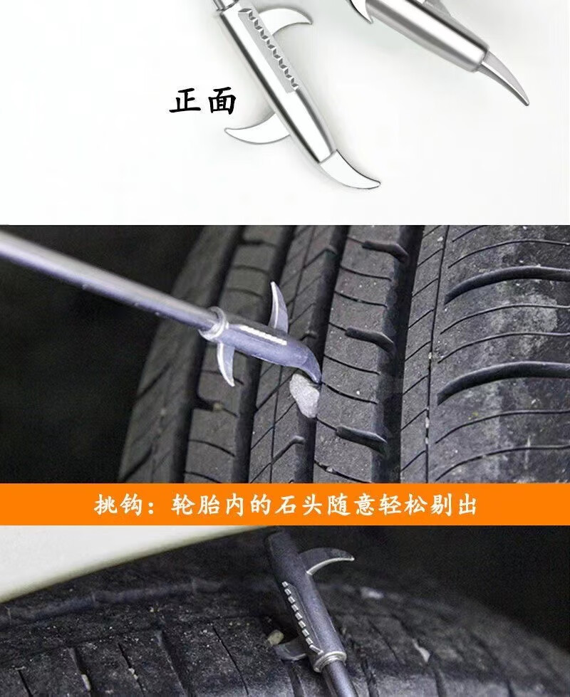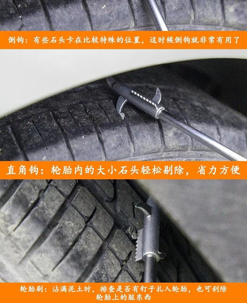 Tire stone cleaning hook, tire stone cleaning tool, broken window self-defense, multi-functional and convenient built-in screwdriver, tire stone cleaning hook, one pack