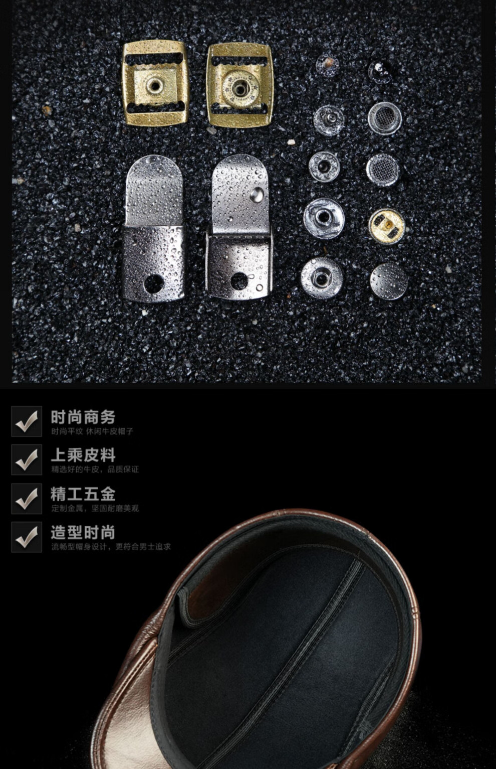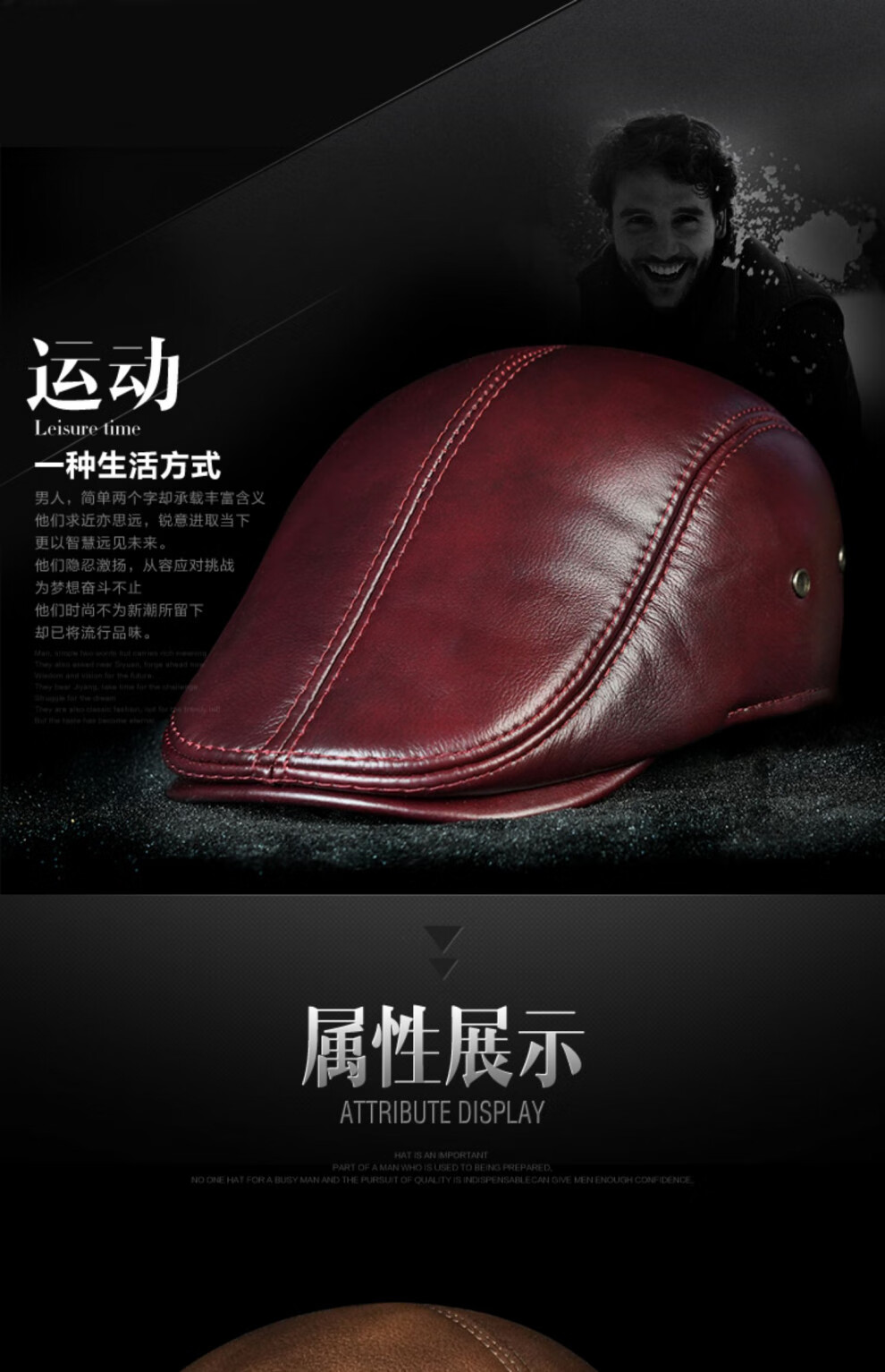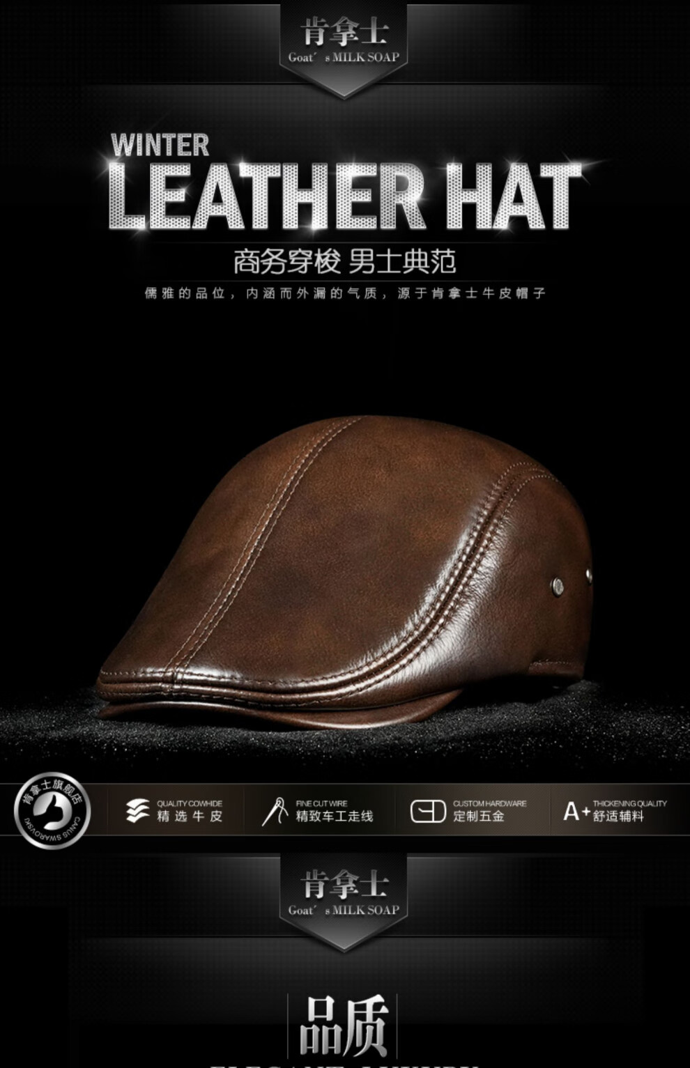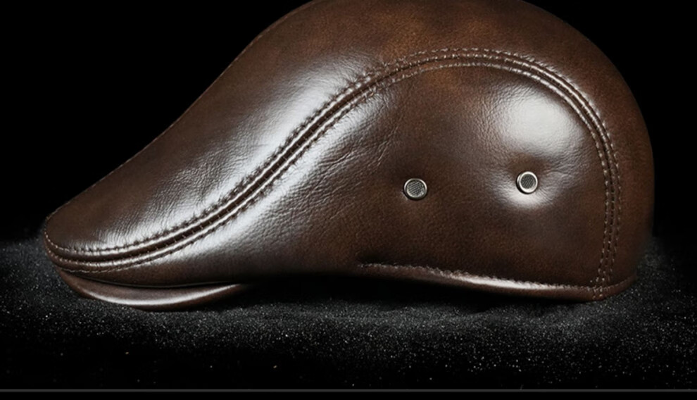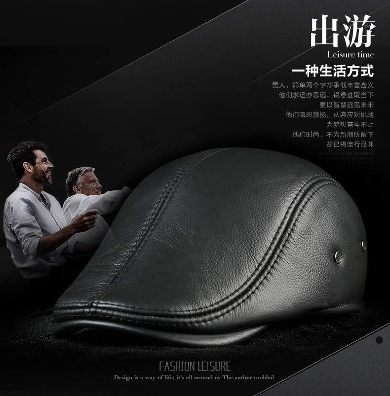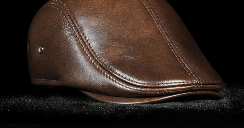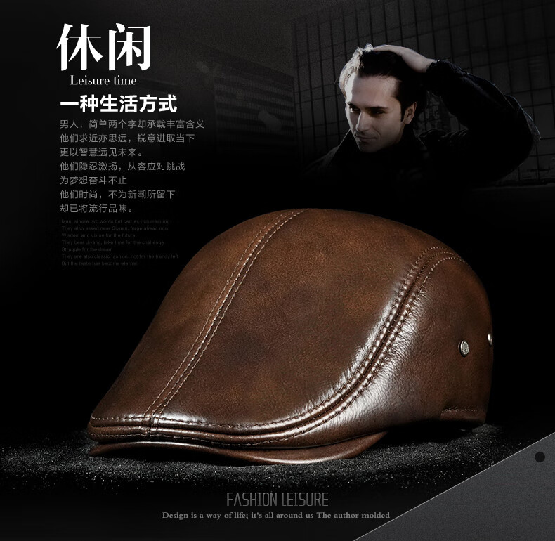 JEEP SPIRIT hat men's autumn and winter fashion genuine leather warm peaked cap middle-aged and elderly ear protection cowhide cotton hat beret forward cap first layer cowhide yellow brown with thick ear protection M XXL (60-61c)