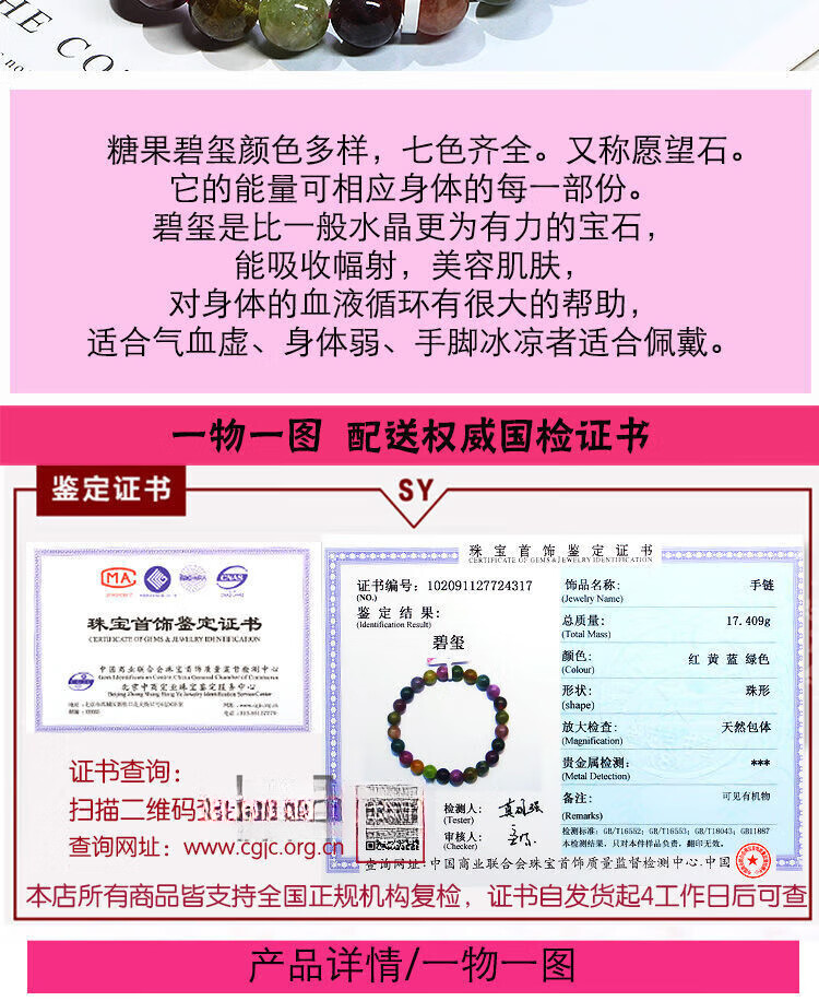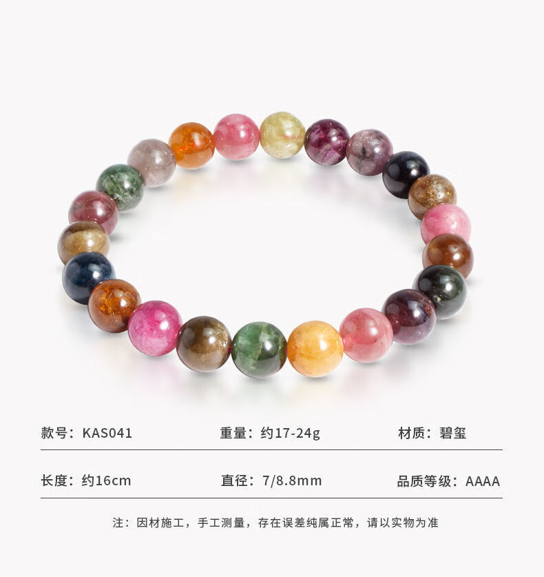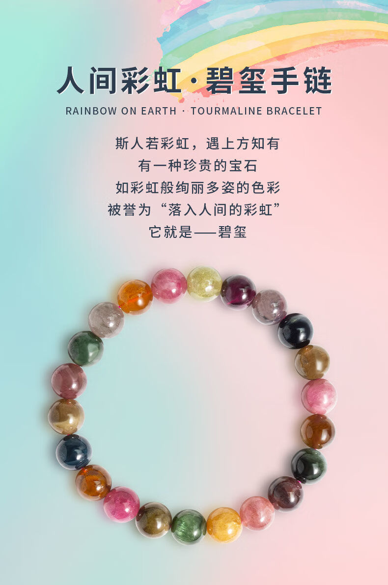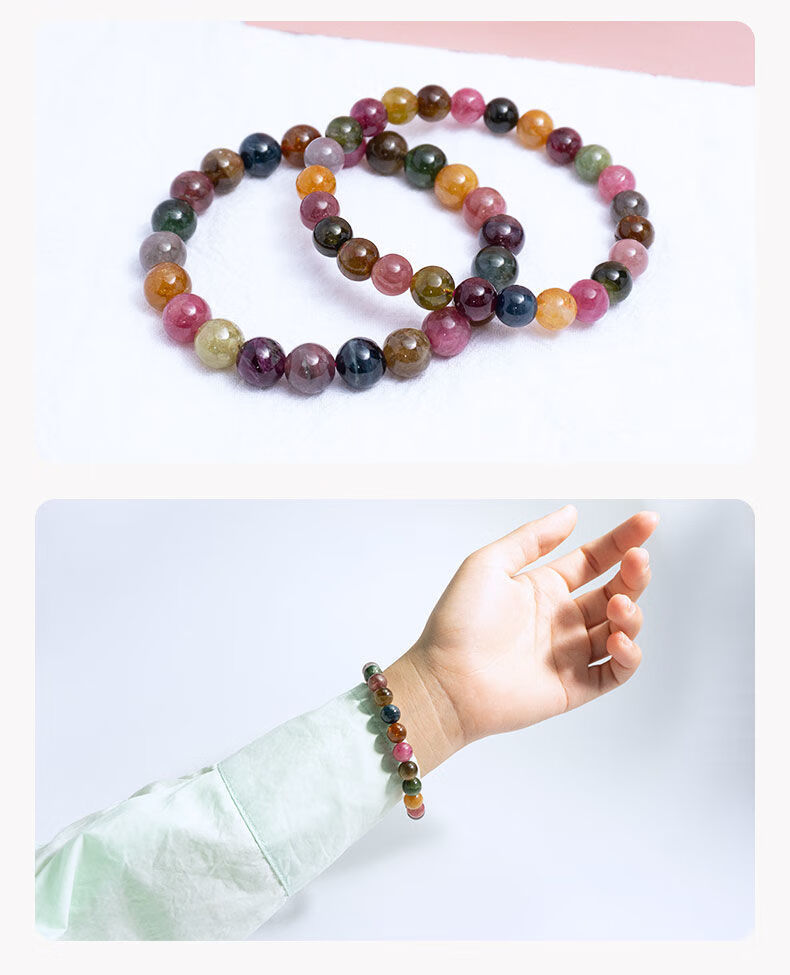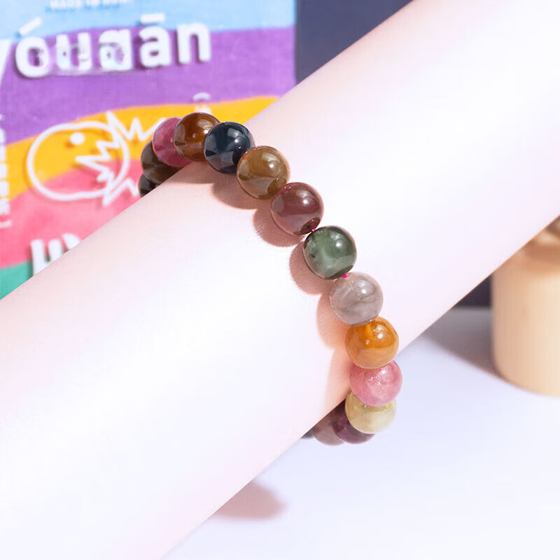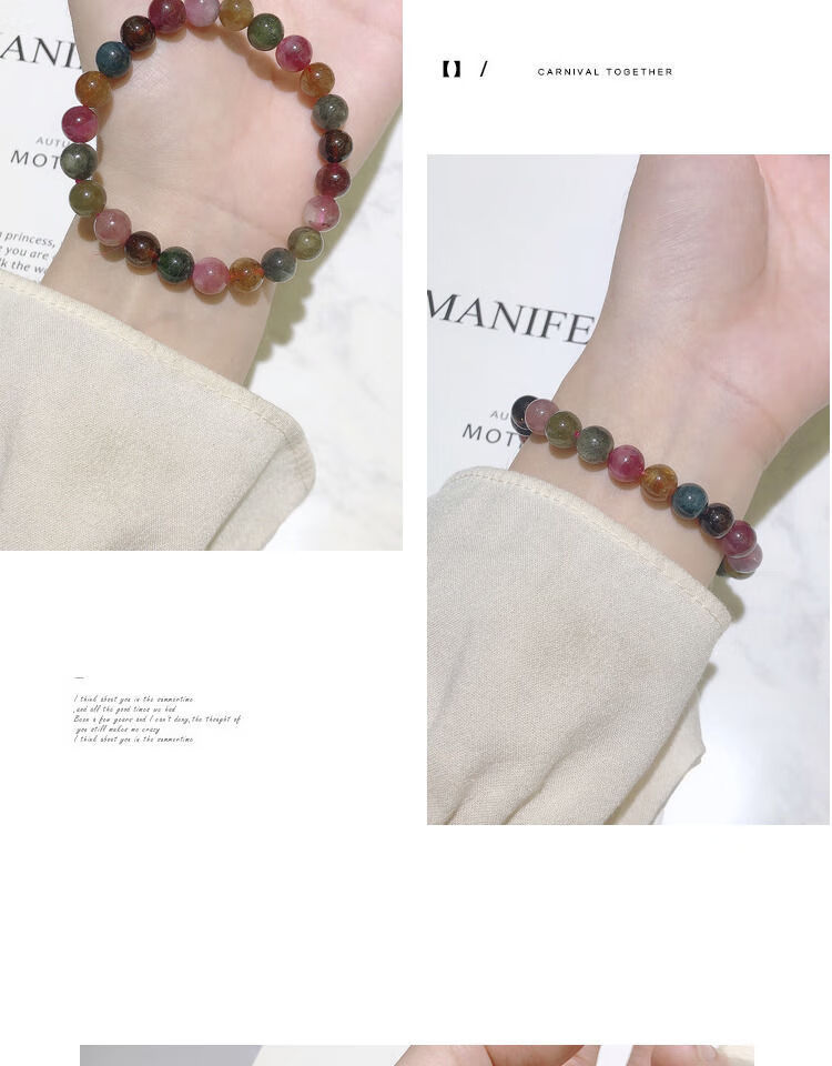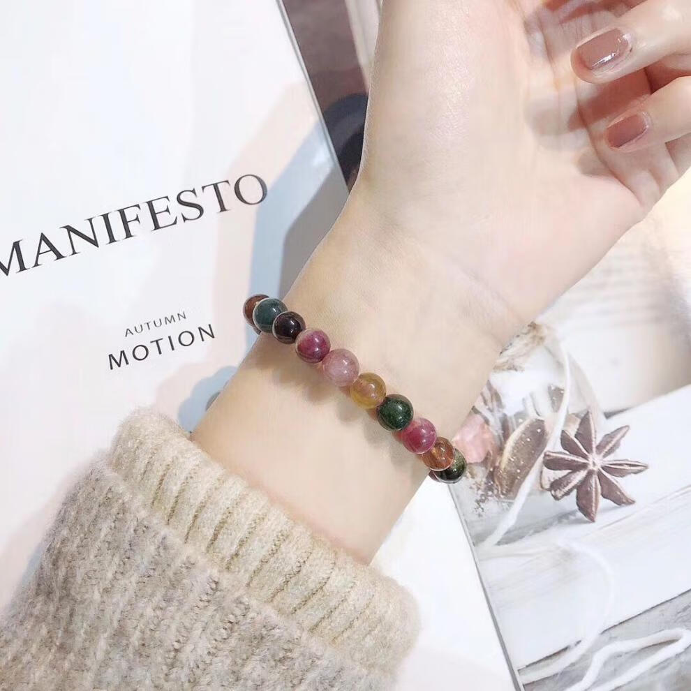 Shimei Natural Tourmaline Bracelet Colorful Tourmaline Bracelet New Watermelon Tourmaline Candy Love Gift with Certificate 6mm Rainbow Tourmaline (Young Model)