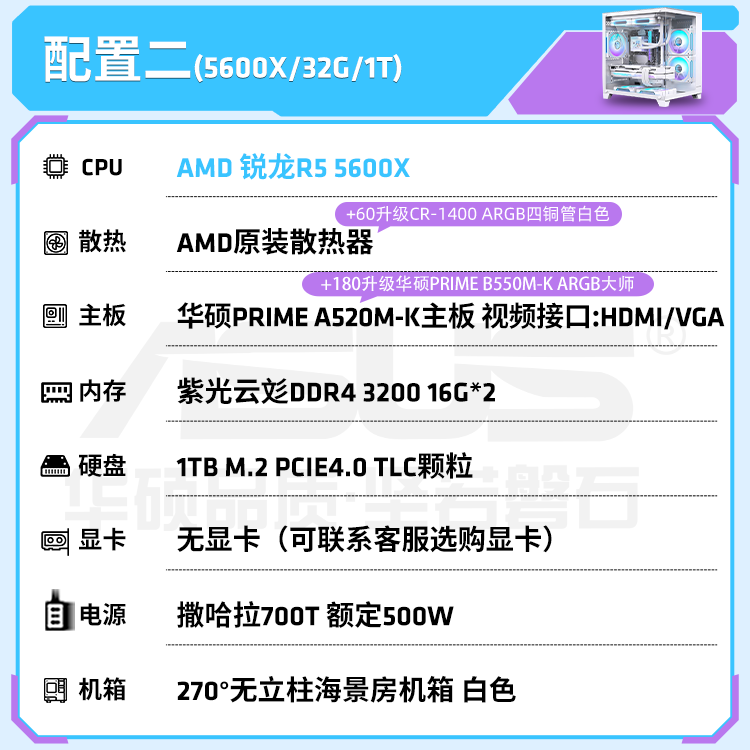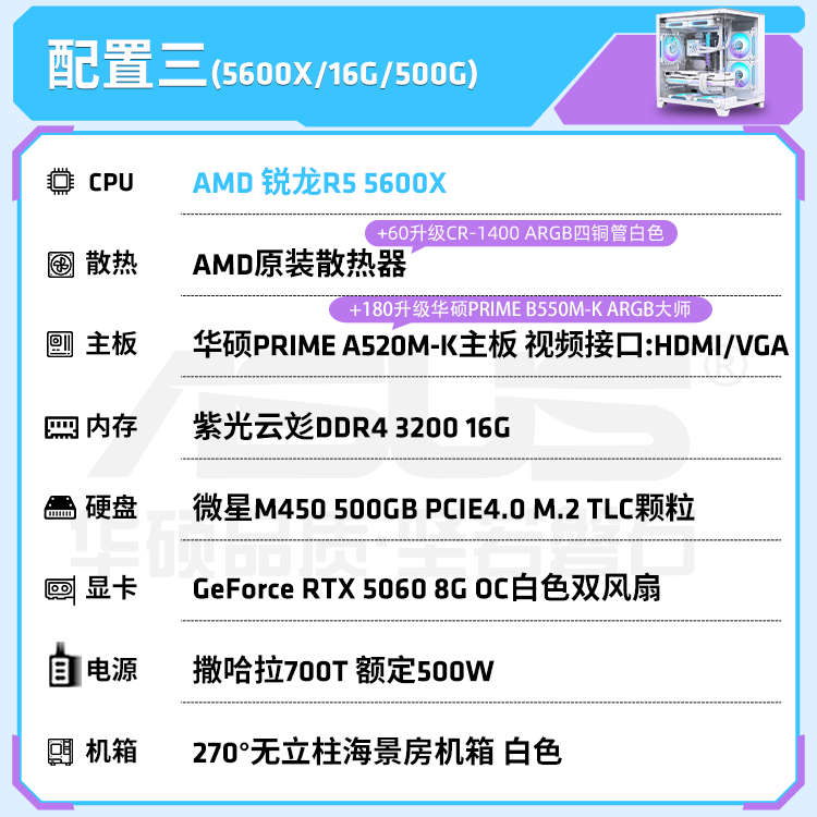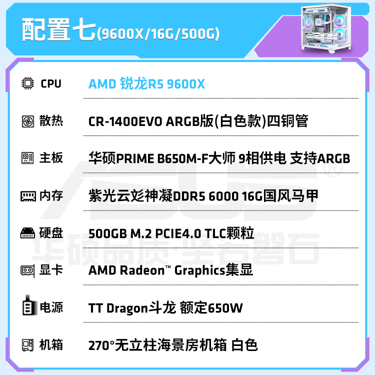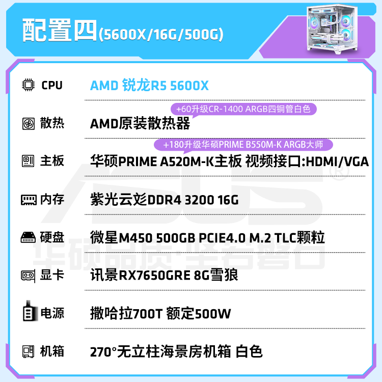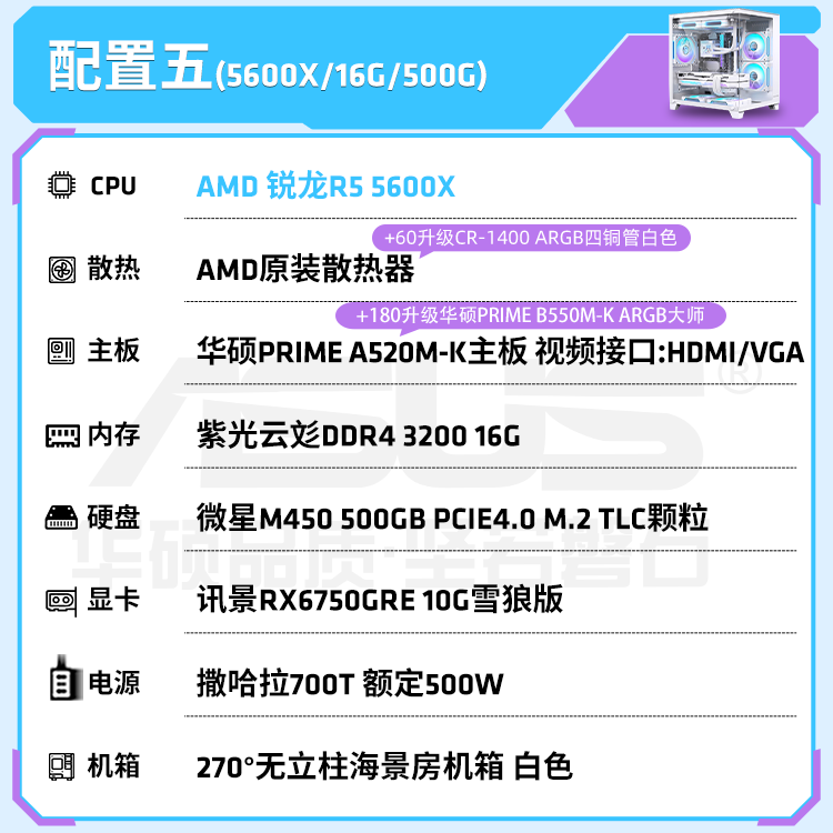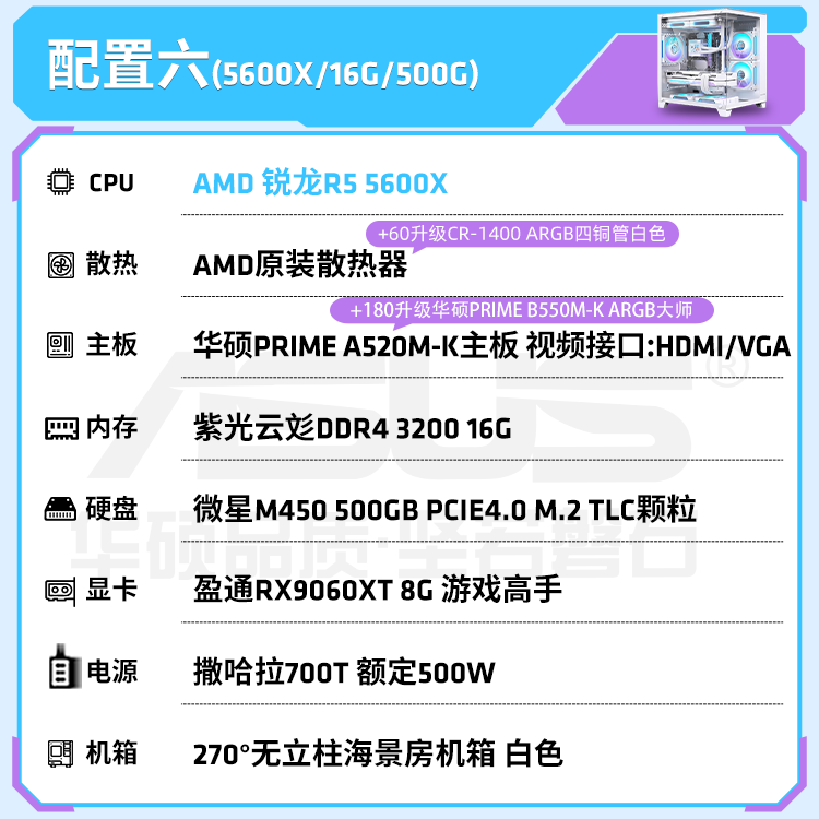 ASUS AMD Ryzen 5 5600X/9600X host RX7650GRE/RTX5060 graphics card live e-sports desktop computer host DIY assembly machine configuration one R5 5600X+16G+500G host