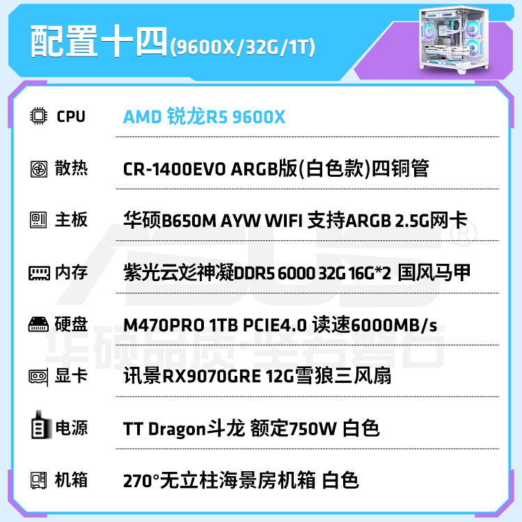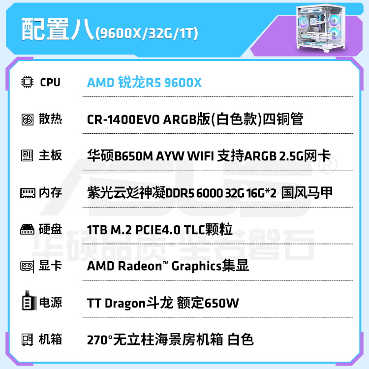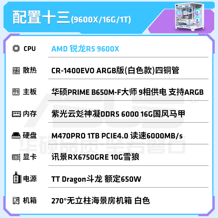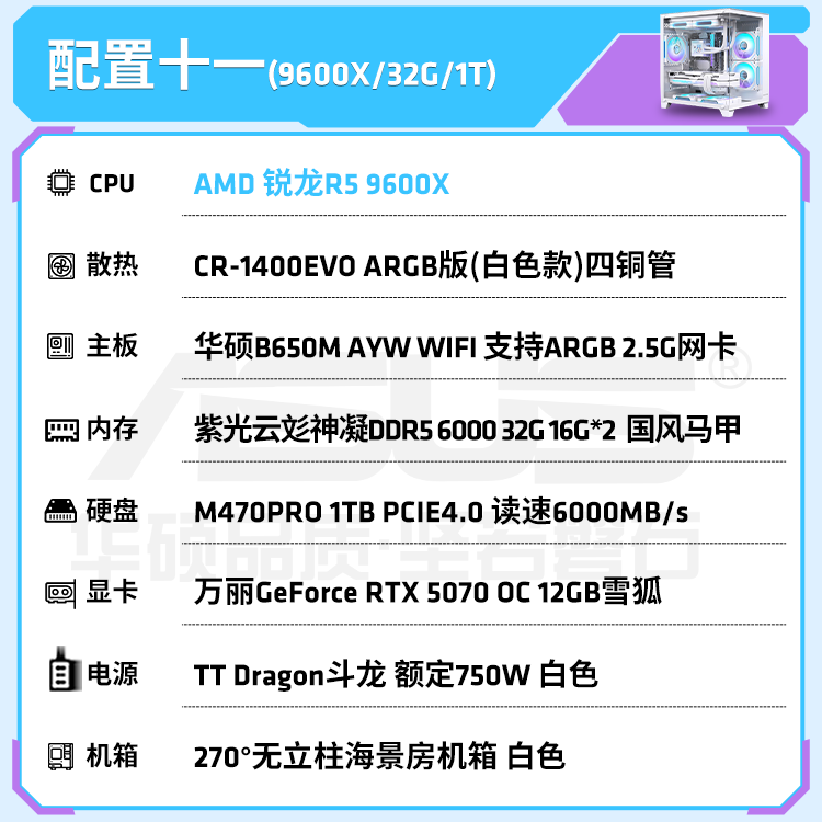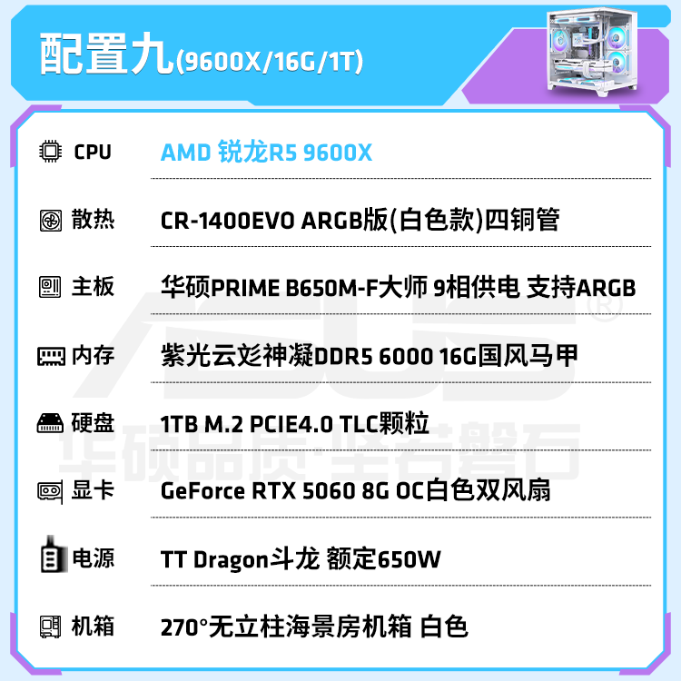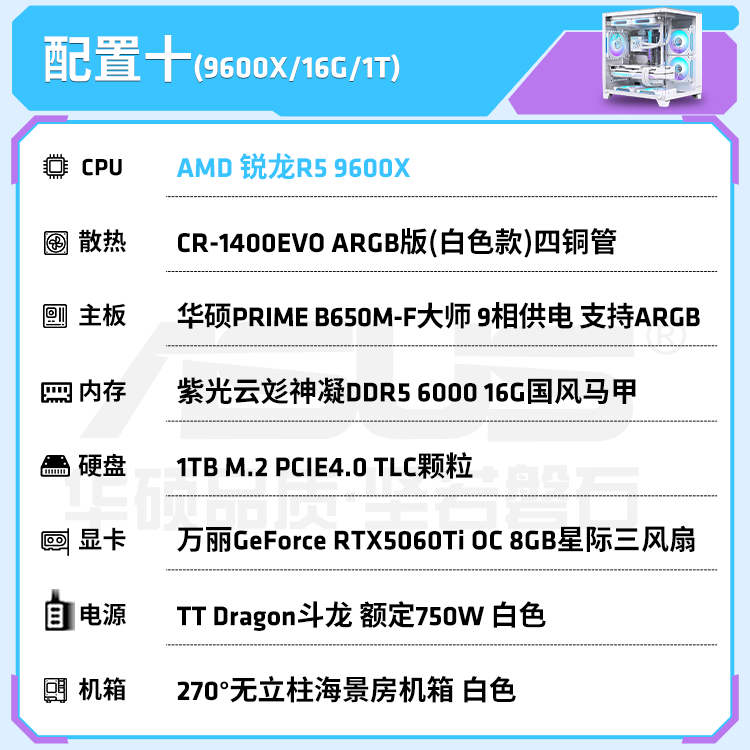 ASUS AMD Ryzen 5 5600X/9600X host RX7650GRE/RTX5060 graphics card live e-sports desktop computer host DIY assembly machine configuration one R5 5600X+16G+500G host