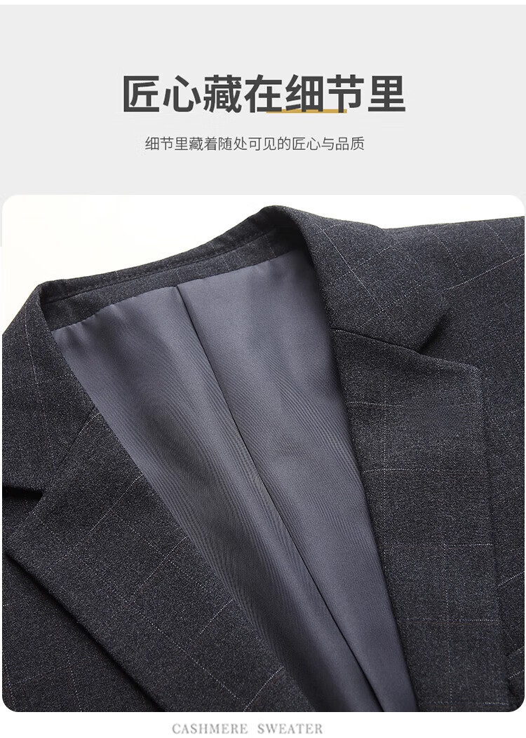 Hengyuanxiang suit suit men's high-end business casual suit jacket middle-aged men's two-piece wedding dress black and gray 1579 plaid L 175 size recommended 120 Jin Jin equals 0.5 kg -130 Jin Jin equals 0.5 kg