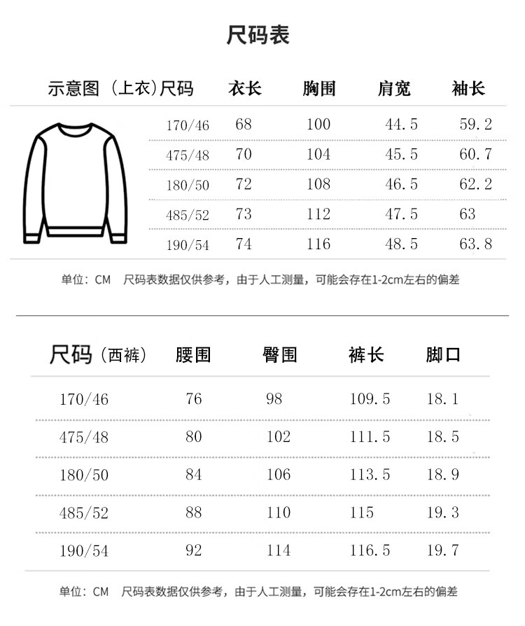 China (cm) 160-165/84-86 165-170 / 88-90 167-172 / 92-96 168-173 / 98-102 170-176 / 106-110