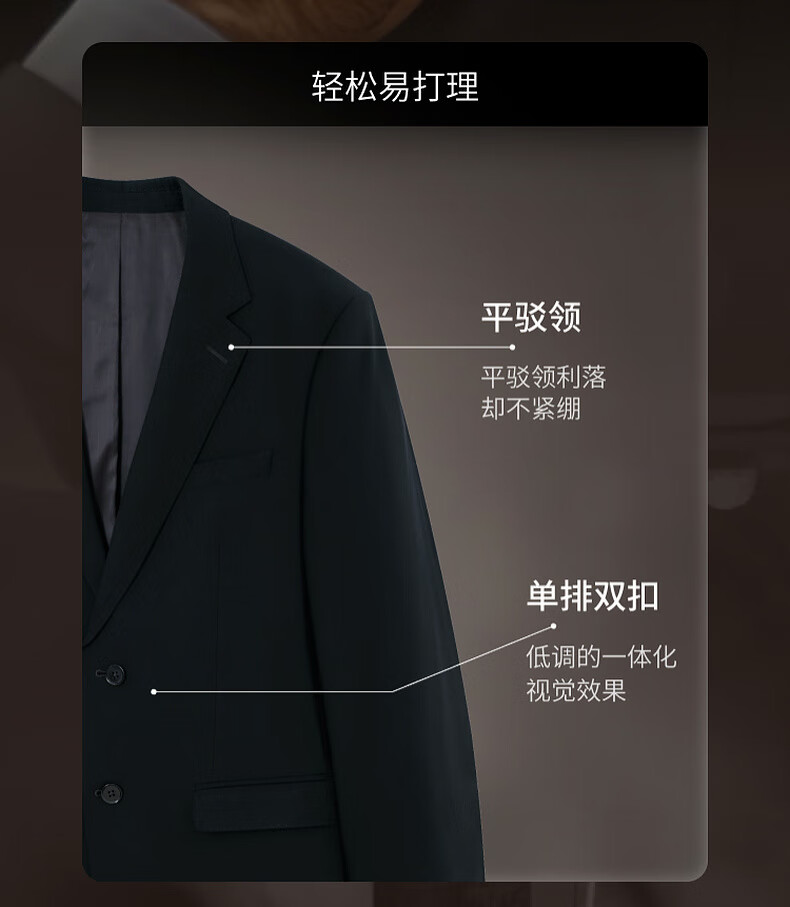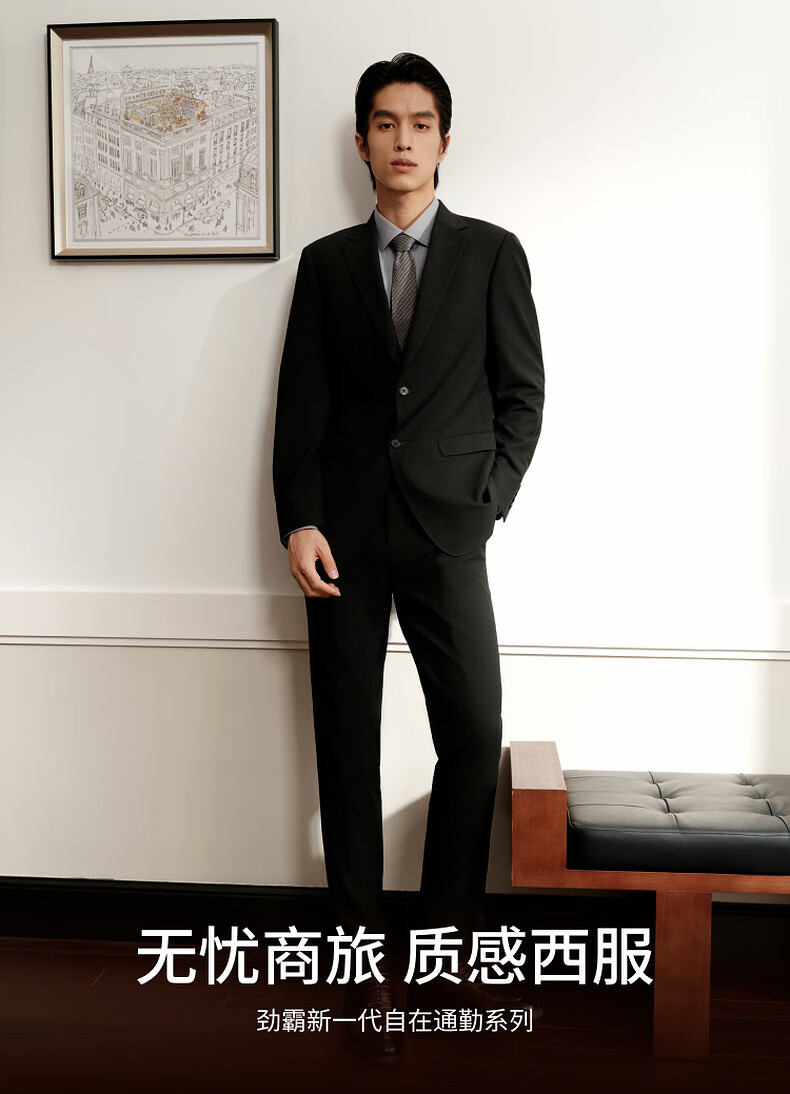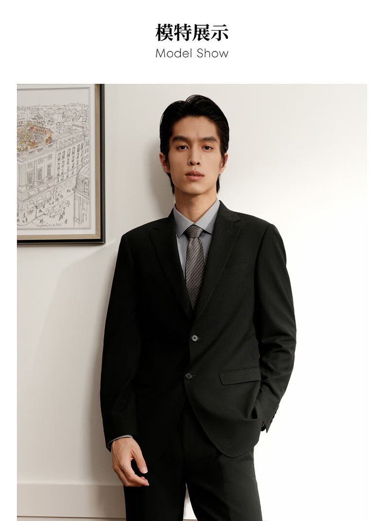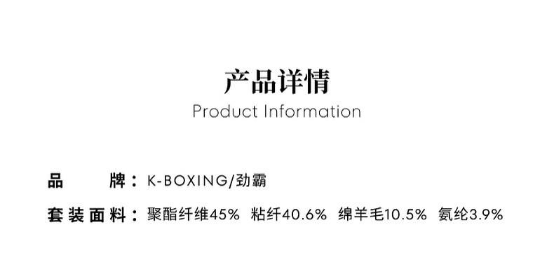 K-Boxing Men's Autumn and Winter Business Elegant Wool Blended Suit NSFN3347 Black 4XL