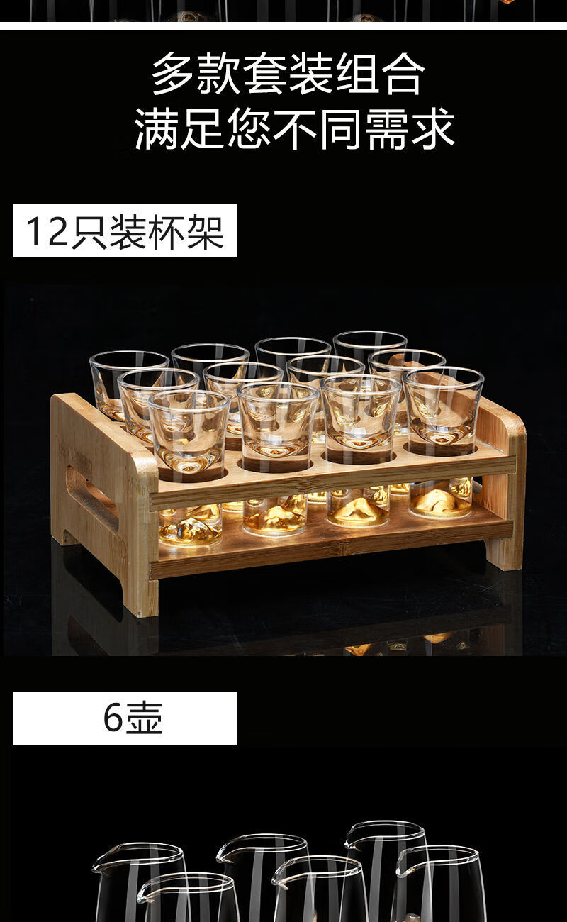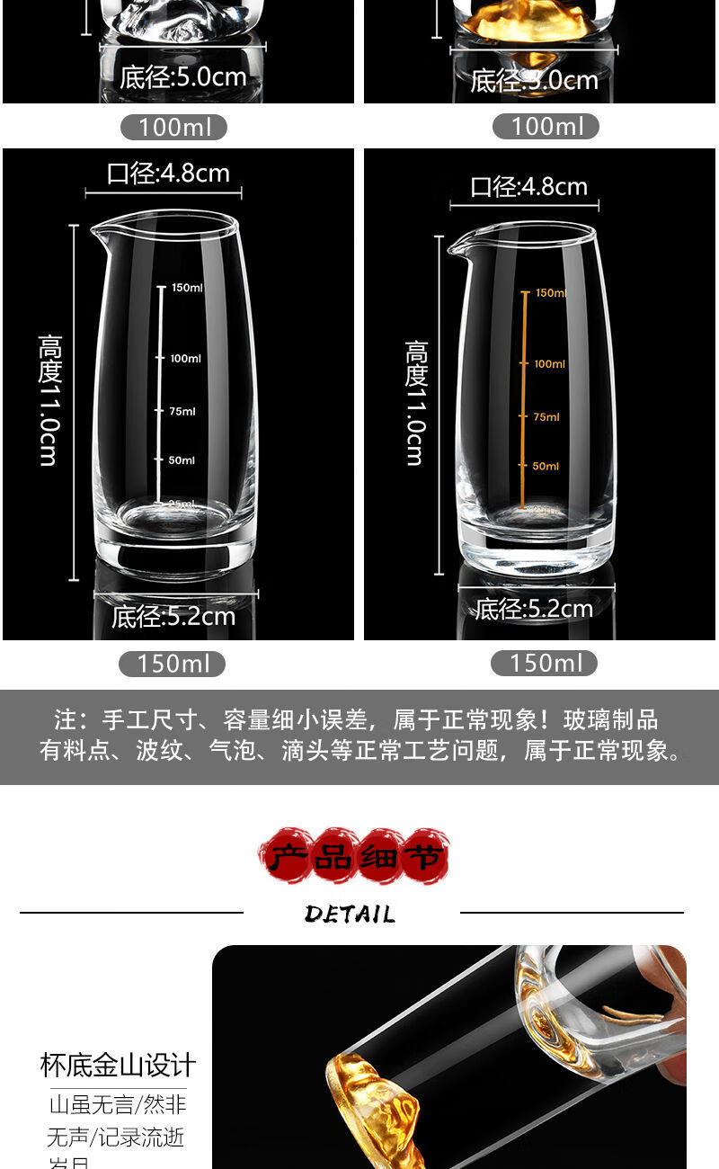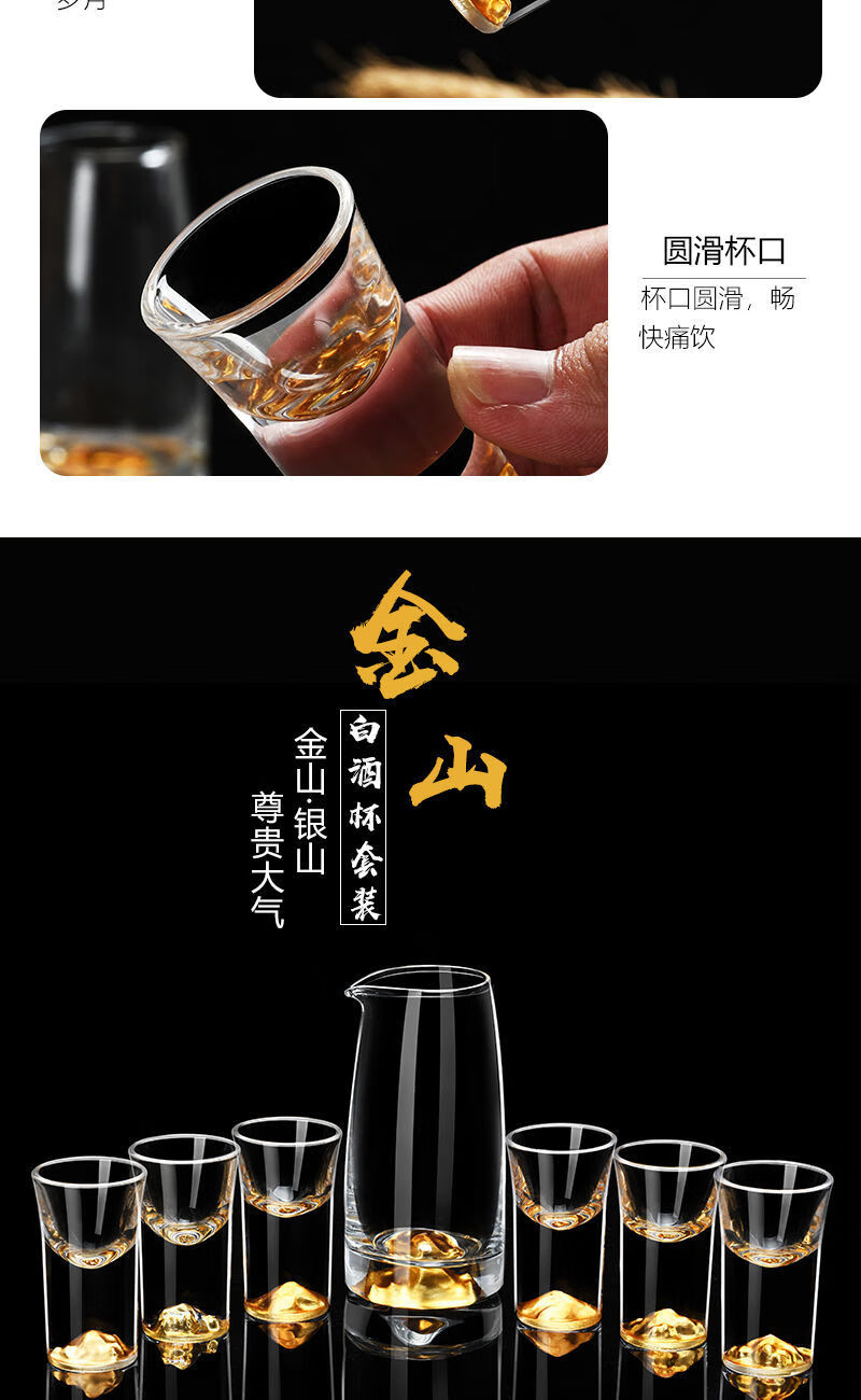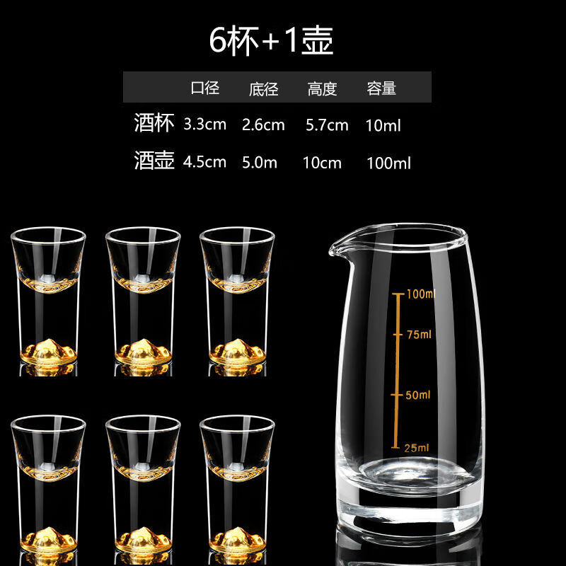 MZXM Japan imported quality Jinshan Cup small wine glass glass white wine cup set Jinshan Divider Liquor Divider Engraved 6 cups 6 pots - 100 gold scale + shelf