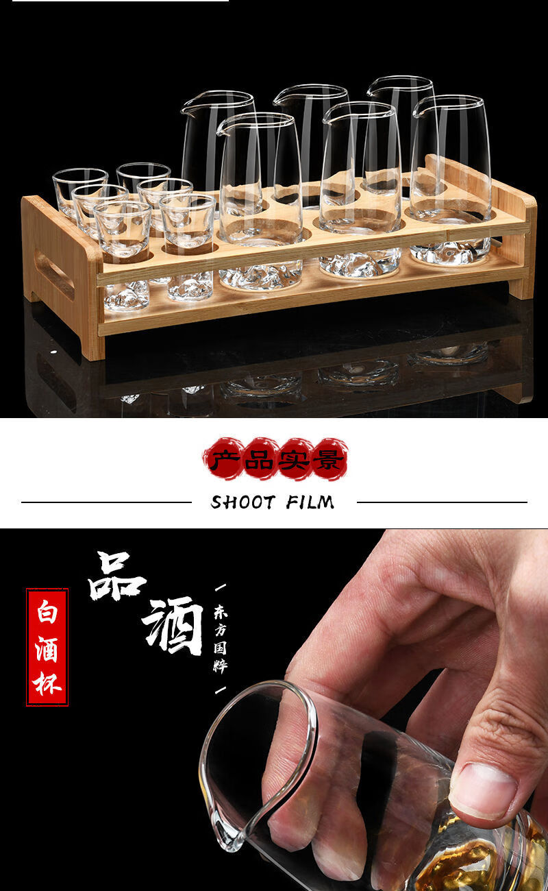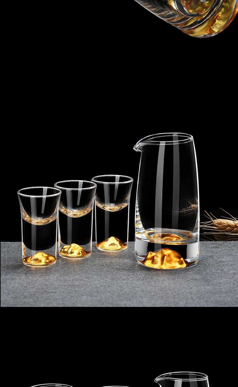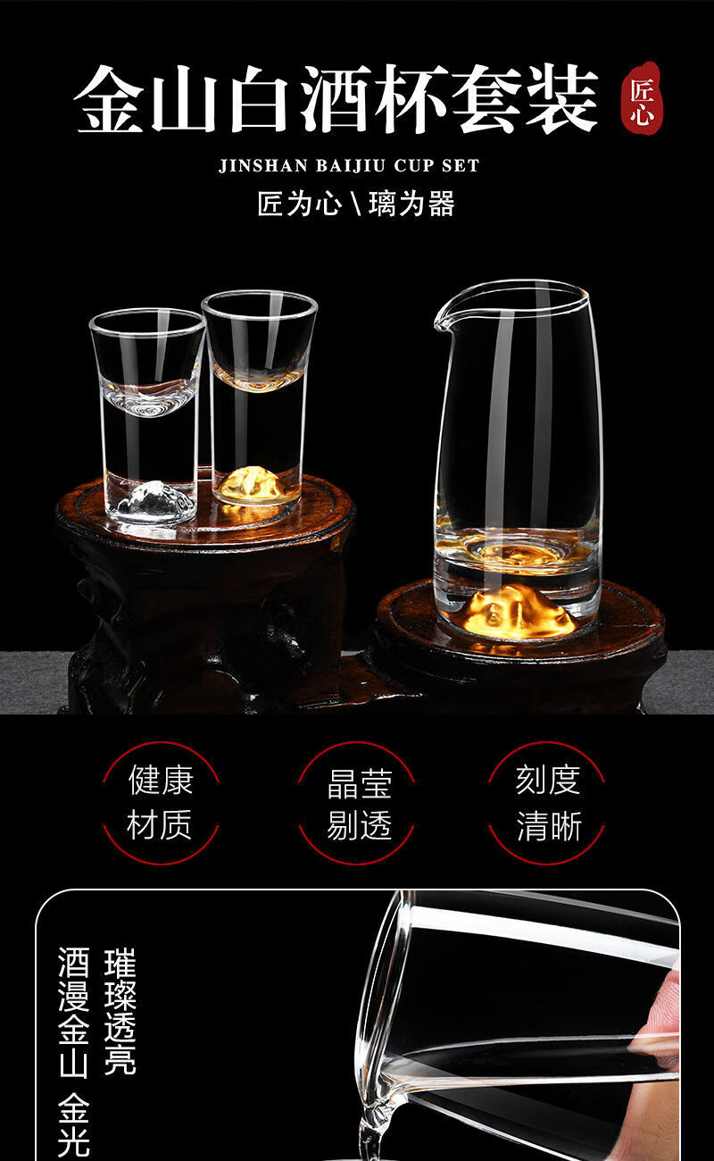 MZXM Japan imported quality Jinshan Cup small wine glass glass white wine cup set Jinshan Divider Liquor Divider Engraved 6 cups 6 pots - 100 gold scale + shelf