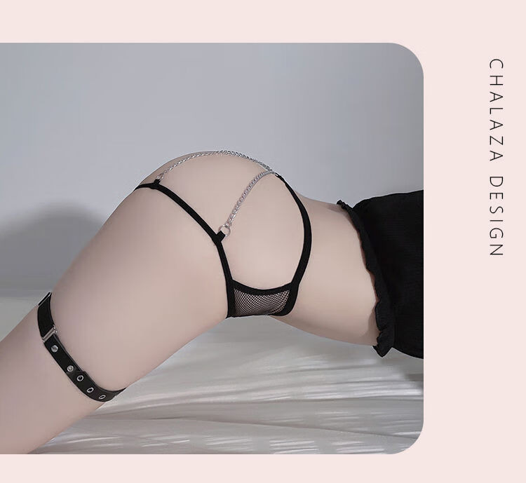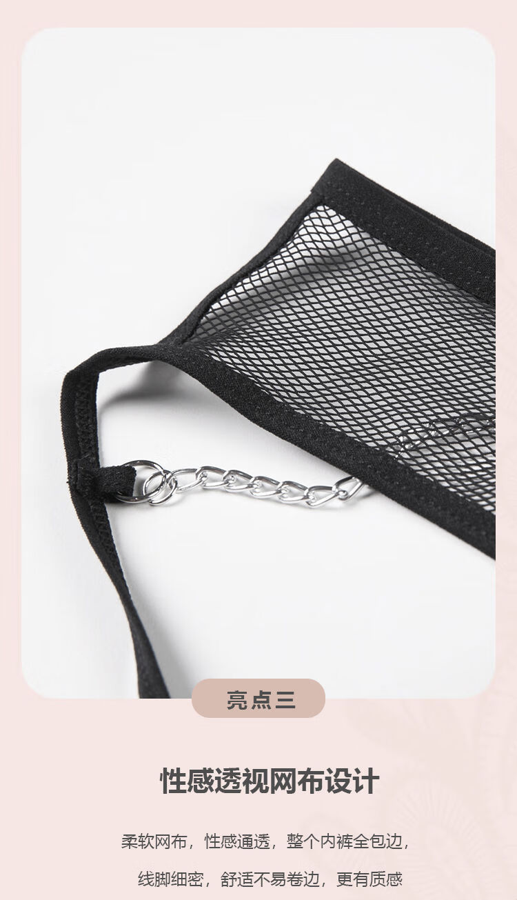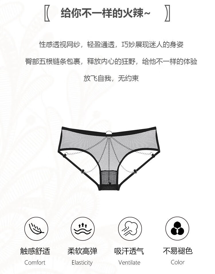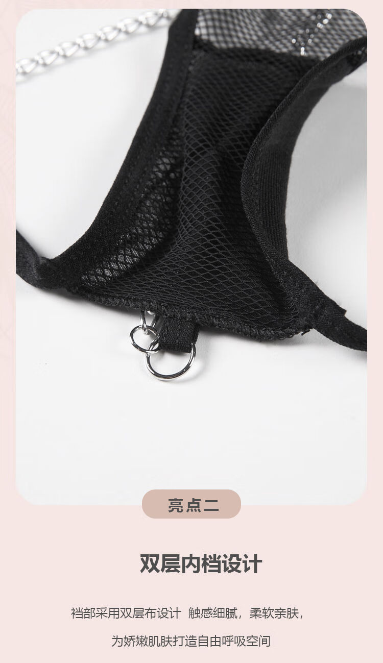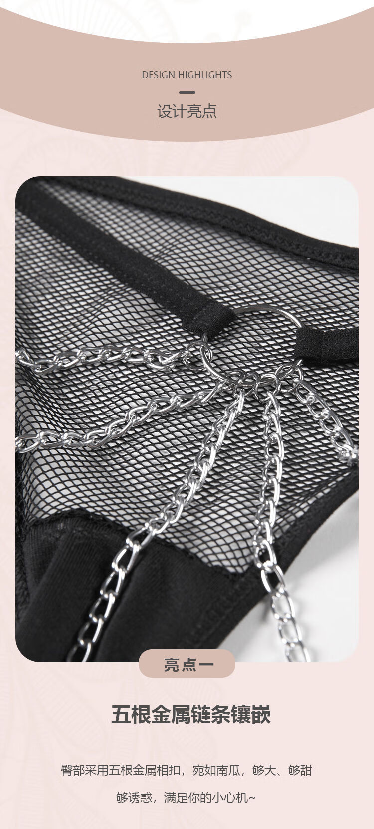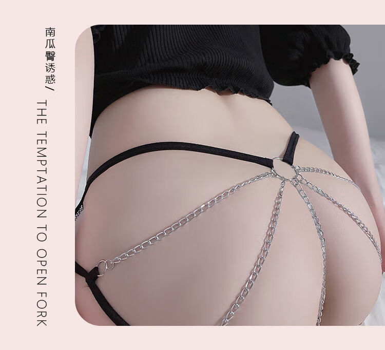 Sexy triangle open thong lace T pants hollow metal chain low waist pure lust sexy underwear for women black one size 80-125 Jin Jin equals 0.5 kg
