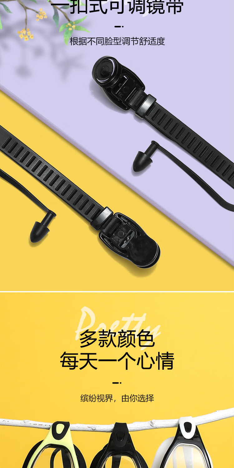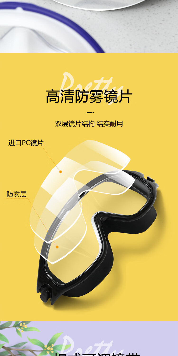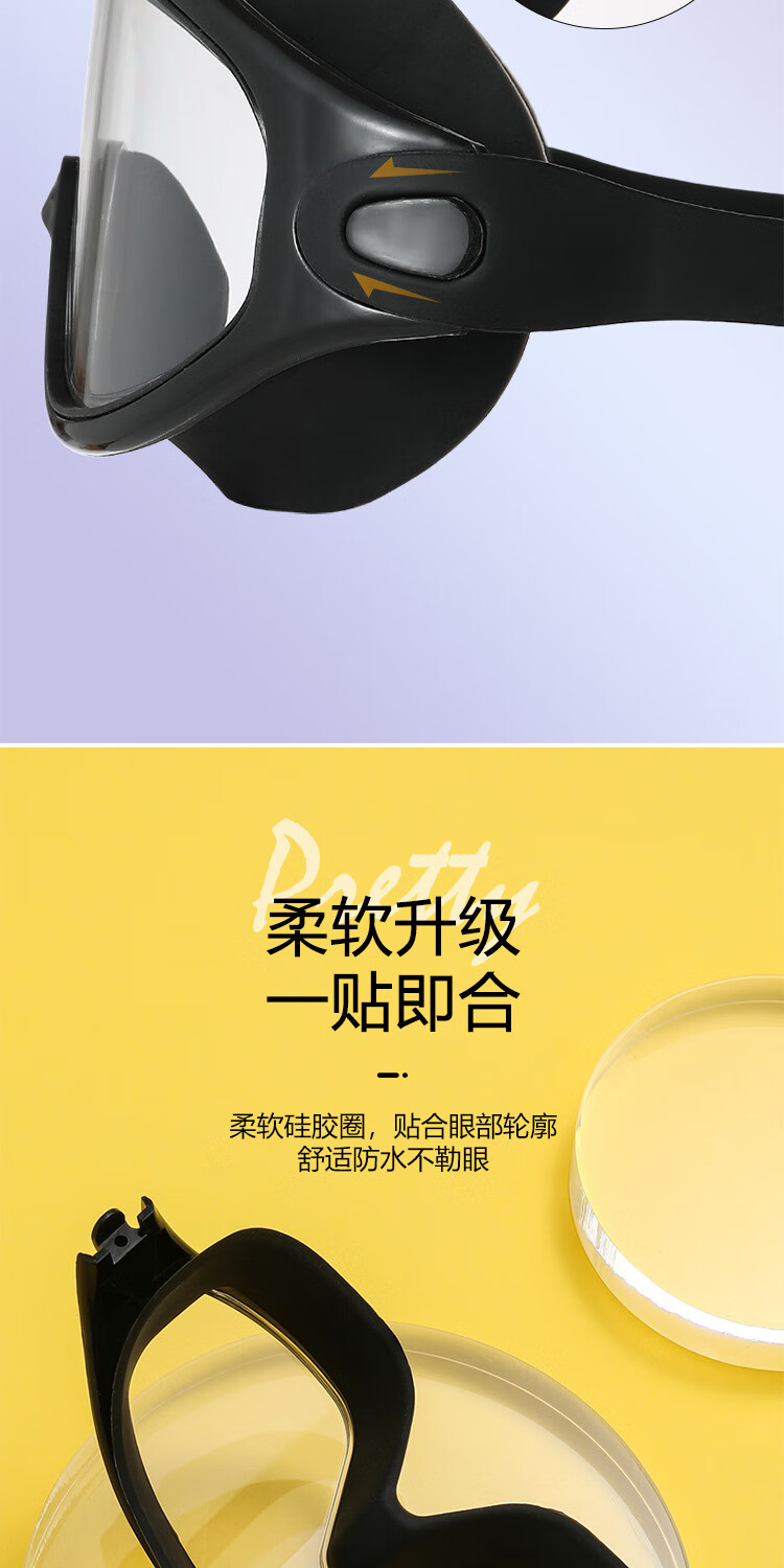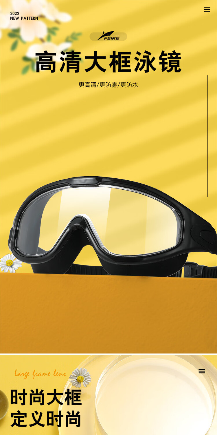 Swimming goggles for adults and men, HD waterproof, anti-fog, electroplated swimming goggles, flat large frame swimming goggles, swimming cap set, transparent style - 8032 large frame black (bag) + swimming cap + ear plugs and nose clip