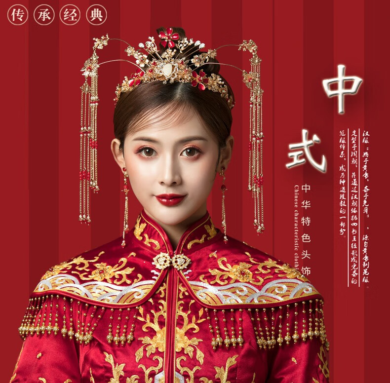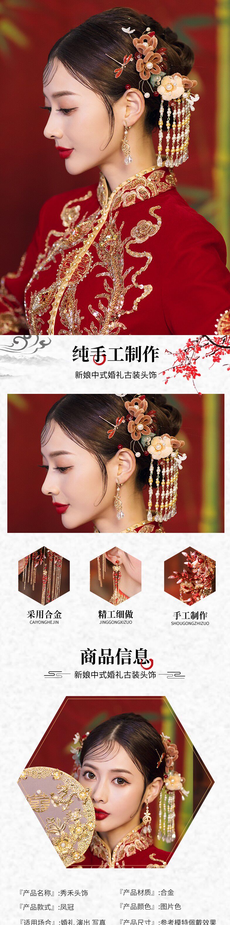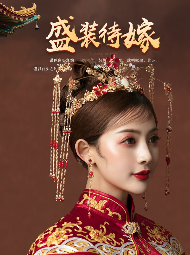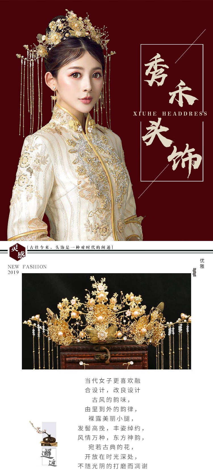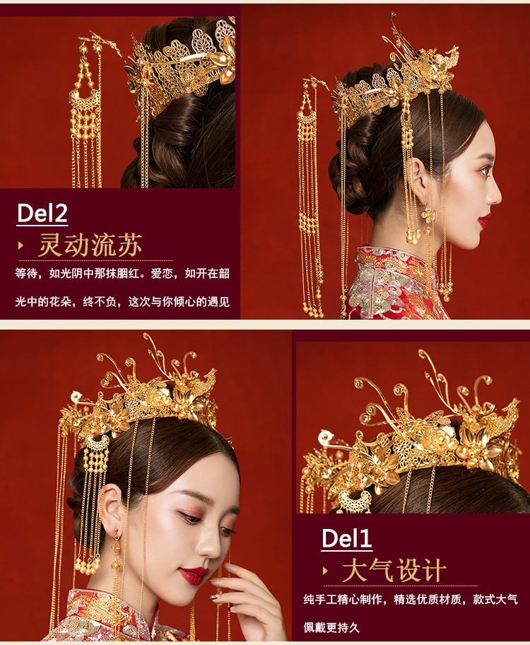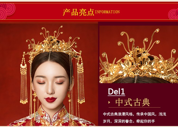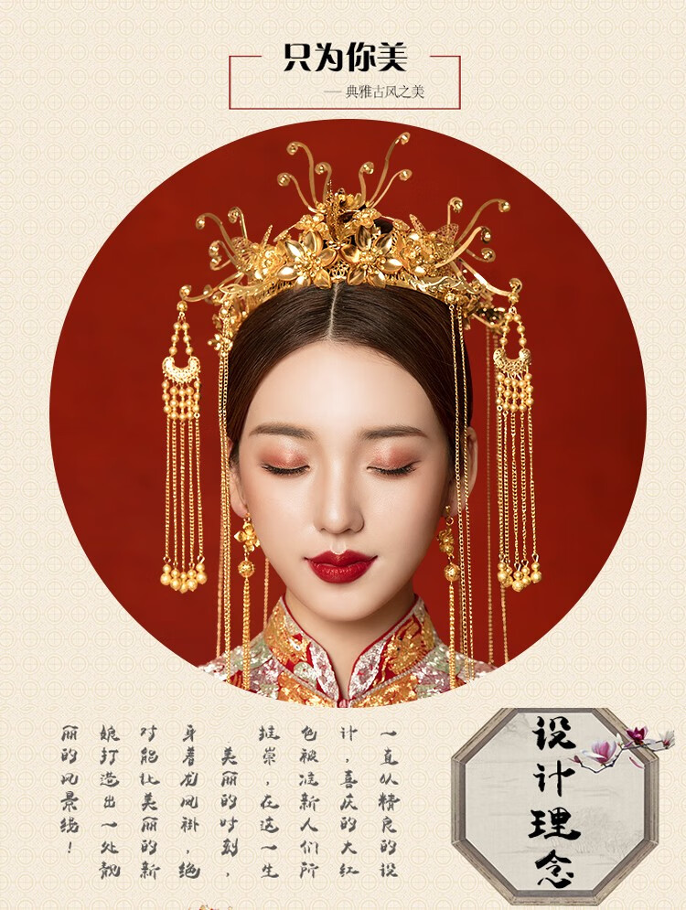 Tongrubi tiara bride Xiuhe Xiuhe clothing new phoenix crown female Chinese wedding golden hair accessories atmospheric wedding flow No. 2 tiara + ear acupuncture + gift box