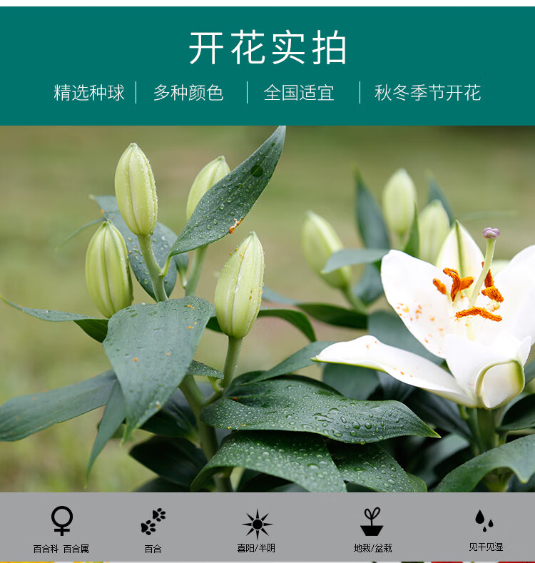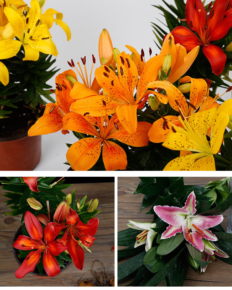 Lily potted flowers bloom in all seasons with buds. Perfume lily indoor and outdoor flower potted lily bulb seeds. Individual bulb colors are random. Pot soil not included. Diameter 4-5 cm.