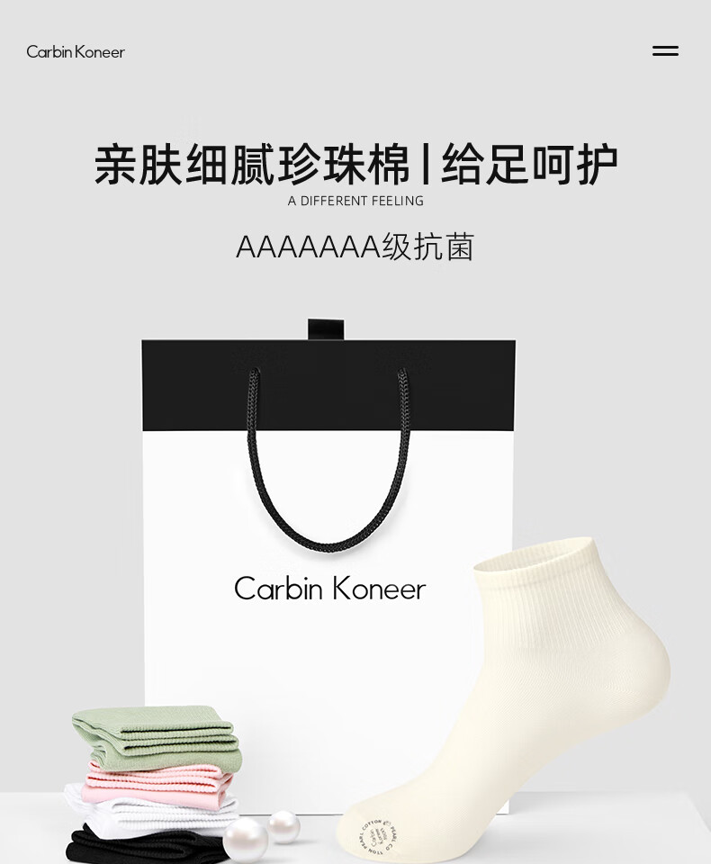 Carbin Koneer Socks Women's White Cotton Socks Sports New Girls Short Breathable Black Gift Box Off-White, Black, Pink, White_Grade 7A One Size Women