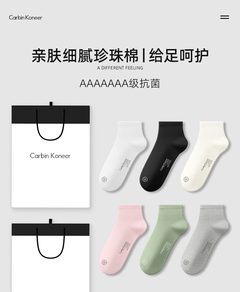 Carbin Koneer Socks Women's Short Socks Cotton Socks New White Sports Socks Girls Black Gift Box Off-White, Black, Pink, White_Grade 7A One Size Women