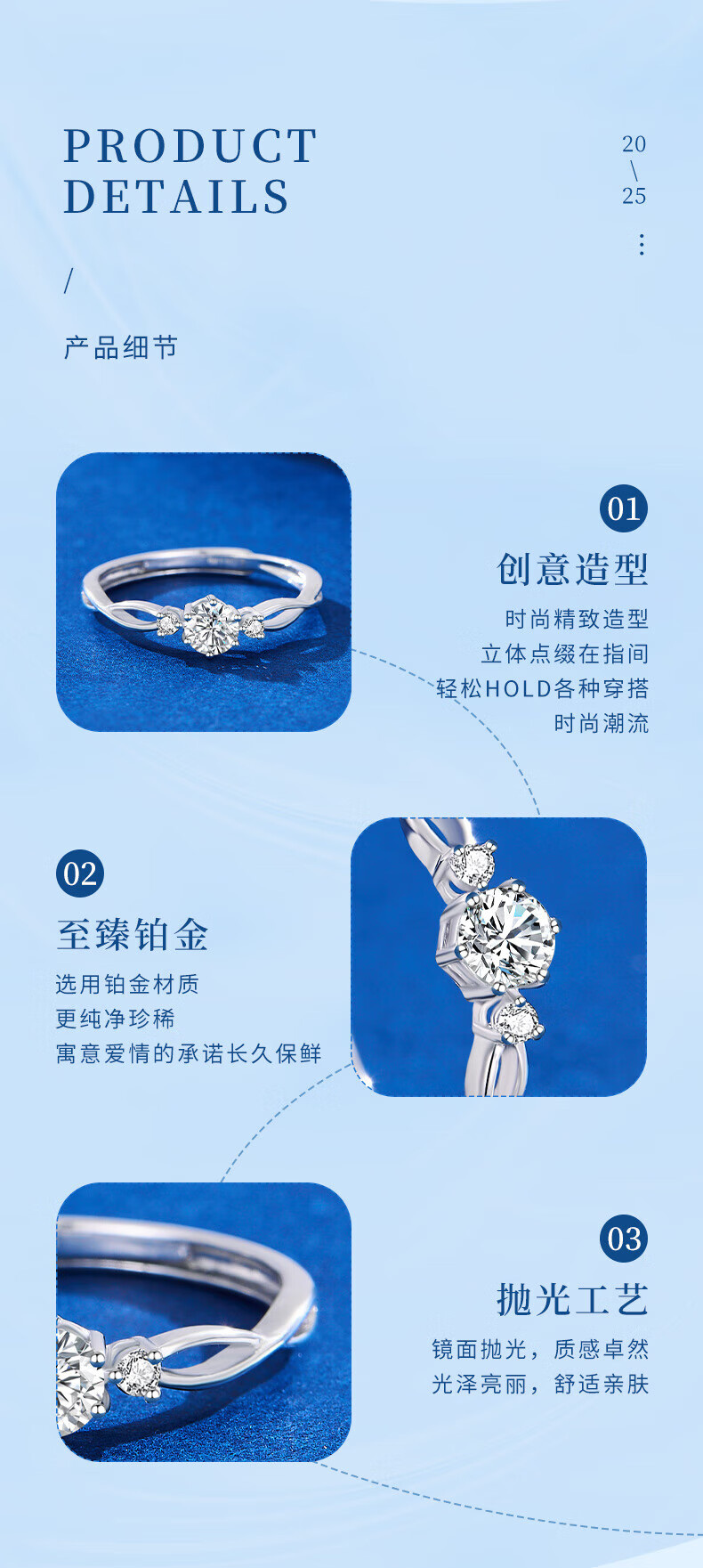 Lao Fengxiang pt950 platinum sparkling ring for women platinum ring ring opening adjustable Valentine's Day birthday gift for girlfriend platinum sparkling ring about 1.9g brand gift box