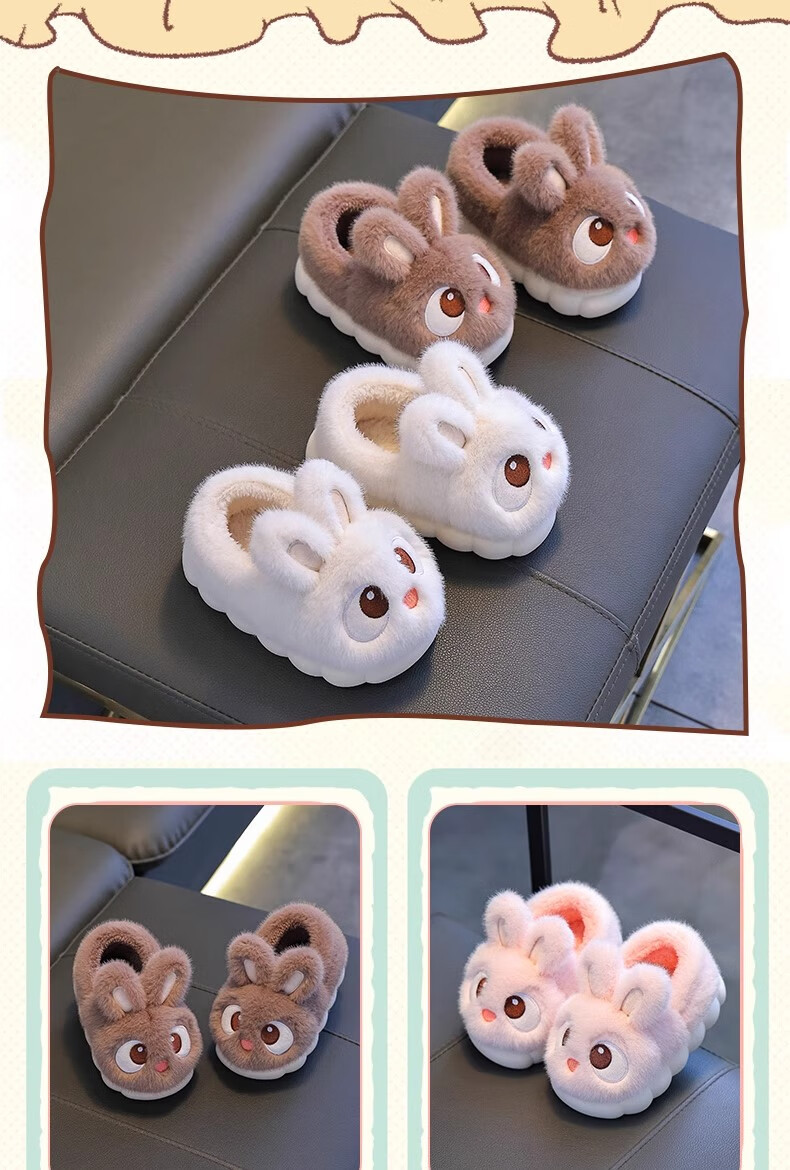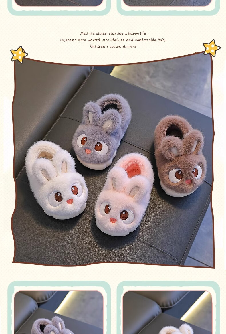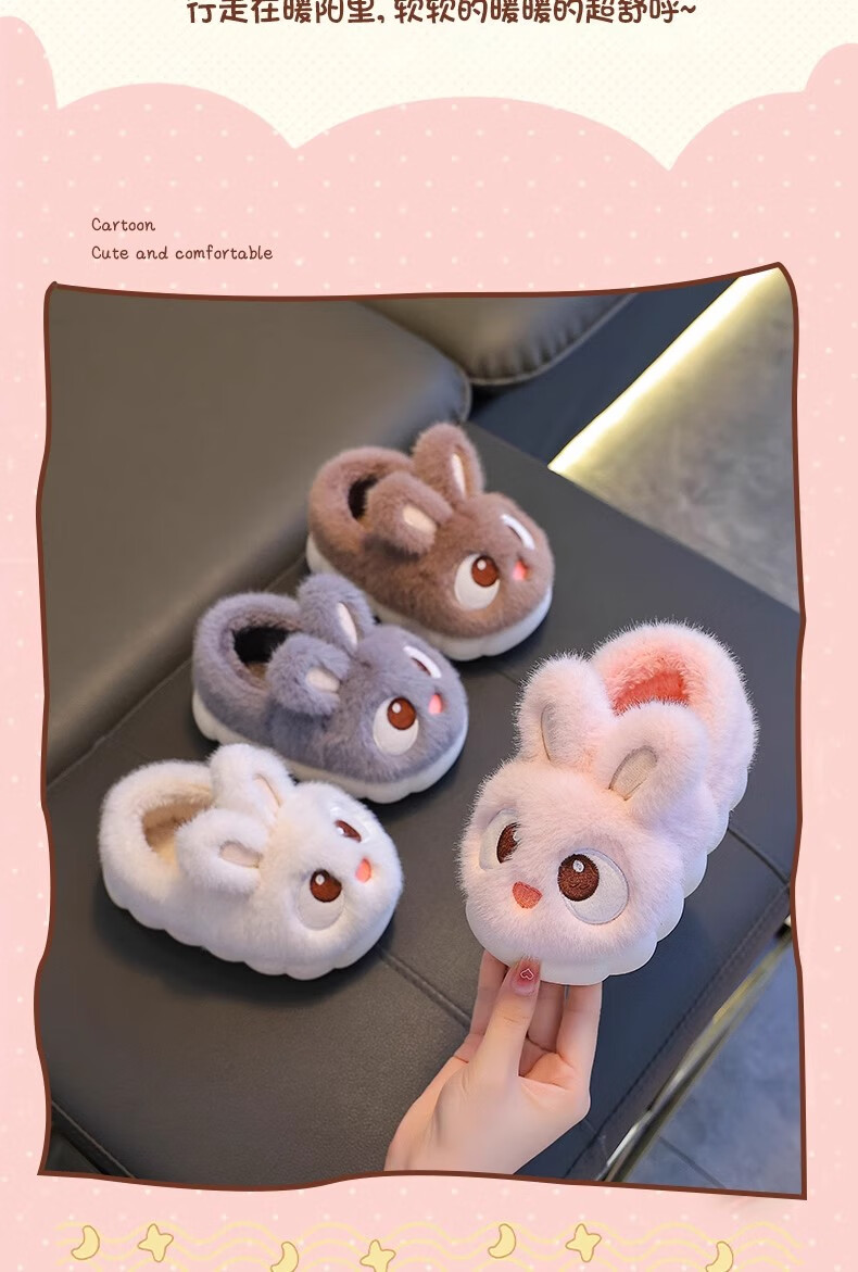 2025 New Girls Cotton Slippers Winter Warm Heel Plus Plush Boys Cute Non-Slip Children's Home Cotton Shoes Pink (Heel Included) Size 38/39 (Suitable for 37/38 Feet)