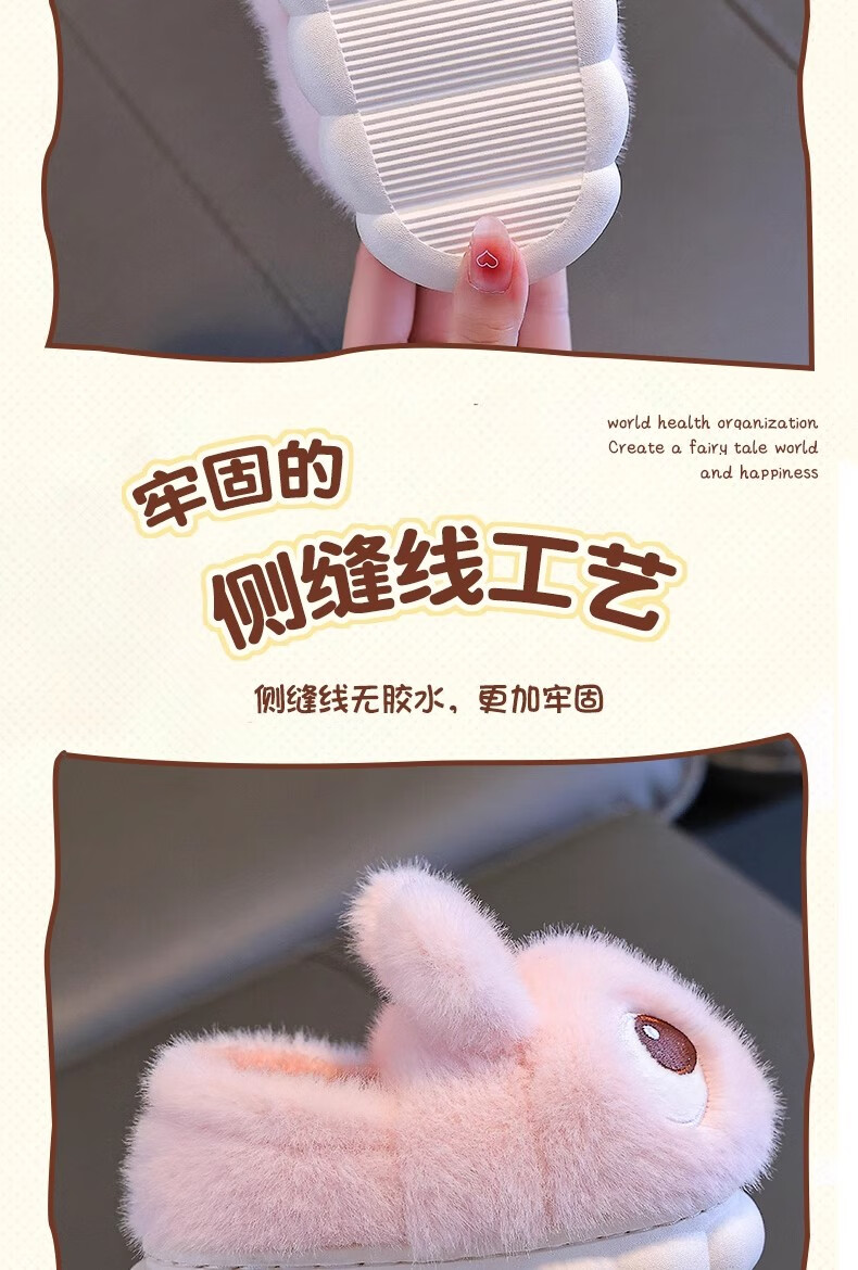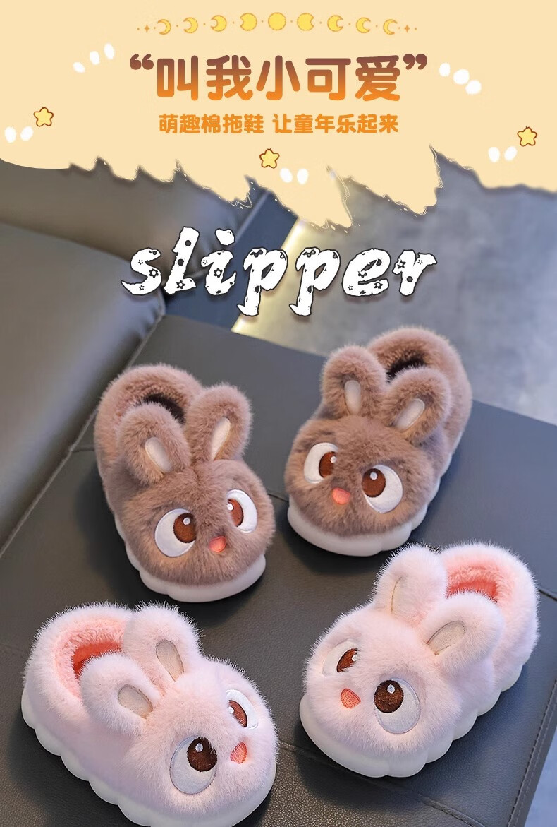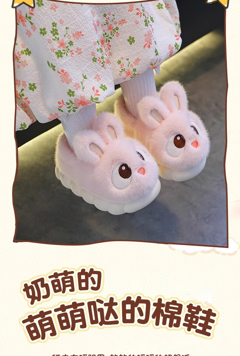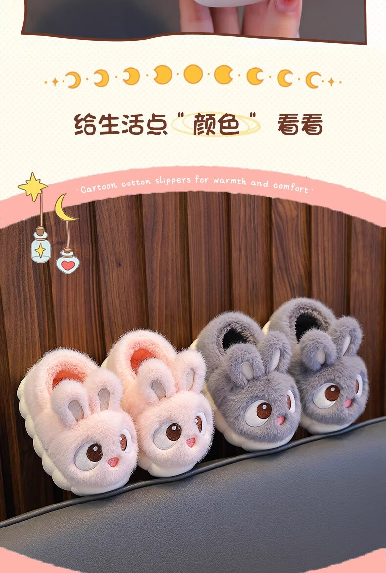 2025 New Girls Cotton Slippers Winter Warm Heel Plus Plush Boys Cute Non-Slip Children's Home Cotton Shoes Pink (Heel Included) Size 38/39 (Suitable for 37/38 Feet)