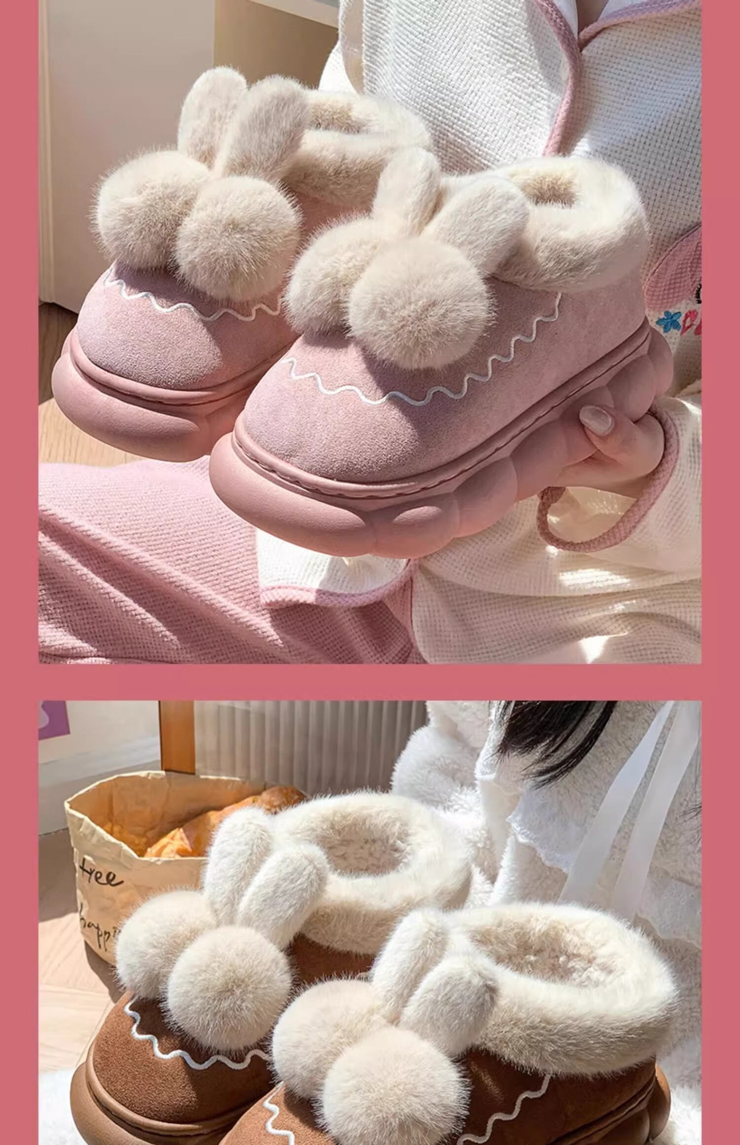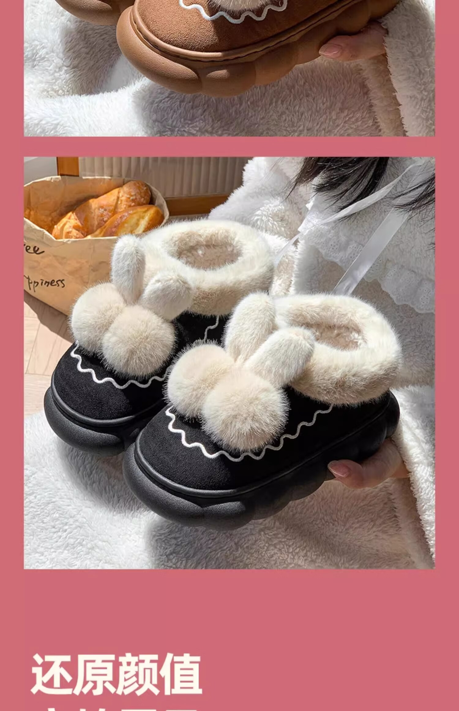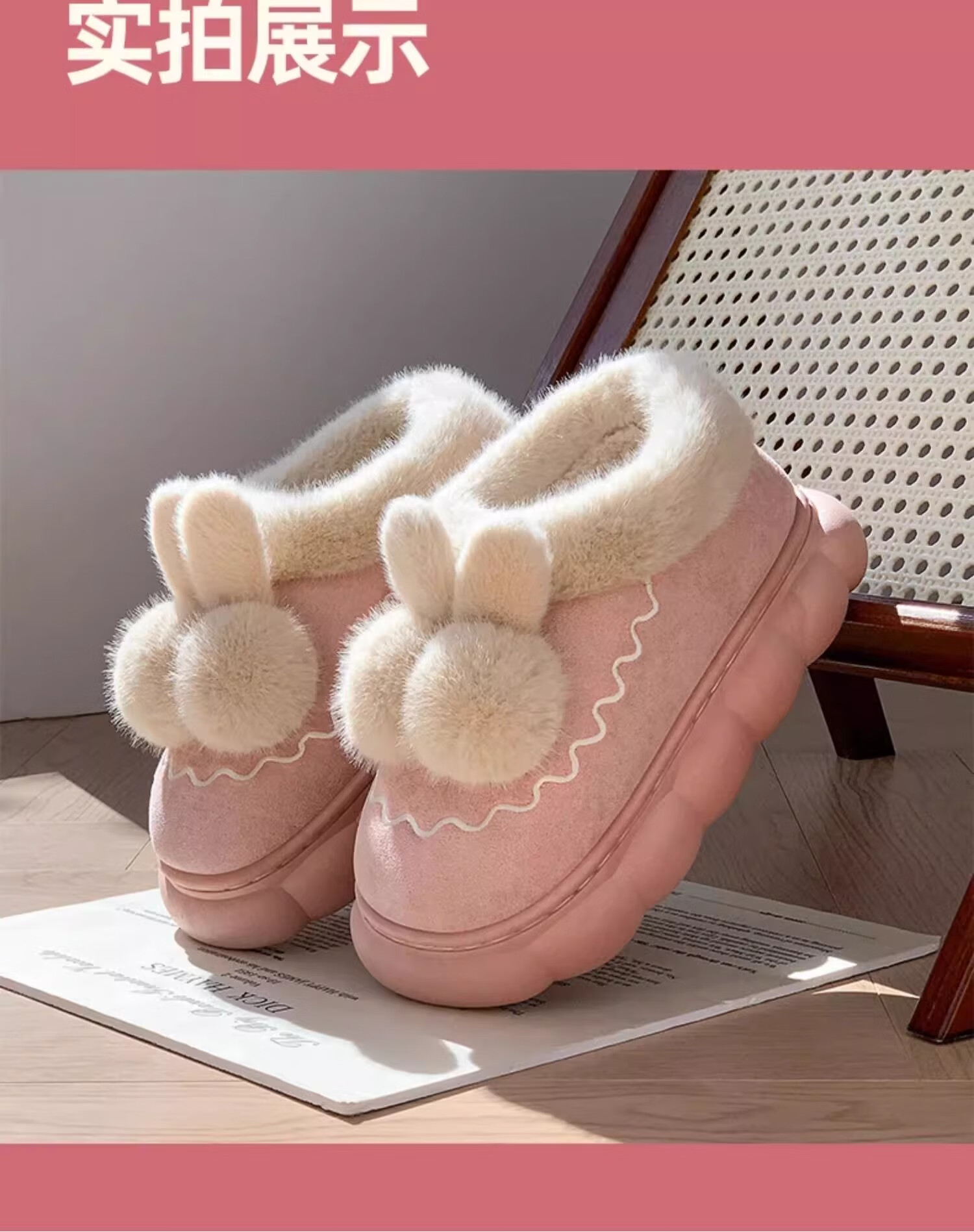 Children's cotton slippers bag with girls' autumn and winter velvet new indoor home warm cotton shoes women's wool slippers winter melon red bag heels 32/33 size (shoe length 19CM suitable for feet 18CM)
