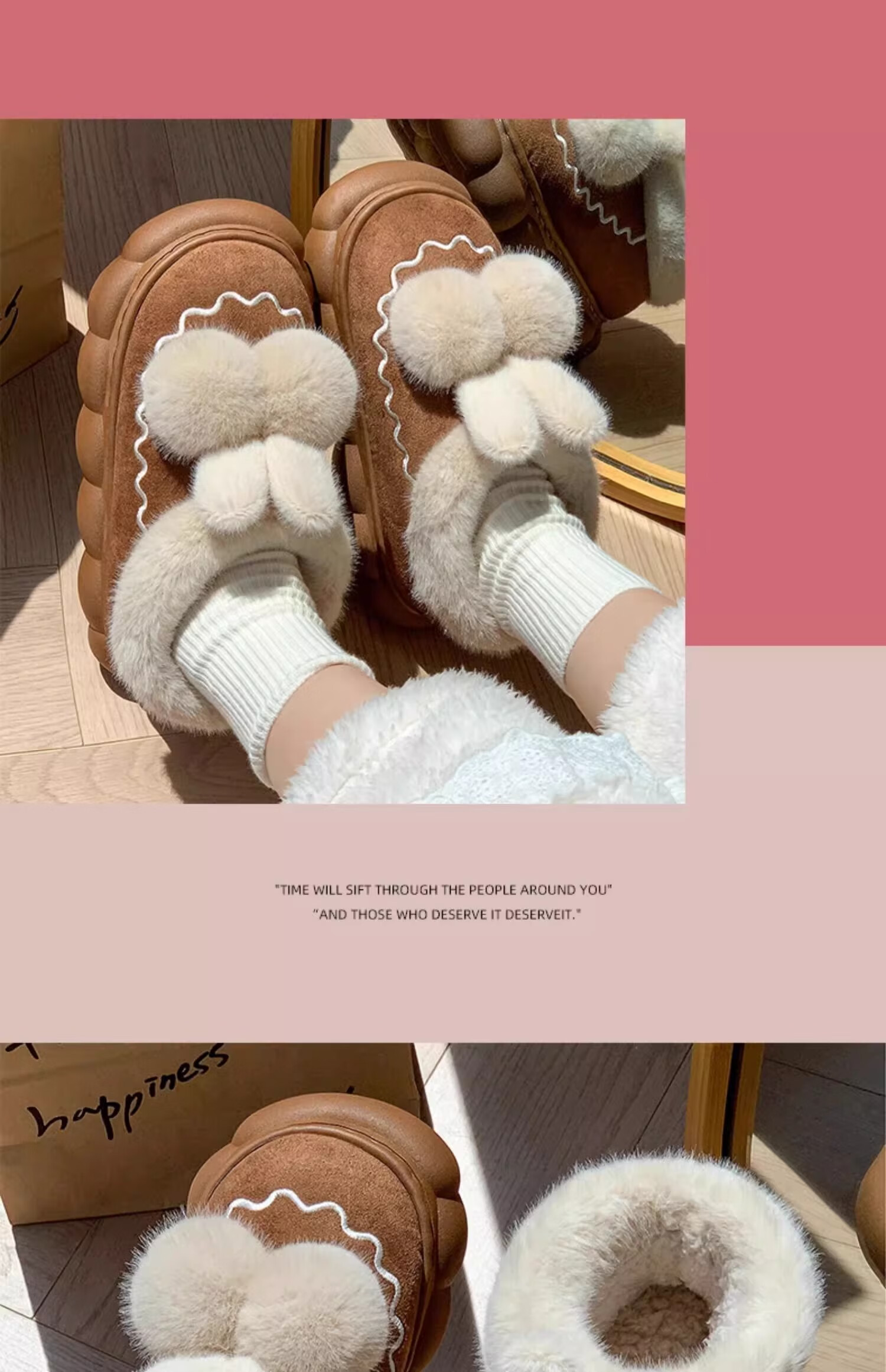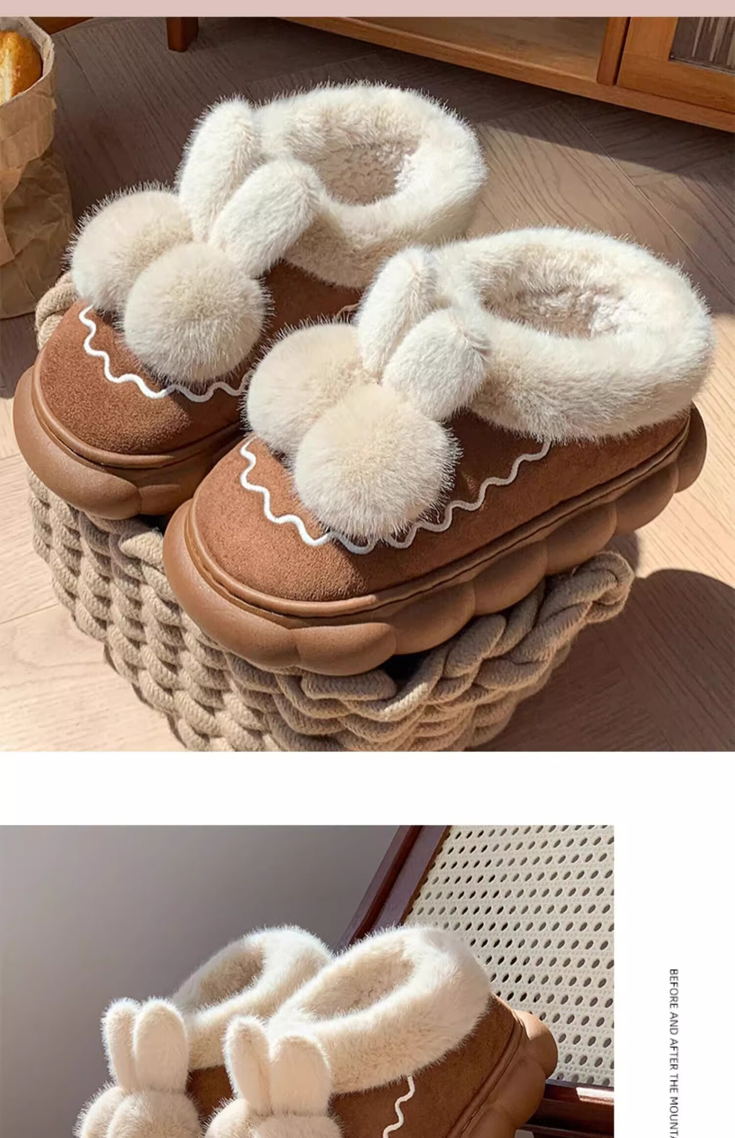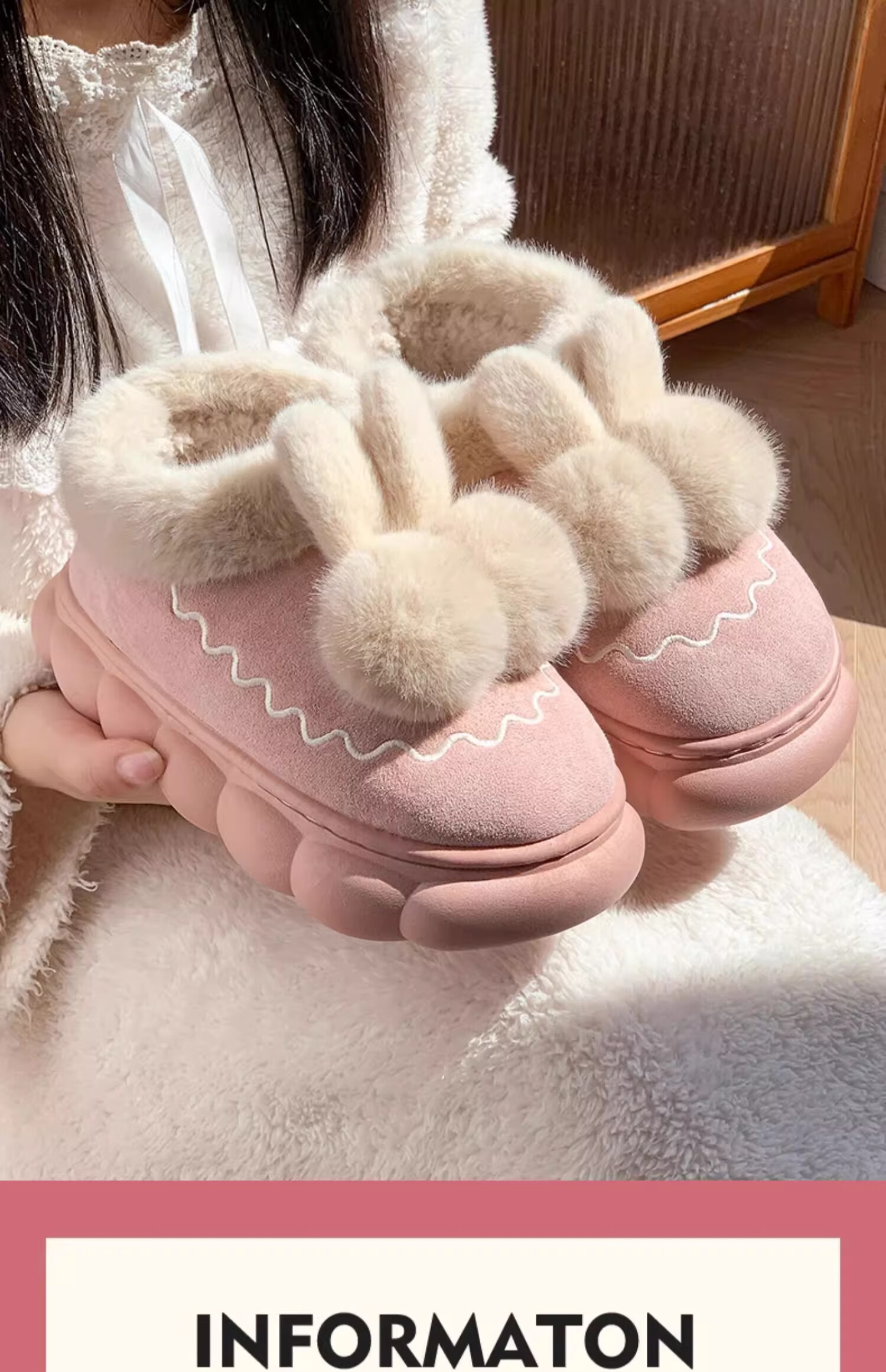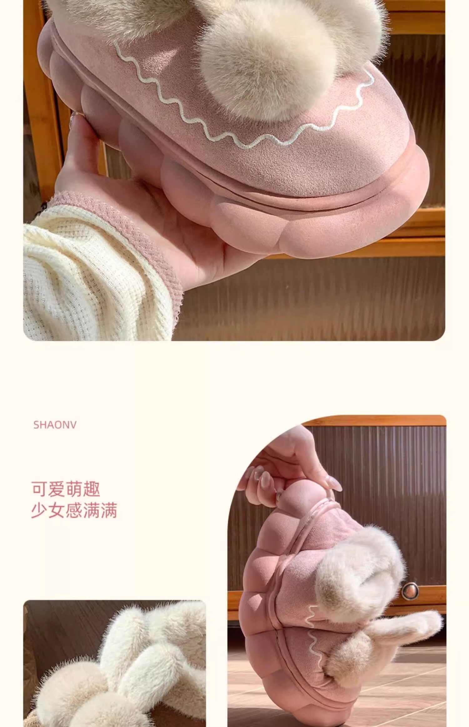 Children's cotton slippers bag with girls' autumn and winter velvet new indoor home warm cotton shoes women's wool slippers winter melon red bag heels 32/33 size (shoe length 19CM suitable for feet 18CM)
