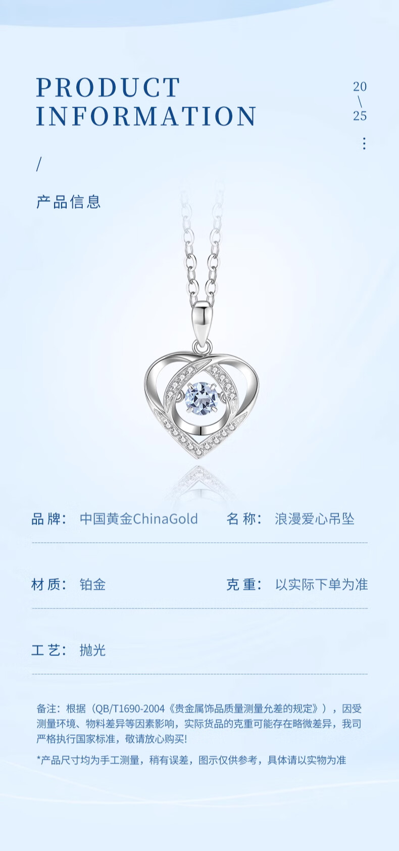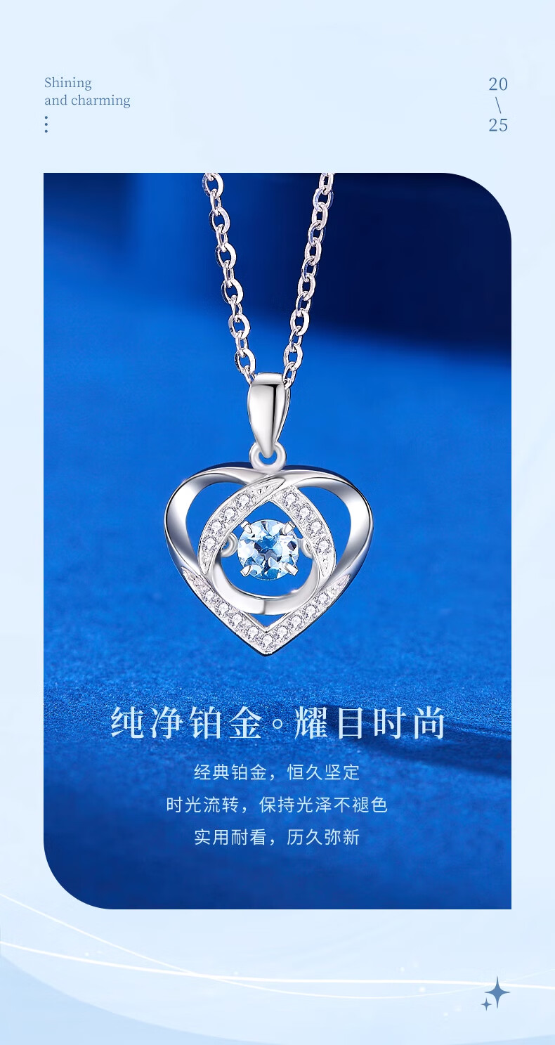 China Gold (CHINA GOLD) PT950 platinum romantic love pendant for women, high-end platinum necklace, light luxury birthday gift for girlfriend and wife, platinum romantic love pendant, about 2g, free silver chain + brand gift box